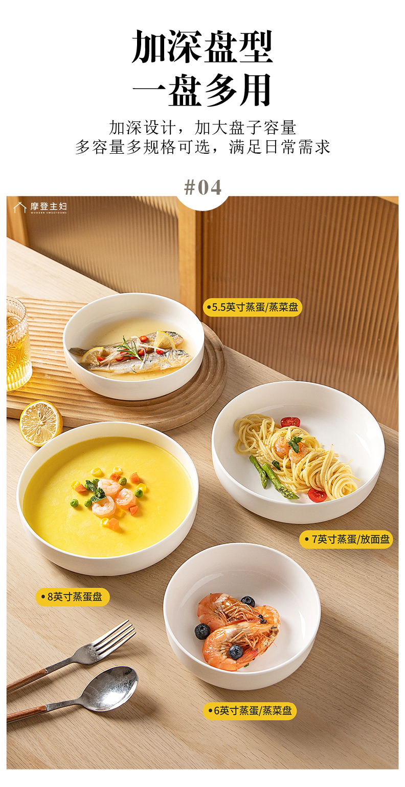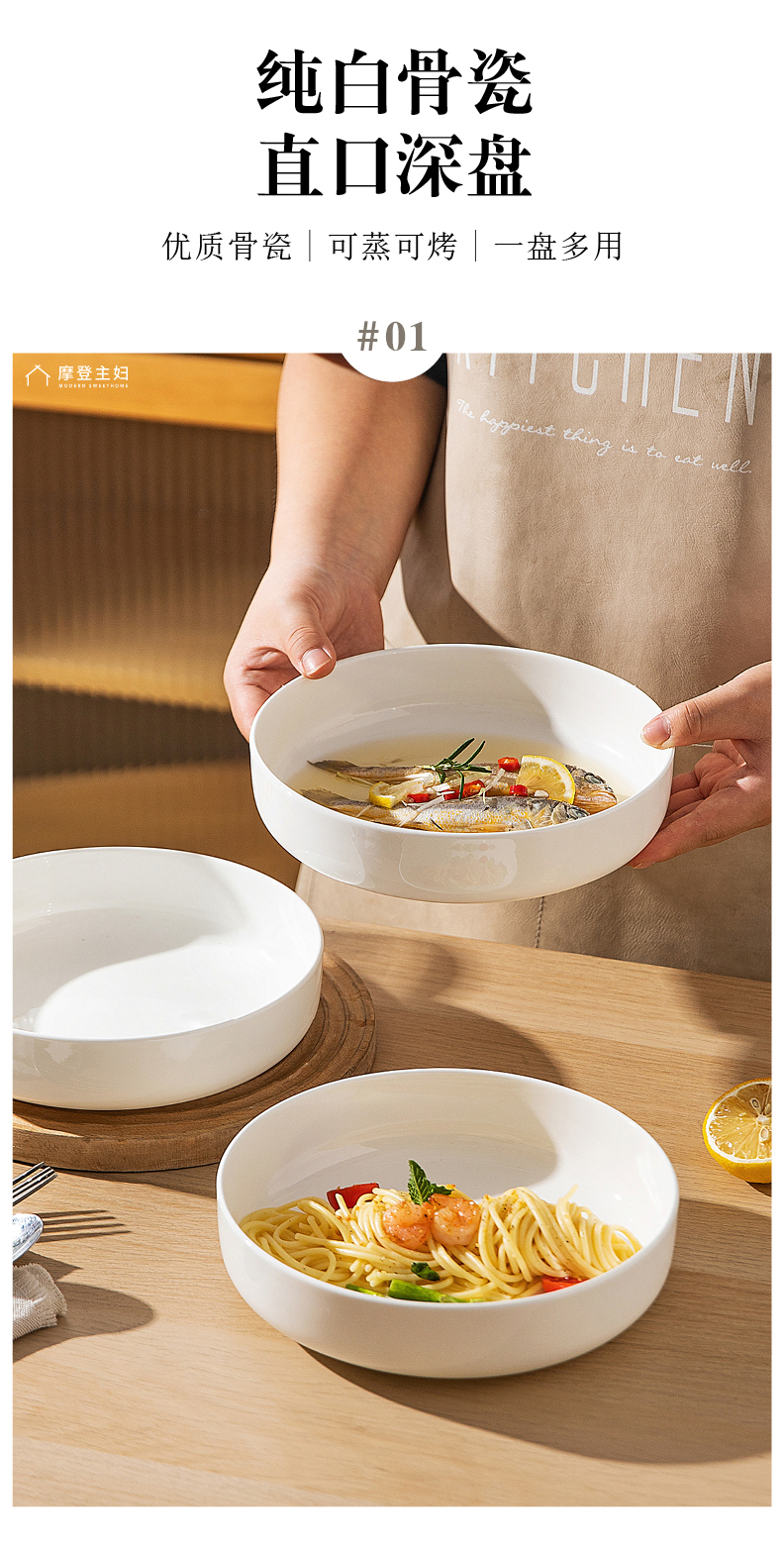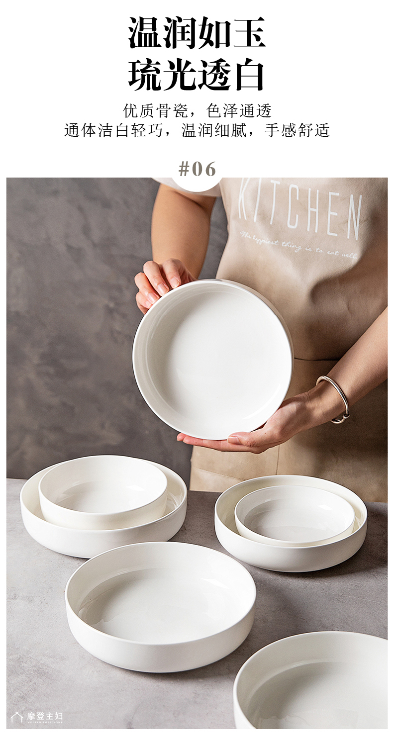 摩登主妇纯白骨瓷餐盘子家用菜盘2025新款餐具碟子釉下彩蒸蛋深盘