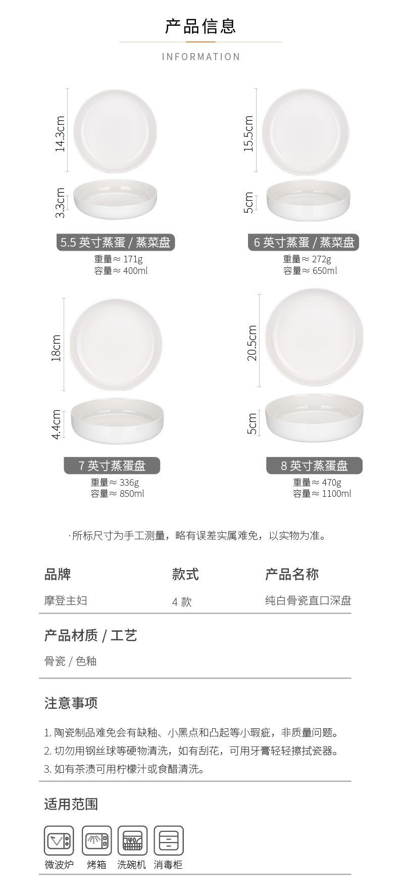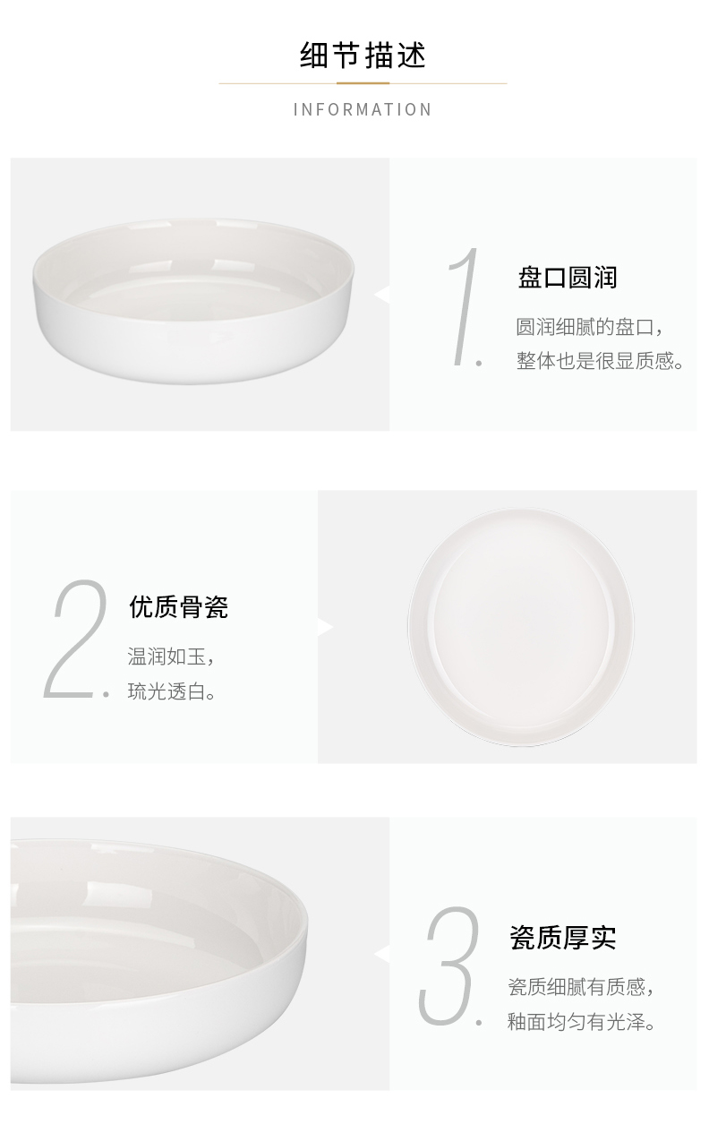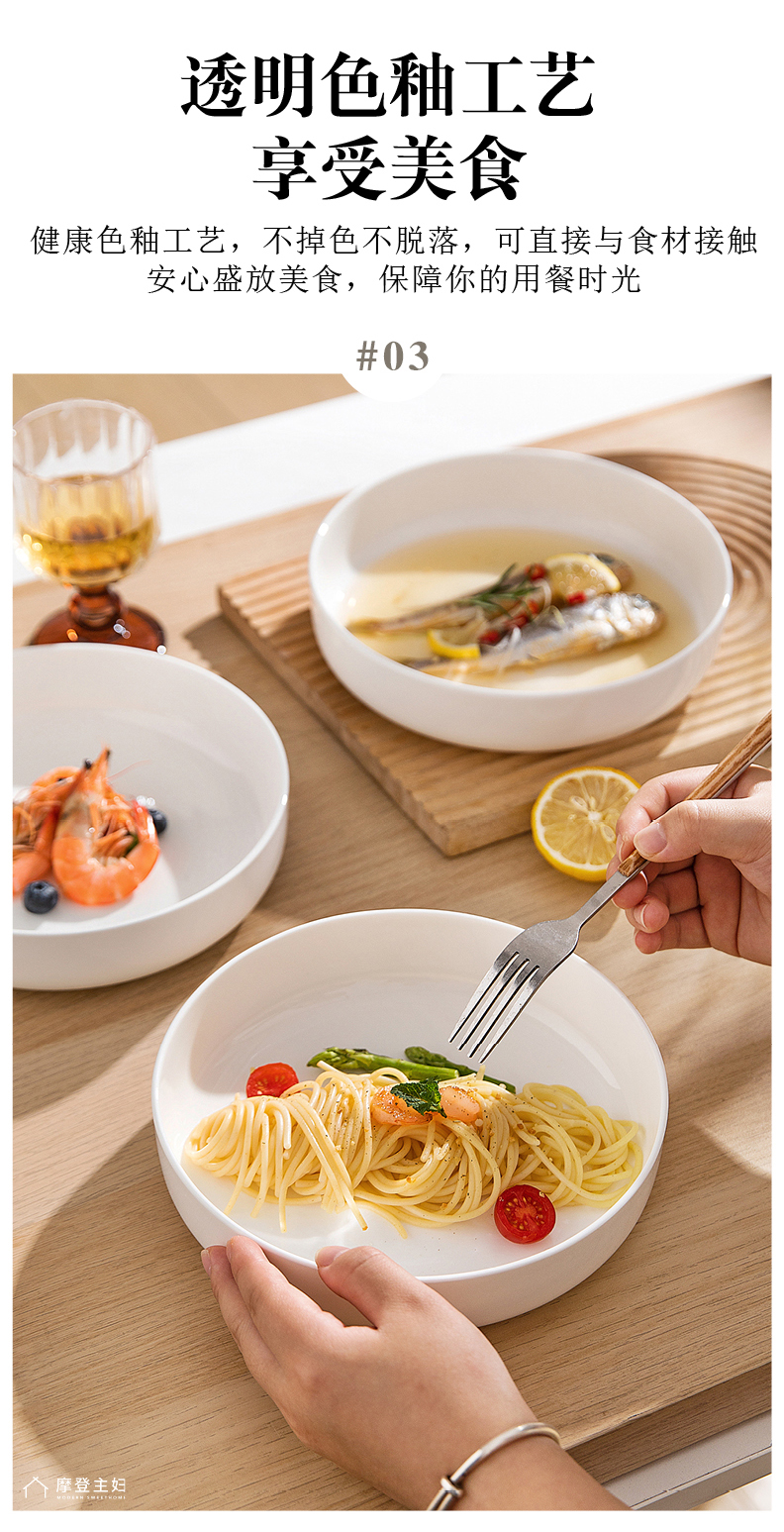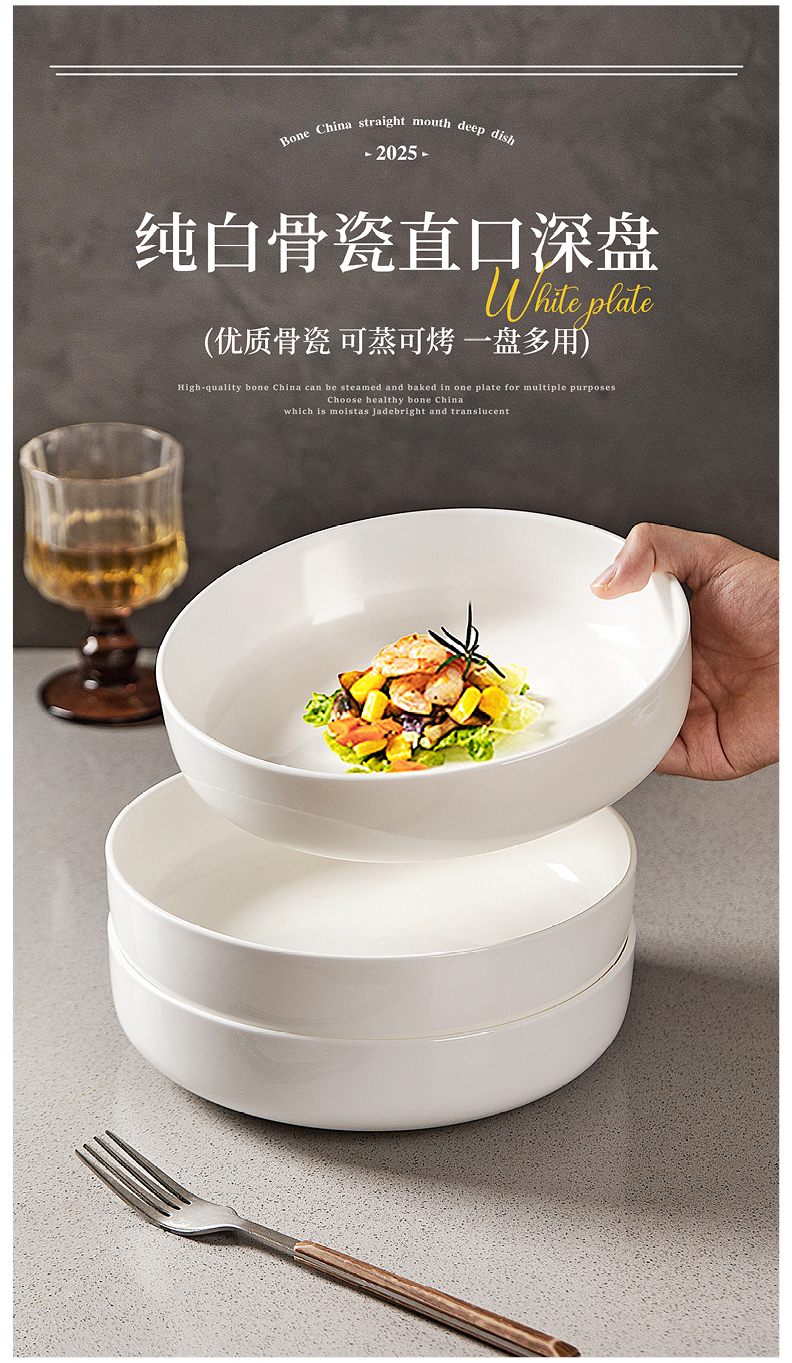 摩登主妇纯白骨瓷餐盘子家用菜盘2025新款餐具碟子釉下彩蒸蛋深盘