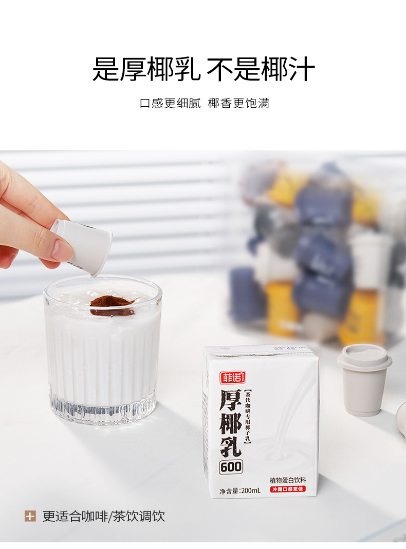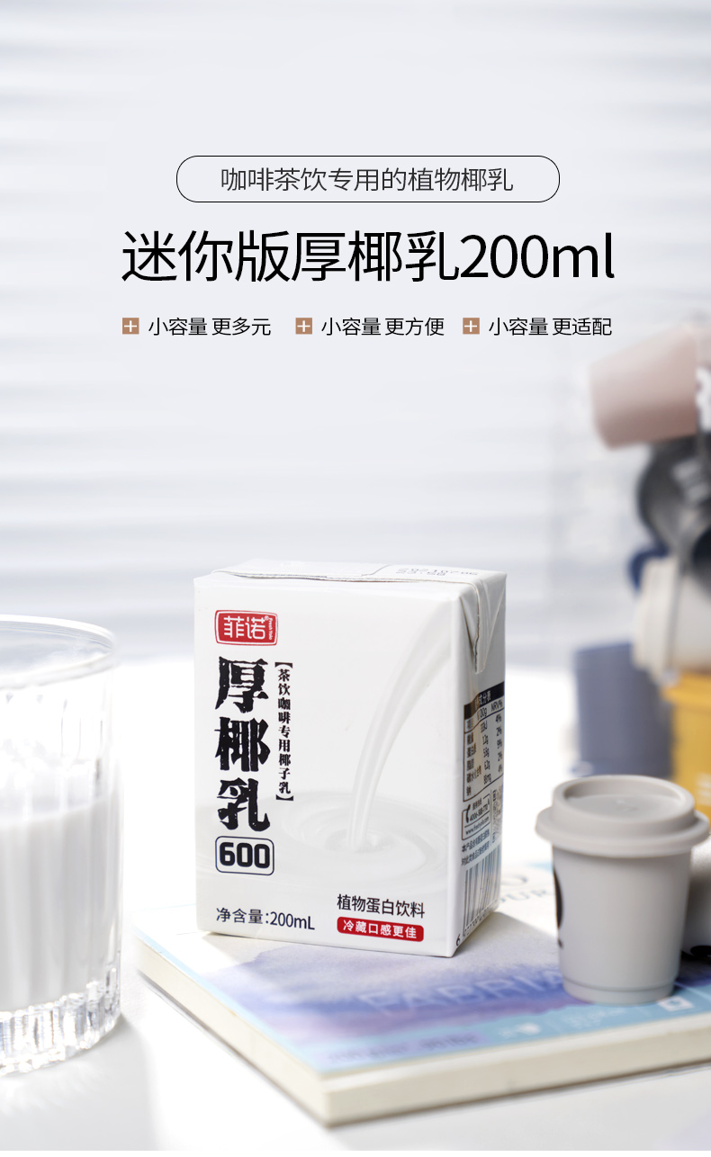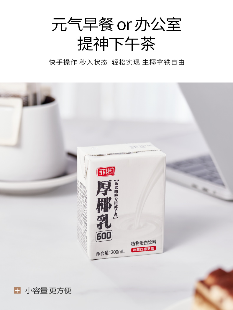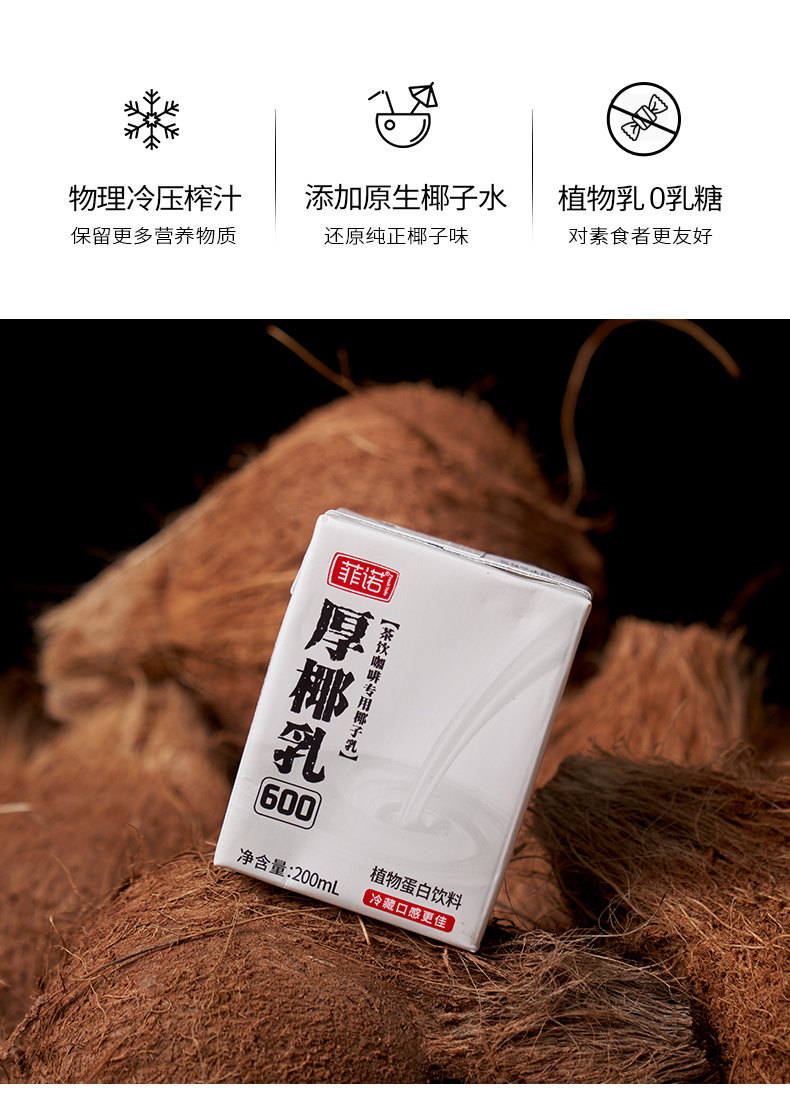 【菲诺厚椰乳】椰浆DIY生椰拿铁 咖啡店/家用生椰乳 mini装 整箱 200ml*12盒