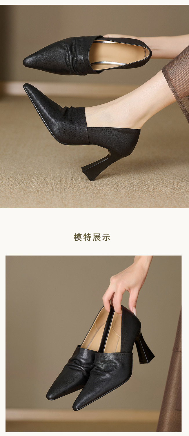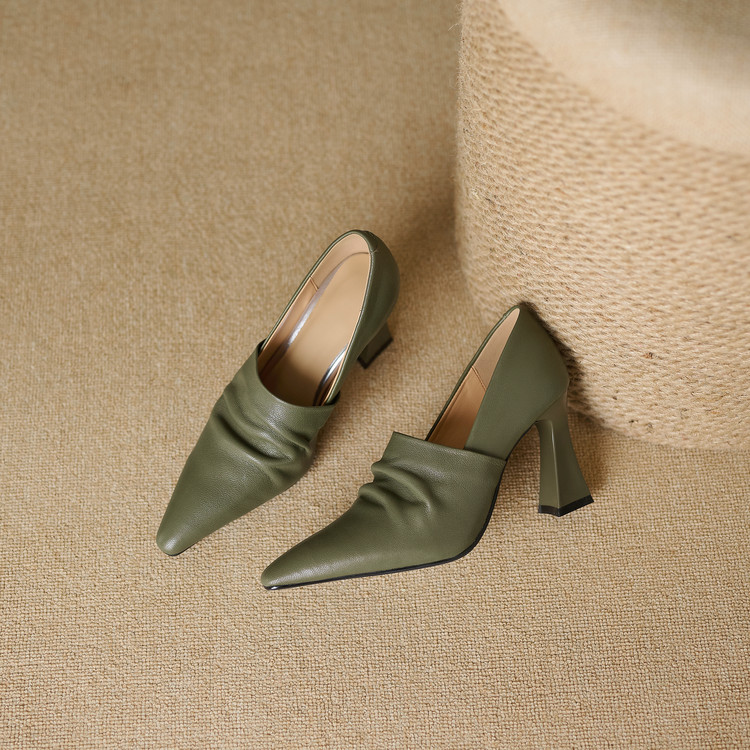 【预售5天】软羊皮配裙子绿色高跟鞋女秋冬气质尖头软底法式深口单鞋RS&7068