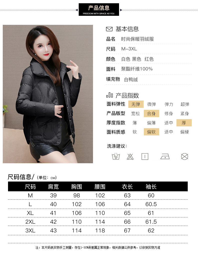 QYM 23853-Y时尚羽绒服纯色休闲外套气质优雅外套
