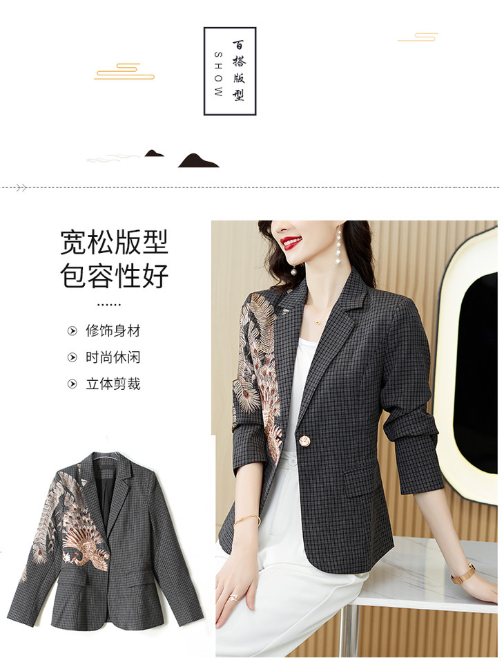 MZ804066 小西装外套女秋装2022年新款设计感复古格子刺绣修身休闲西服上衣