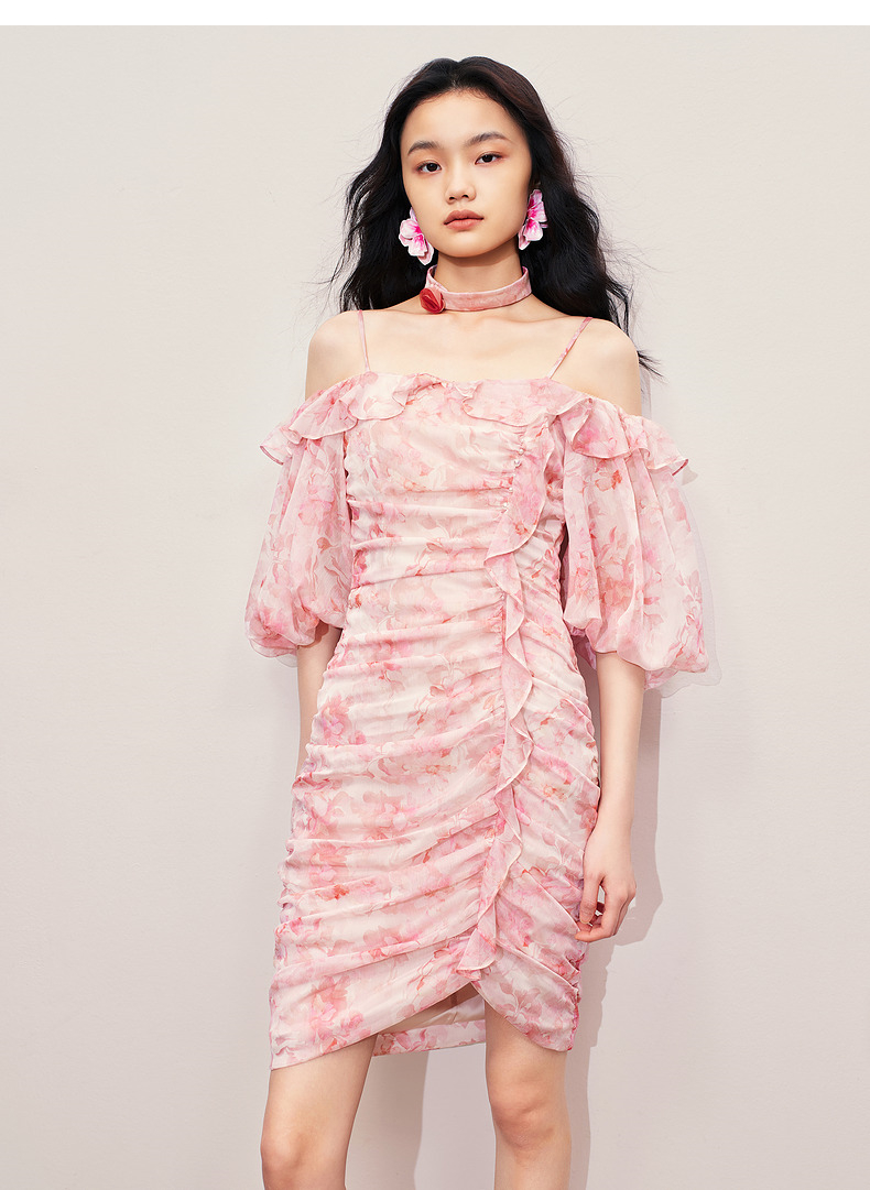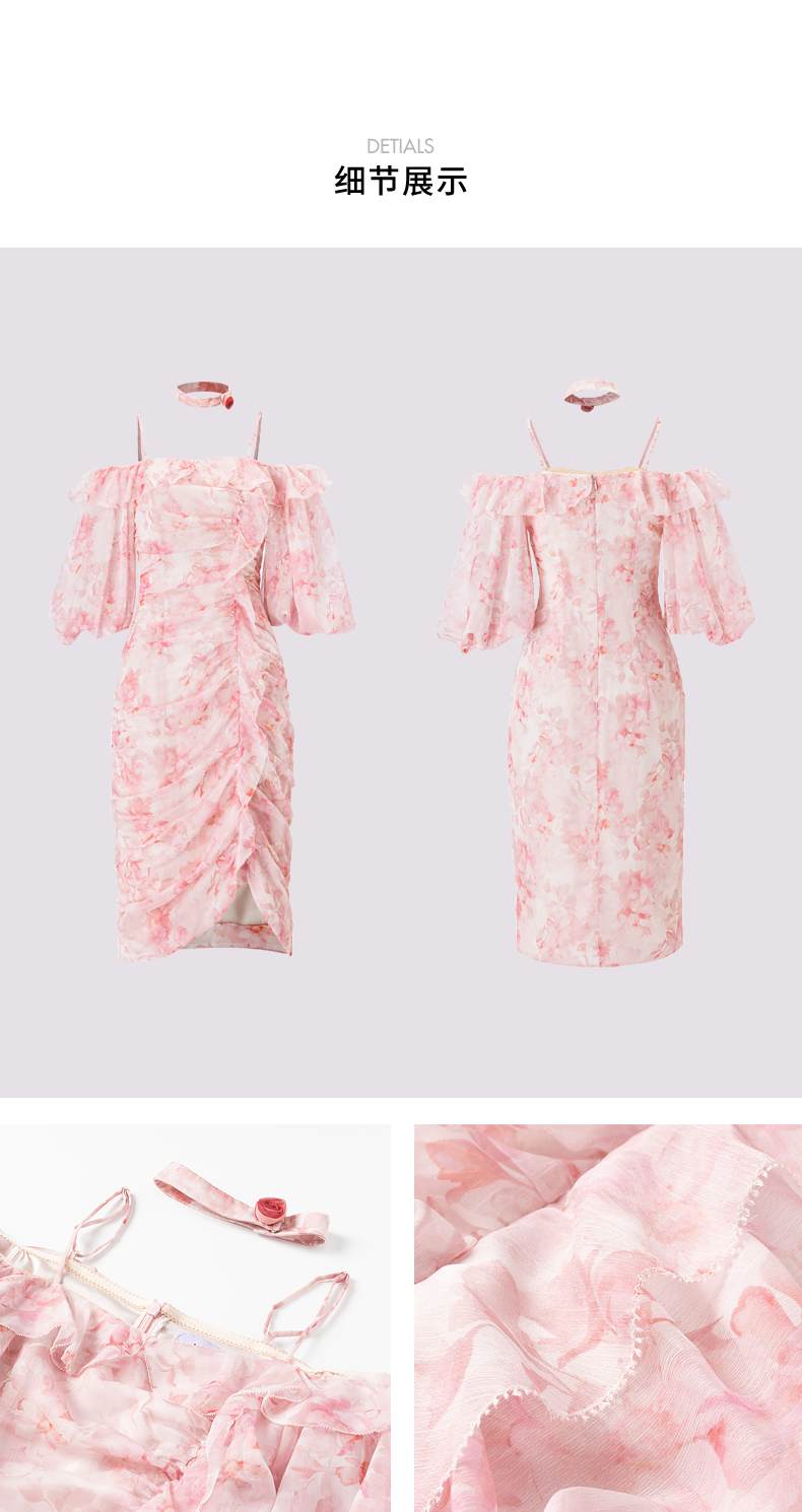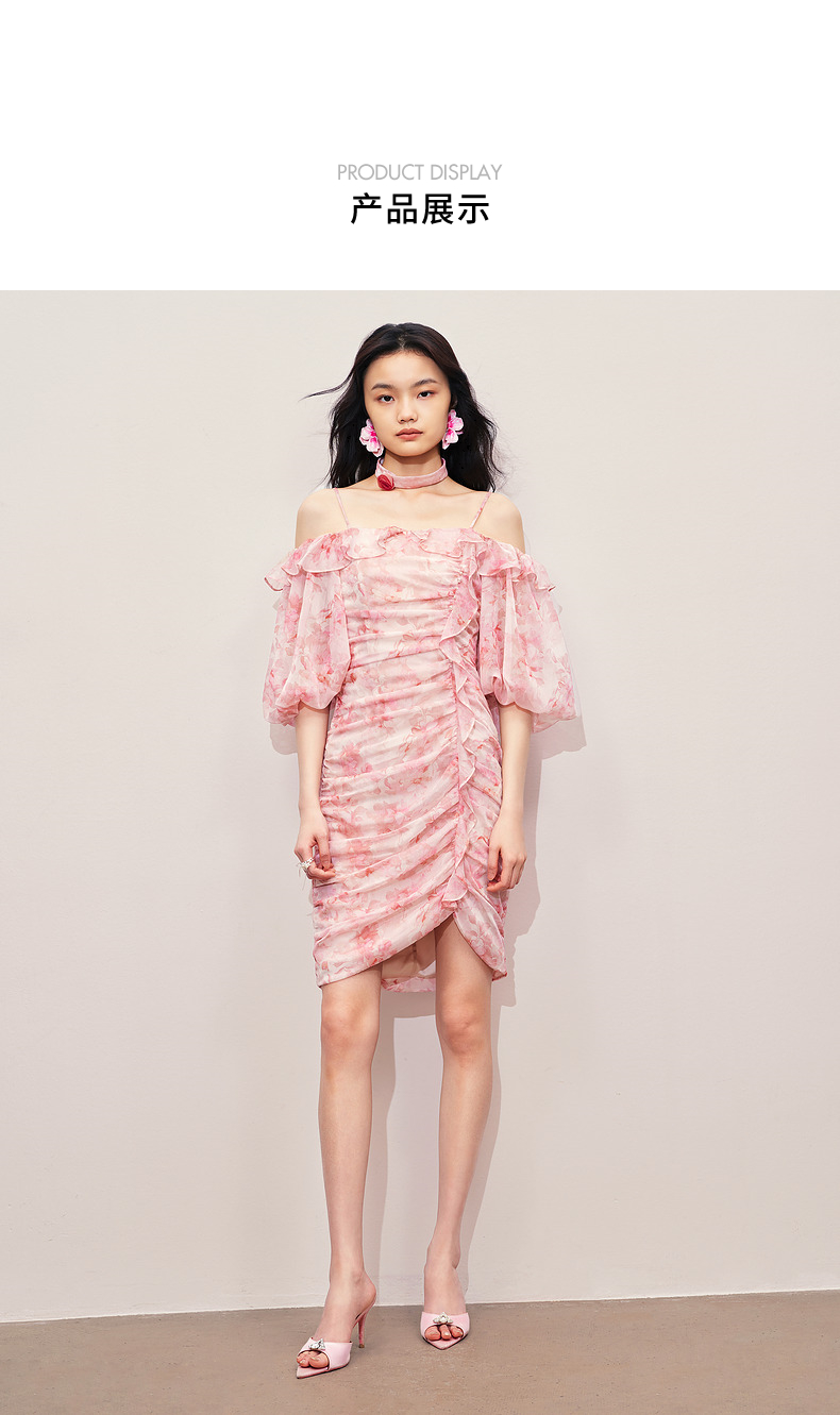 【商场同款】MAXRIENY浪漫甜美感一字肩吊带连衣裙茶歇裙女(货号:MS85DR273)