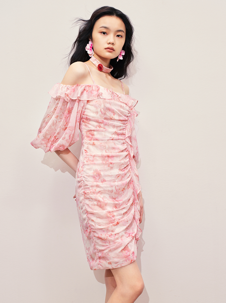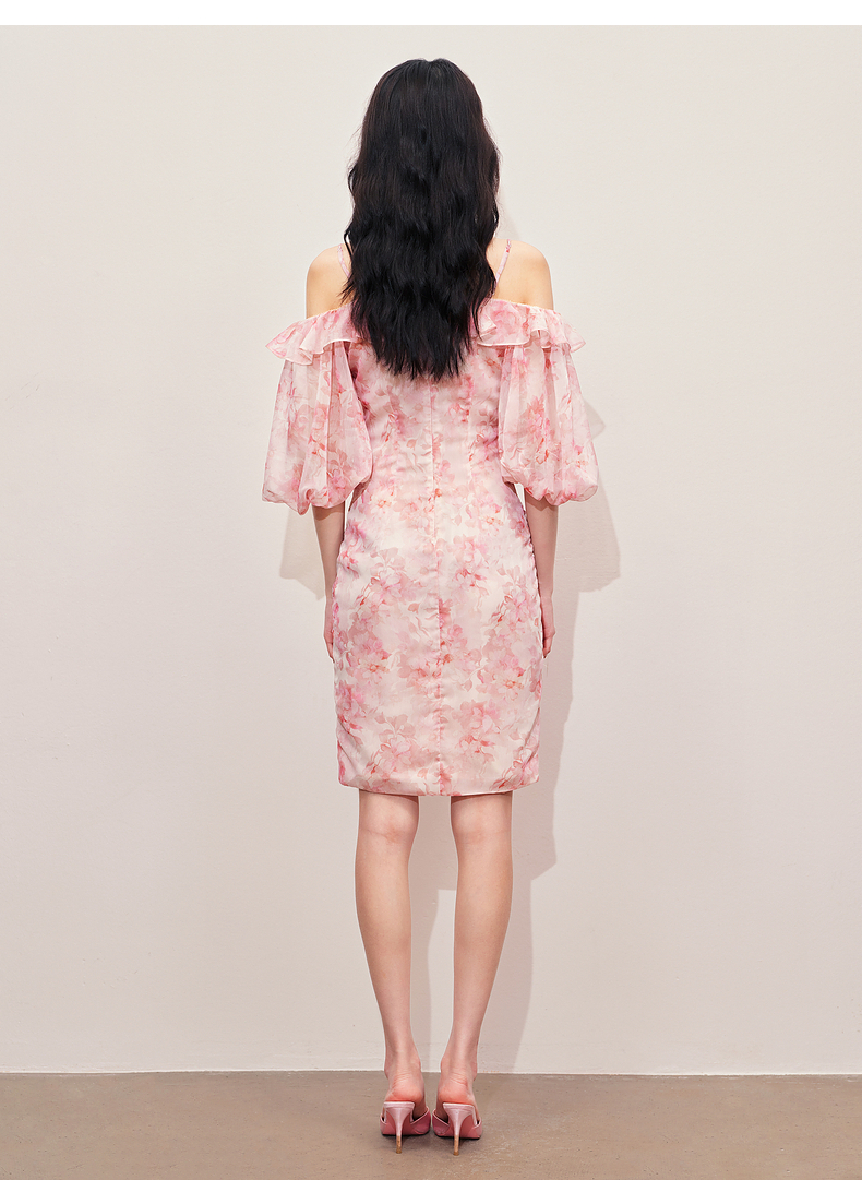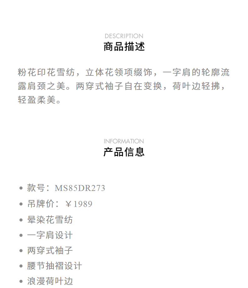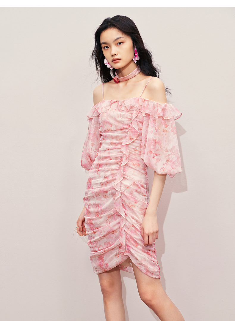 【商场同款】MAXRIENY浪漫甜美感一字肩吊带连衣裙茶歇裙女(货号:MS85DR273)