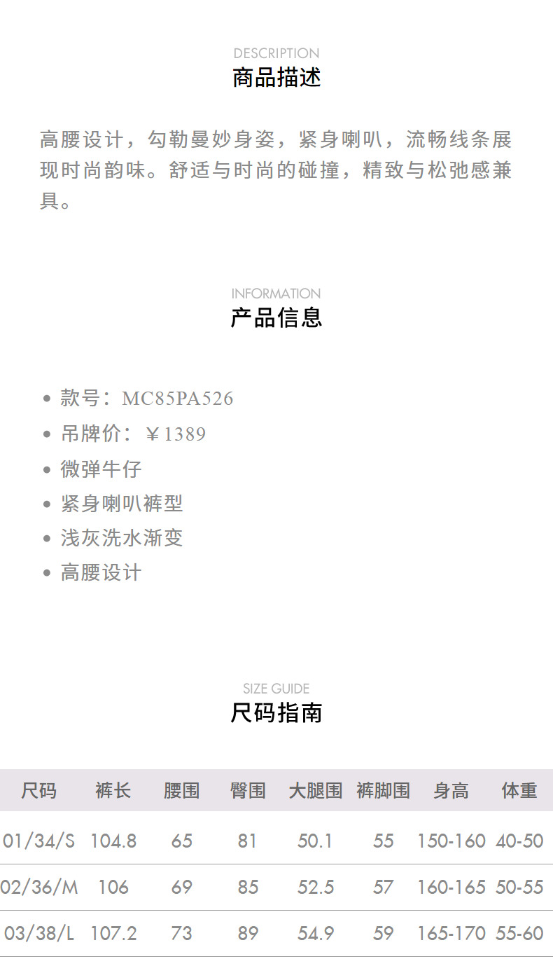 【贵雅日常-商场同款】MAXRIENY精致休闲紧身喇叭牛仔裤24秋新款(货号:MC85PA526)