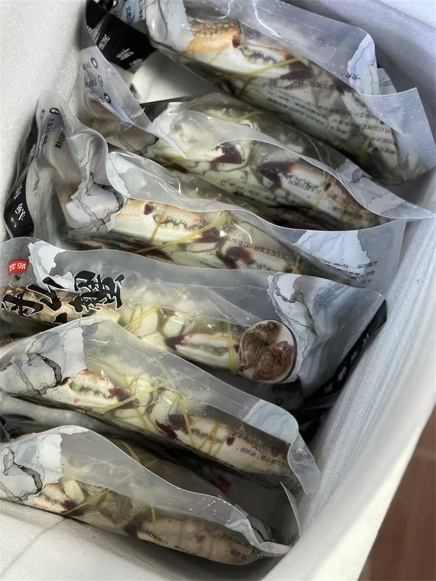温馨提示: 呛蟹为生腌制品,肠胃不好谨慎食用。建议从冰箱取出后尽快食用,风味最佳。