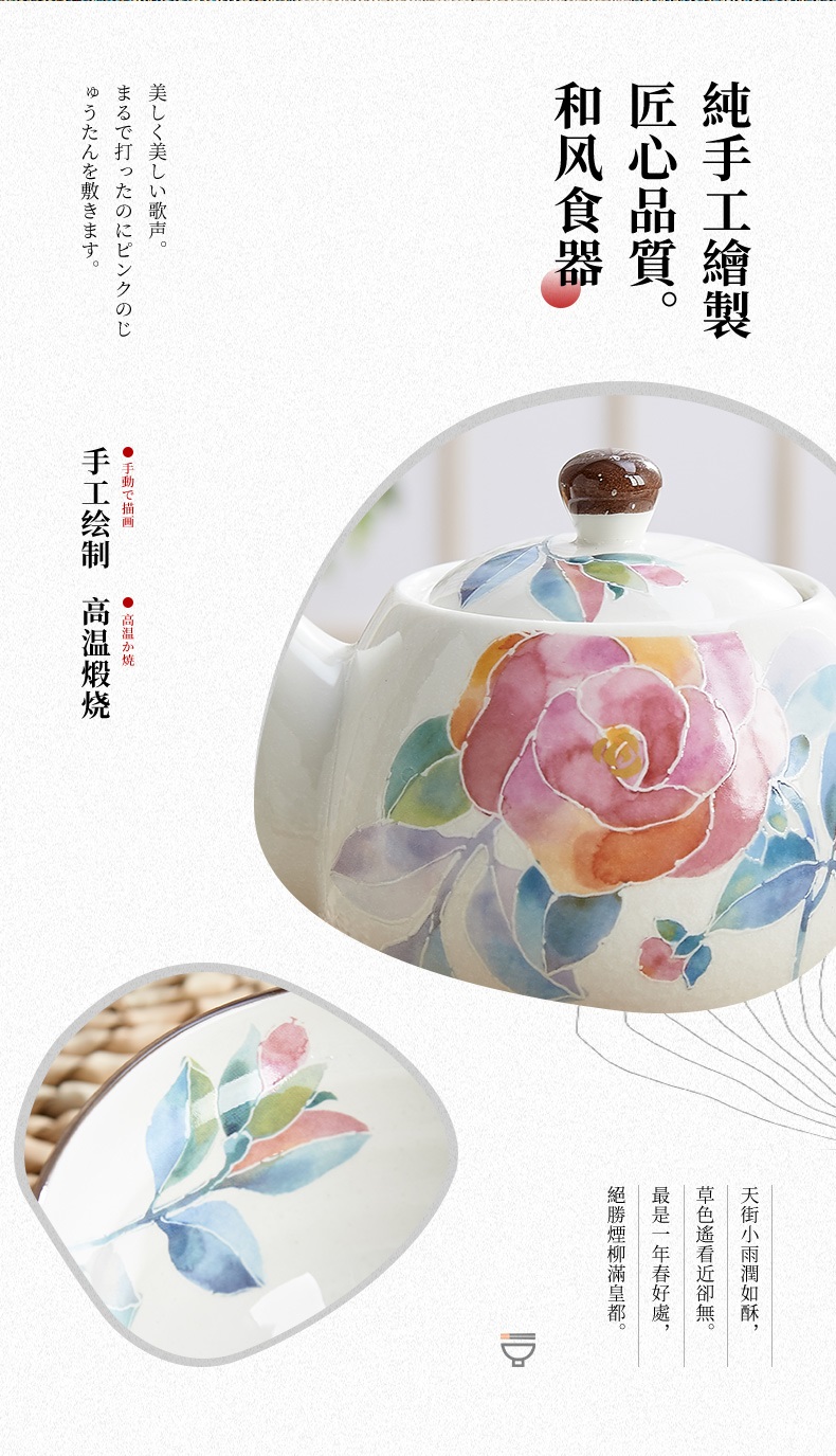 手作器皿都由匠人手工捏制、绘图、上釉,部分器皿是印花工艺,因此每个器皿的尺寸和图案的颜色、形状大小等会有些许差别,或存在釉色不均、结釉、底部落款不同等现象,这是手作过程中难以控制的,并非瑕疵产品。