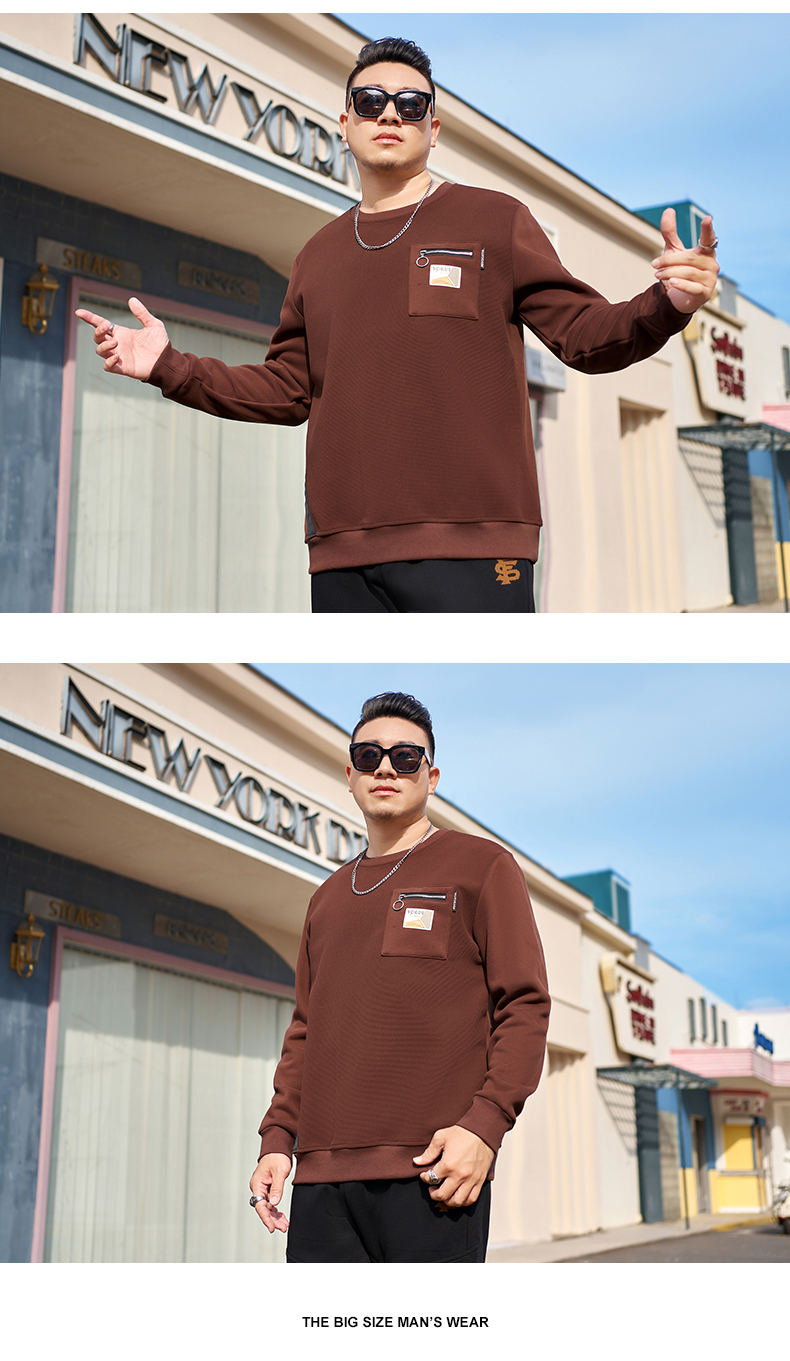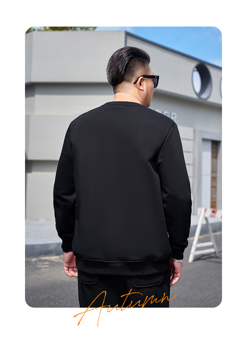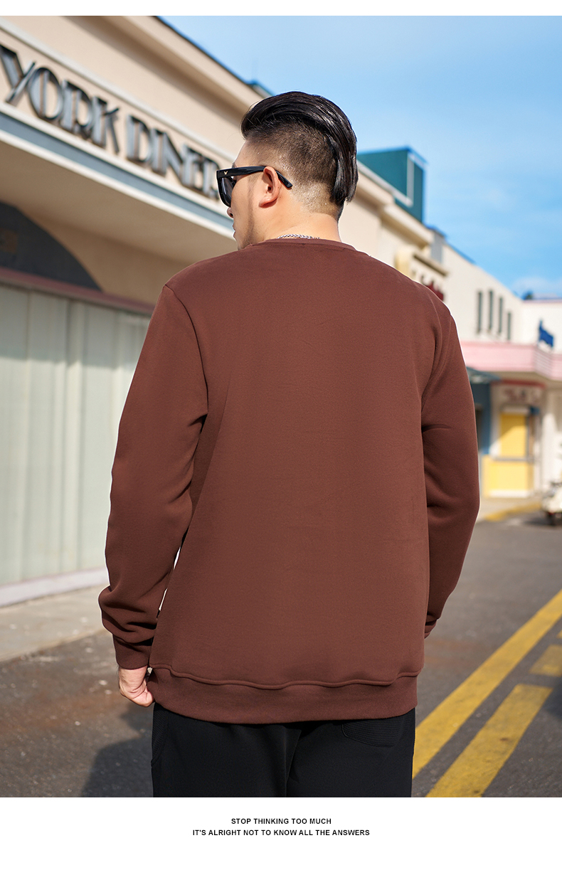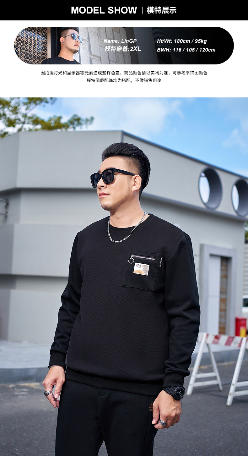 【圈】【新款DMH】大依优型大码加绒卫衣圆领弹力加肥加大胖子长袖上衣男士T恤肥佬男装潮款