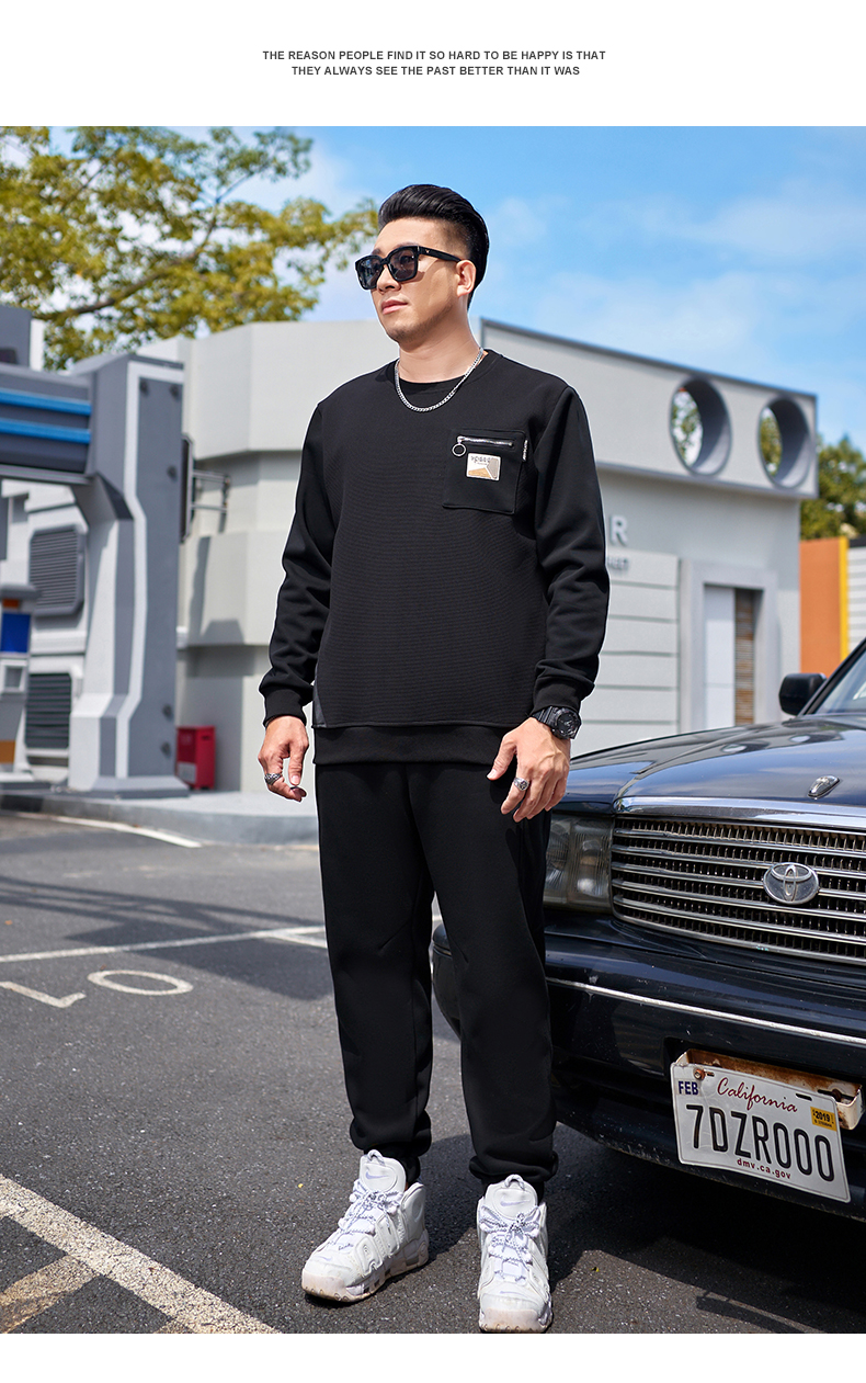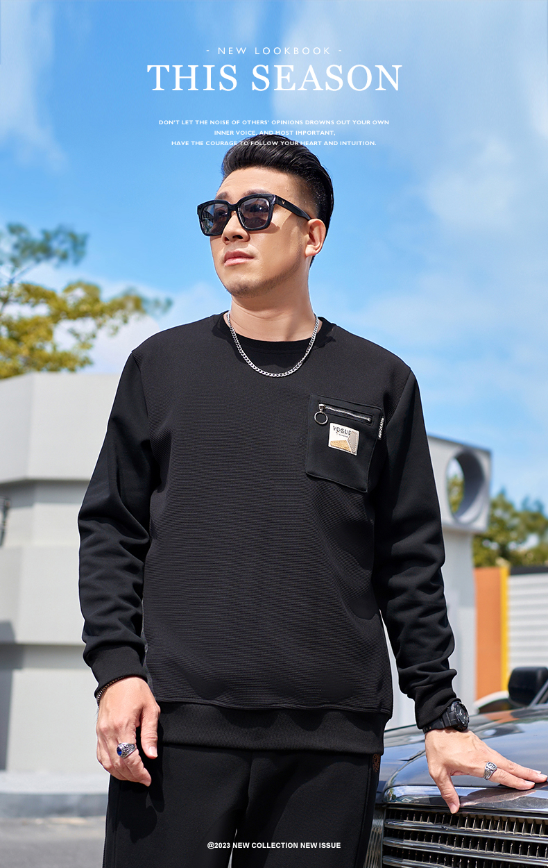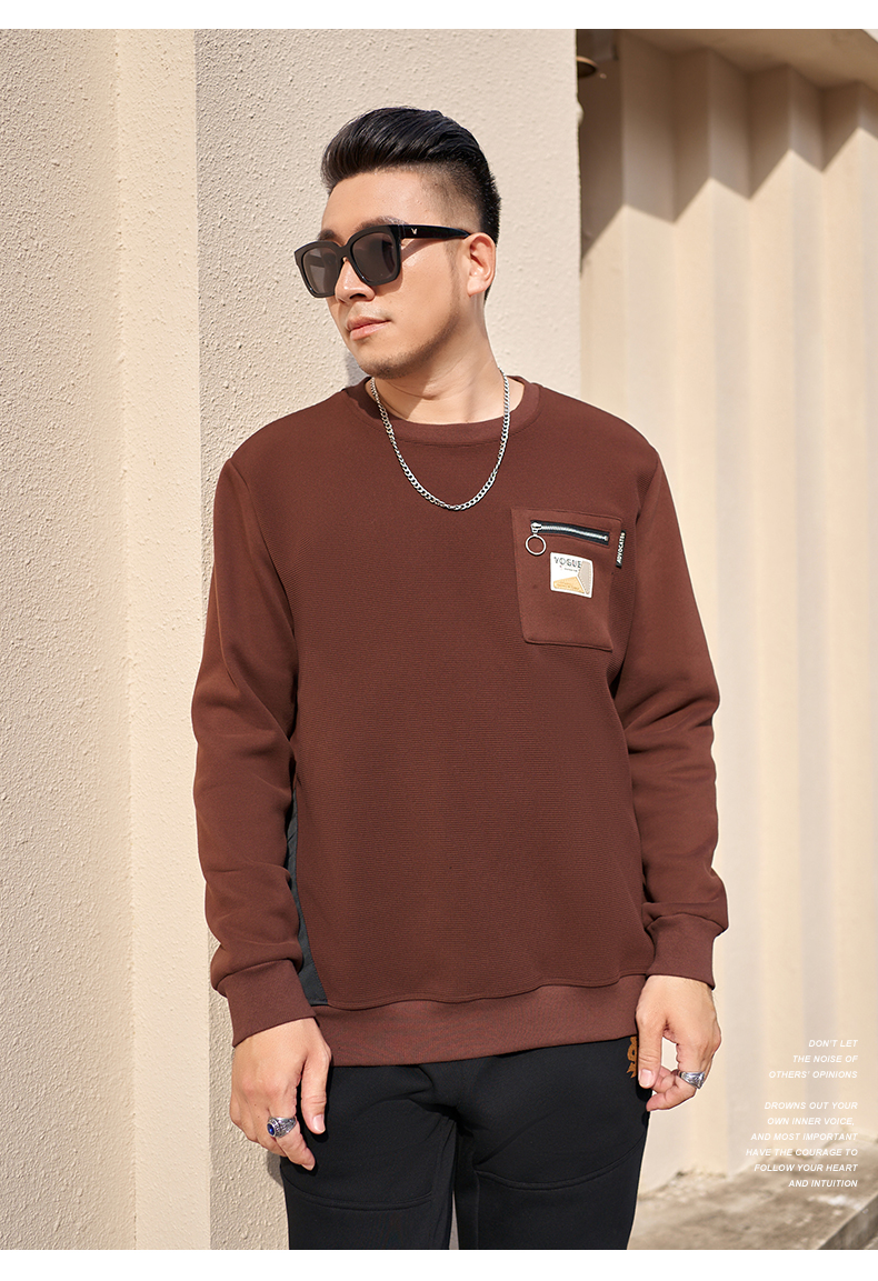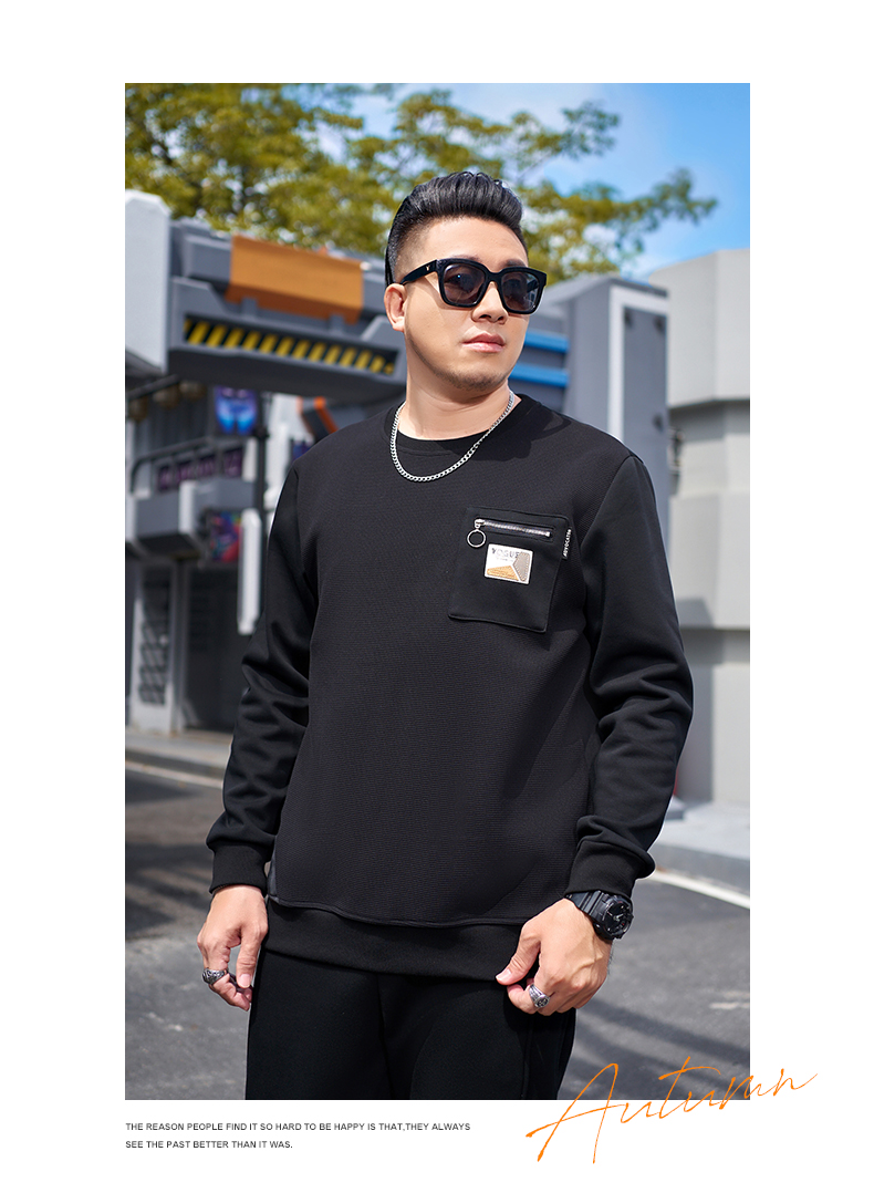 【圈】【新款DMH】大依优型大码加绒卫衣圆领弹力加肥加大胖子长袖上衣男士T恤肥佬男装潮款