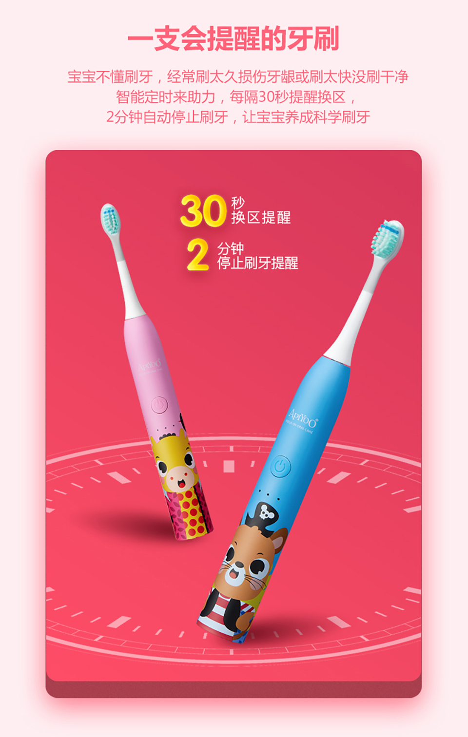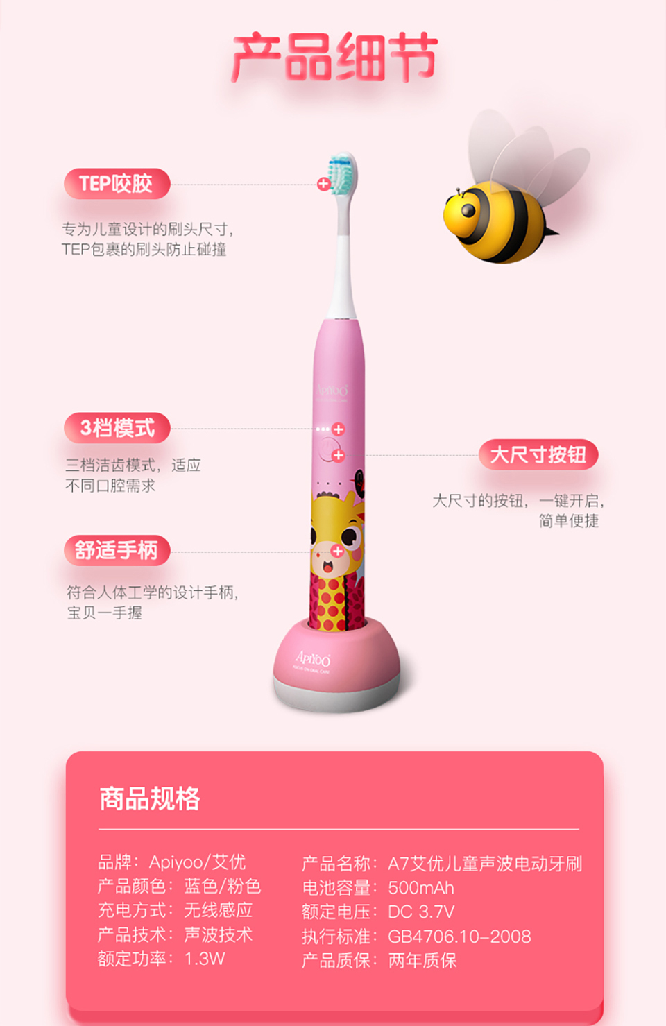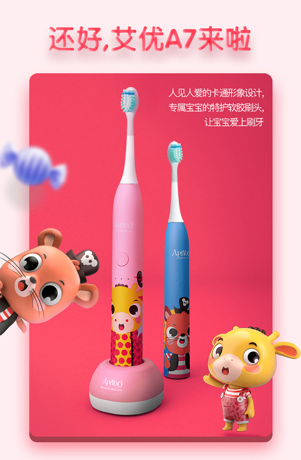 ApiYoo 荷兰艾优A7儿童电动牙刷 宝宝学生电动牙刷卡通声波震动3-12岁儿童 (自带刷头*2)