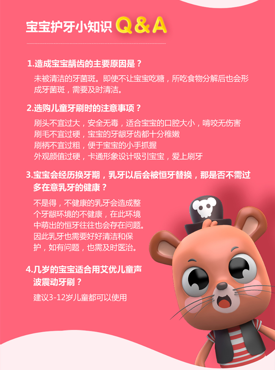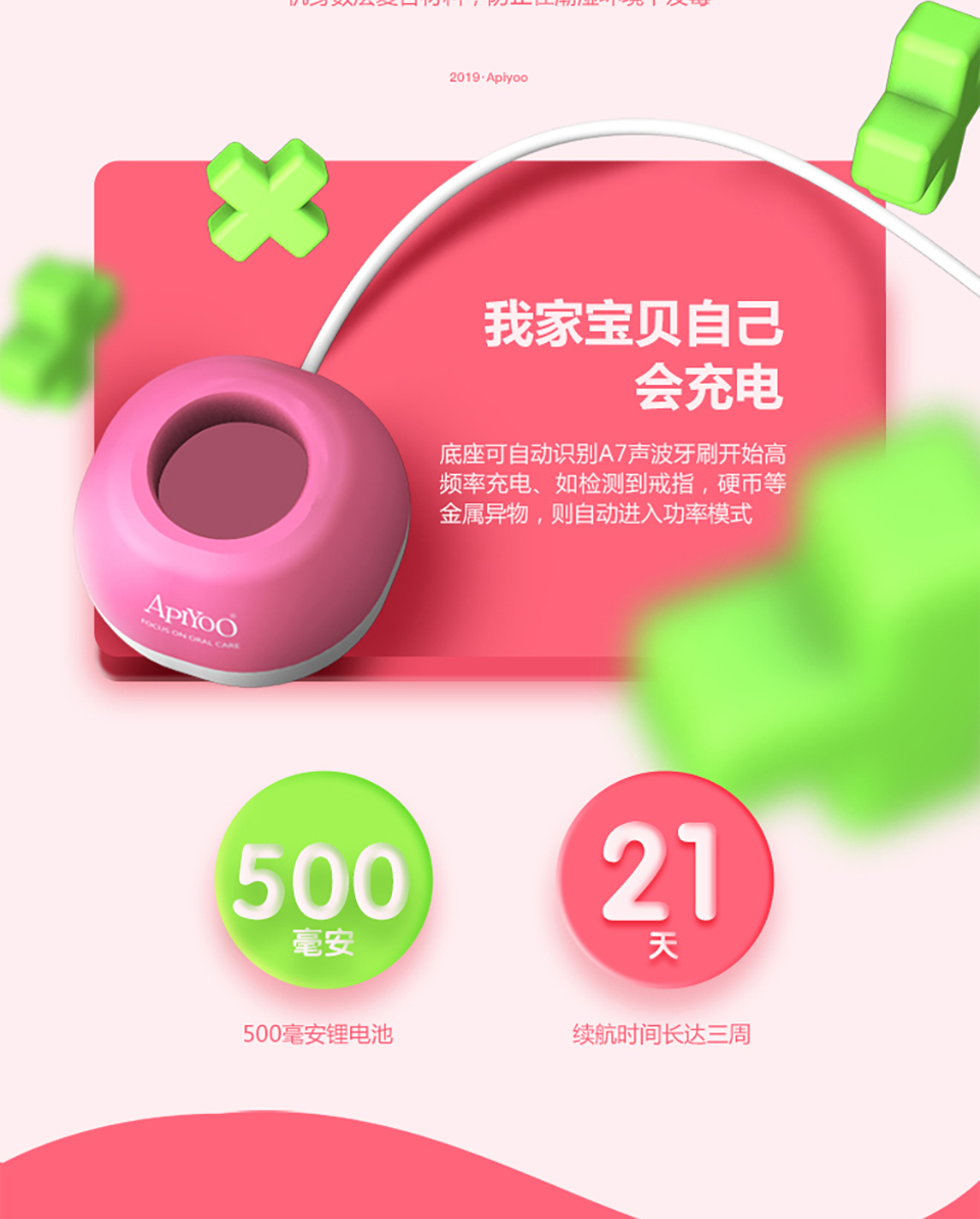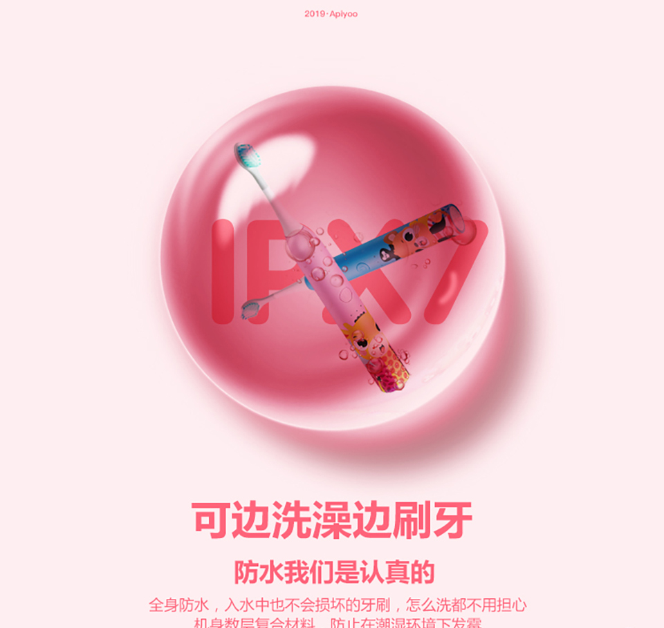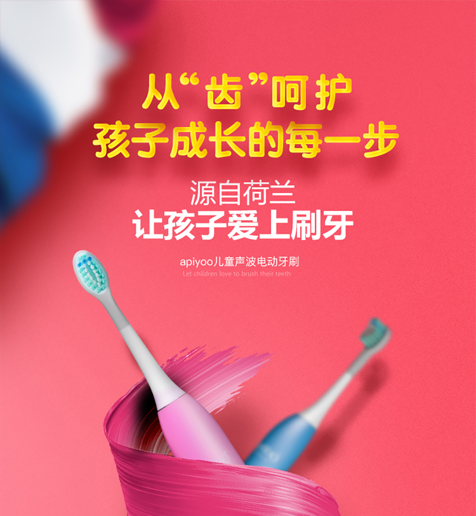 ApiYoo 荷兰艾优A7儿童电动牙刷 宝宝学生电动牙刷卡通声波震动3-12岁儿童 (自带刷头*2)