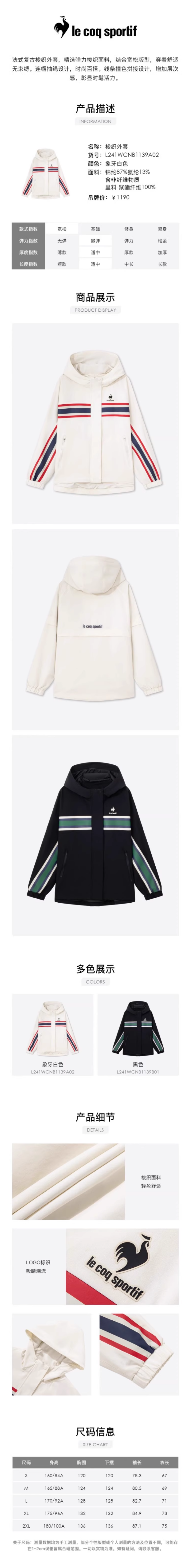【大都会店】乐卡克 法国公鸡2024春秋季女士连帽宽松舒适梭织运动外套 L241WCNB1139