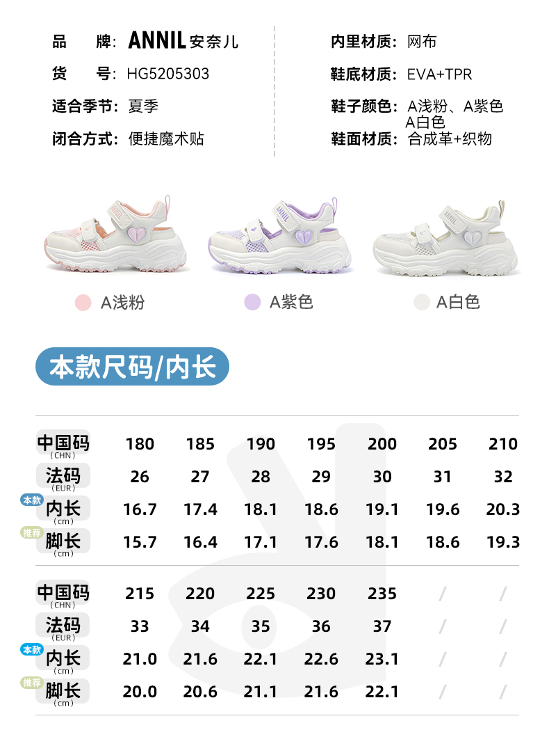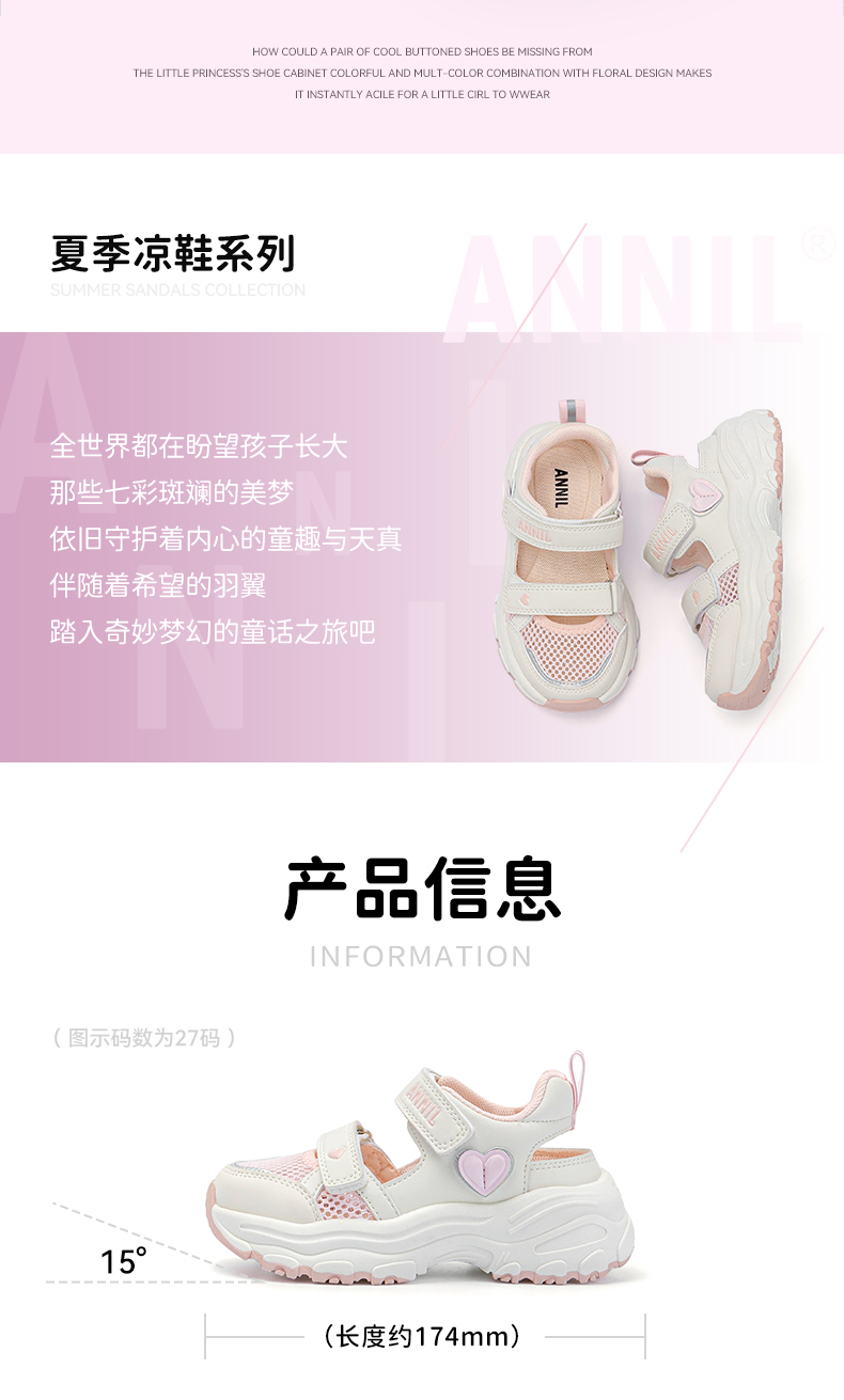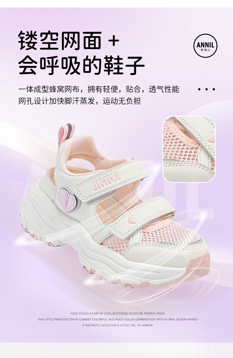 ANNIL/安奈儿女童运动鞋2025夏季网面透气女宝凉鞋公主休闲跑步儿童鞋子HG5205303