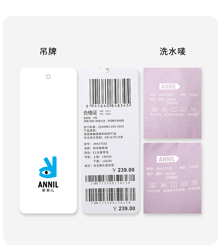 安奈儿童装男女童秋衣裤套装2024秋新款JM437550
