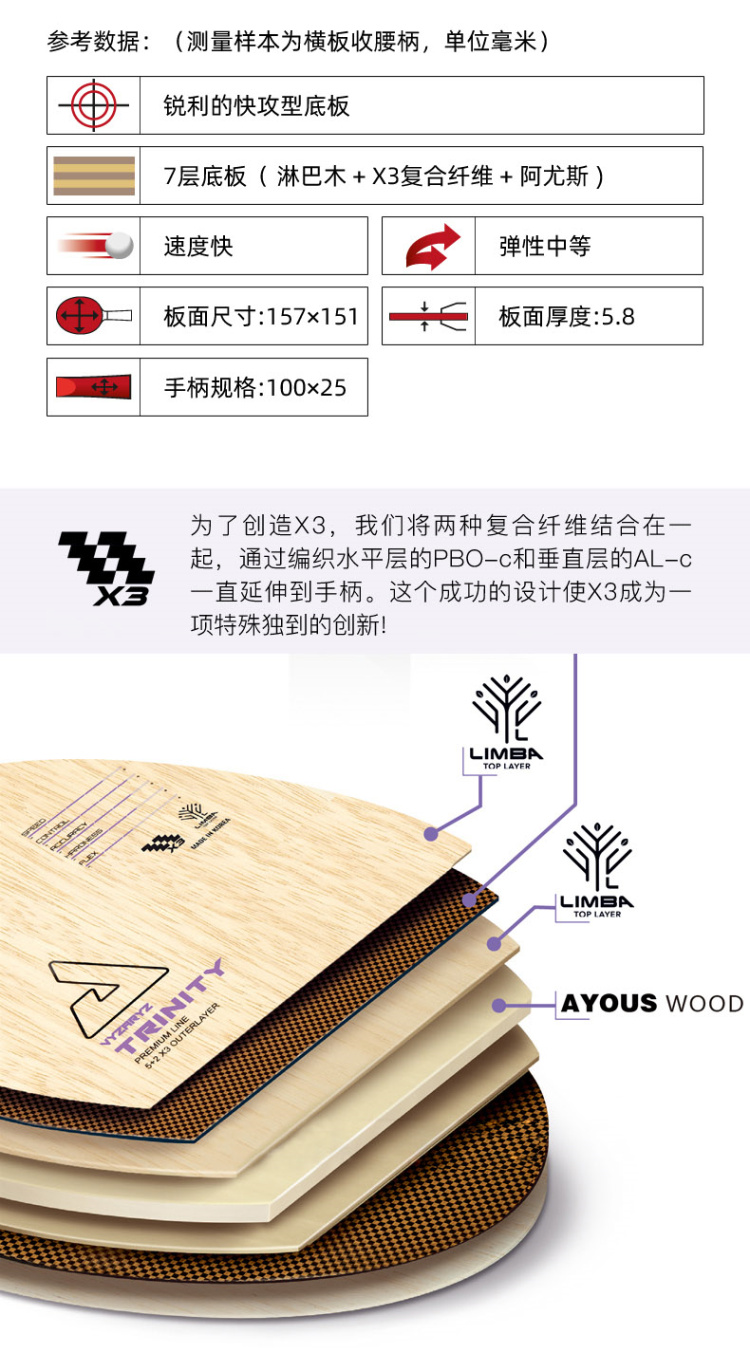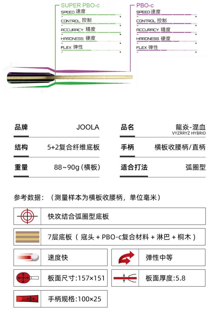 尤拉JOOLA优拉 龍炎系列龙炎权杖/混血/冰封 ALC ZLC乒乓底板