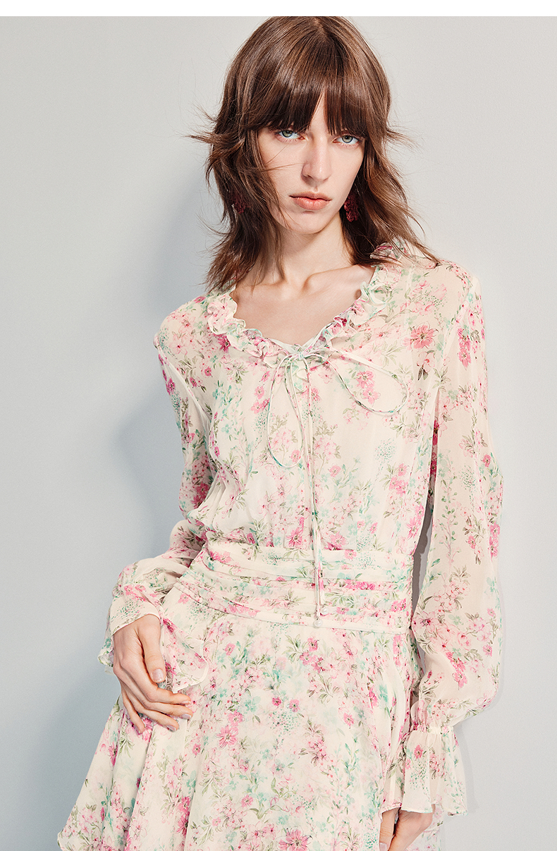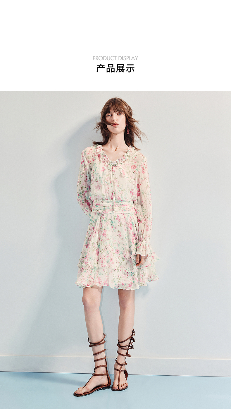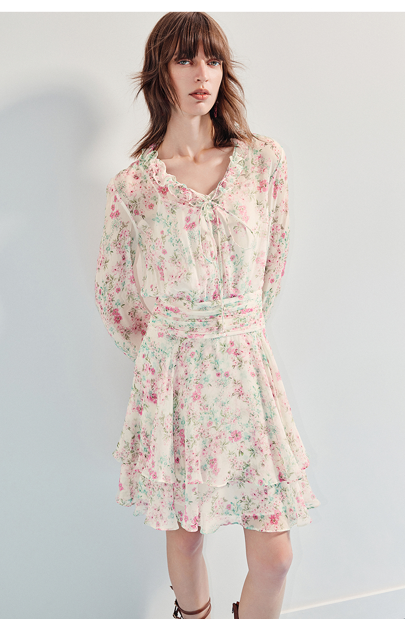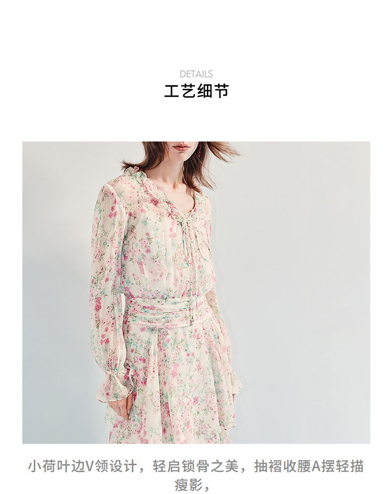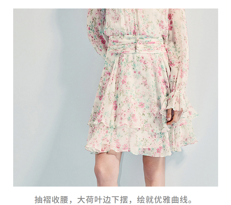 MAXRIENY优雅度假风碎花连衣裙25夏款抽褶收腰浪漫印花晕染(货号:MF86DR011)