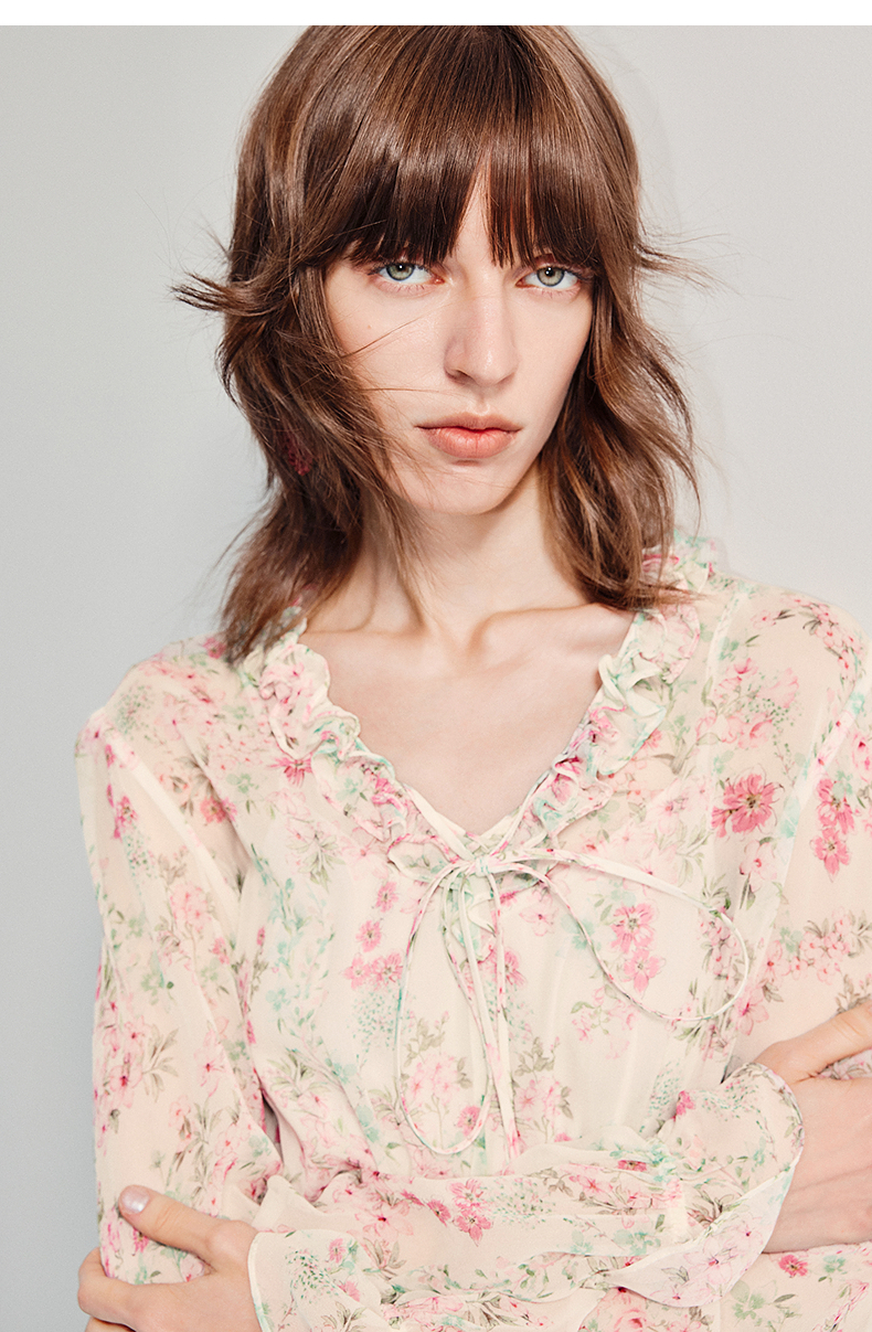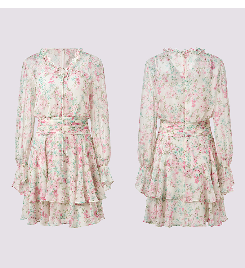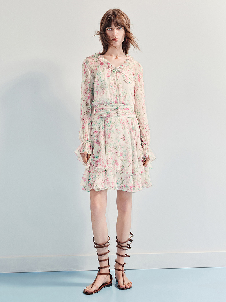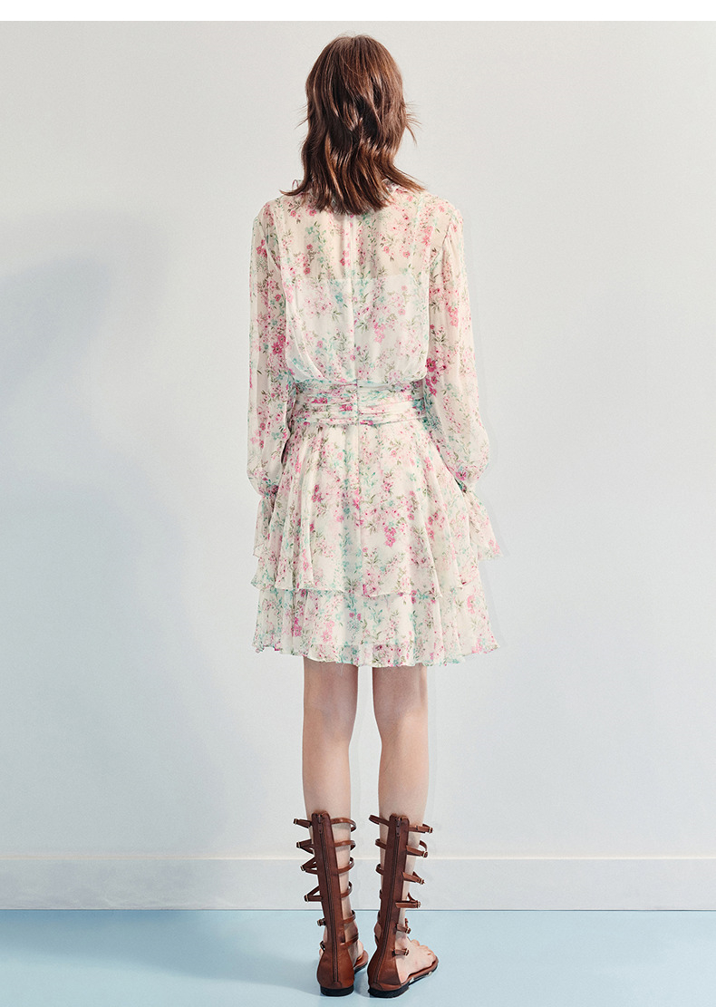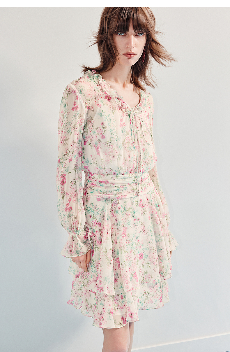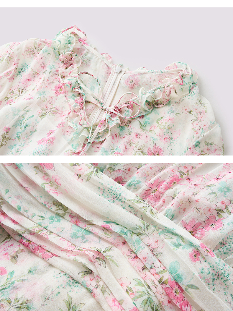 MAXRIENY优雅度假风碎花连衣裙25夏款抽褶收腰浪漫印花晕染(货号:MF86DR011)