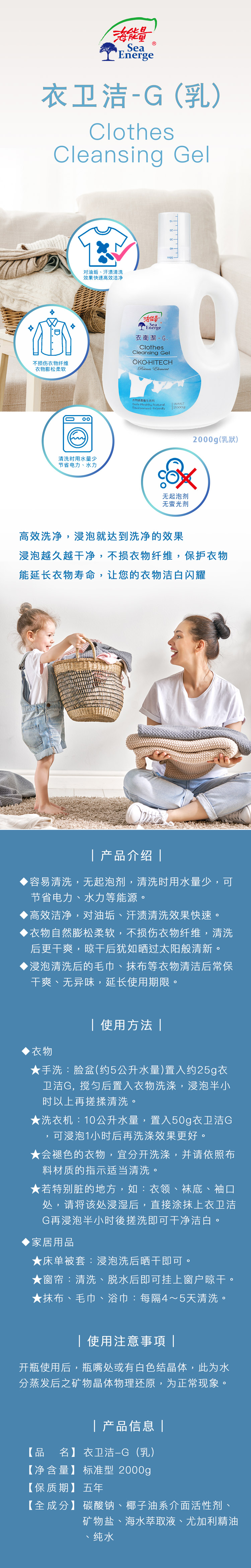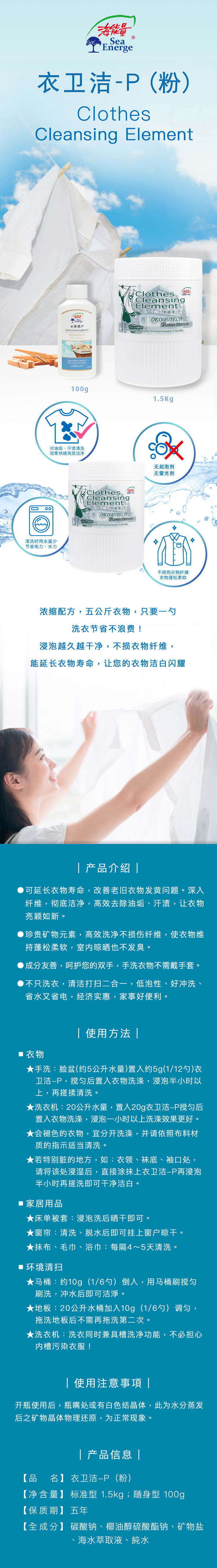衣卫洁 | 100g/1.5kg/2kg 环保洗衣粉洗衣液 内衣清洁 洗衣机槽清洁 去血渍 低泡易冲洗 海能量