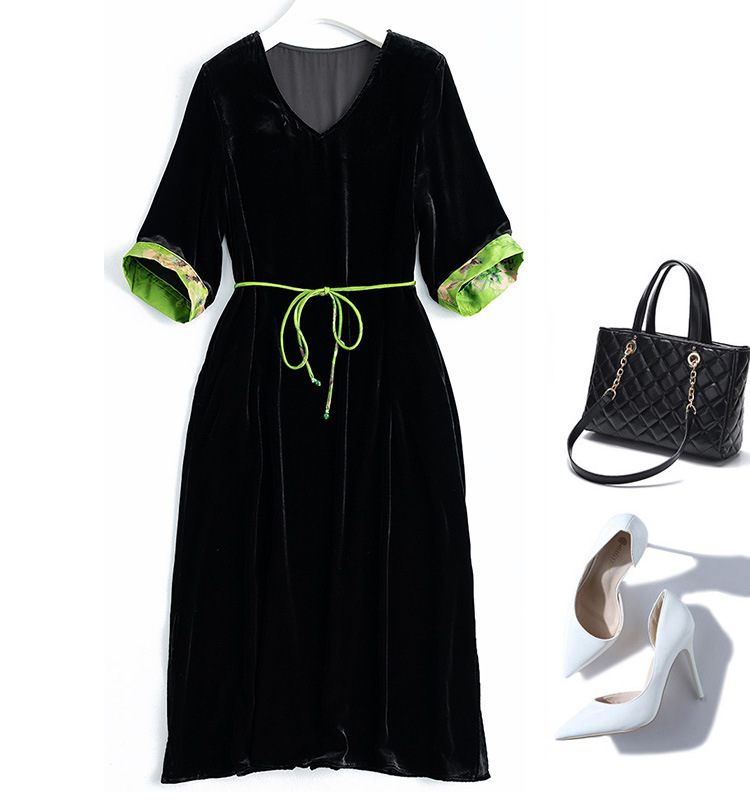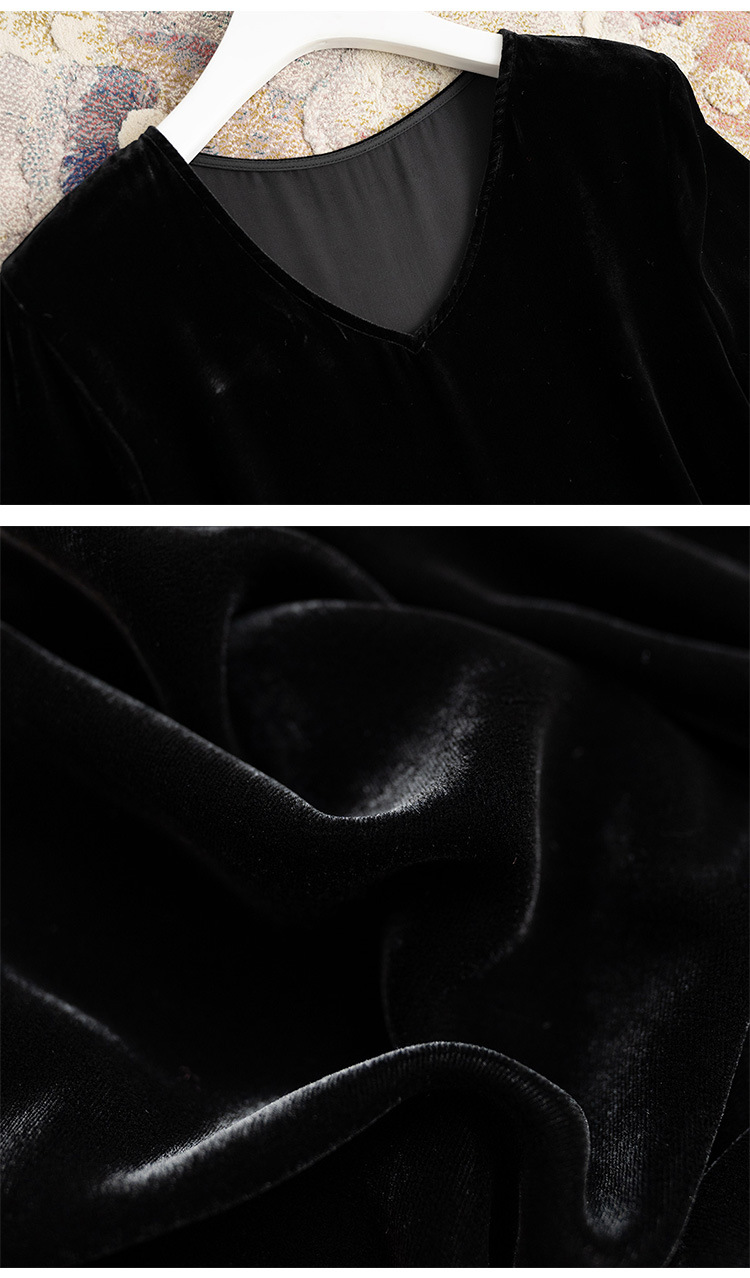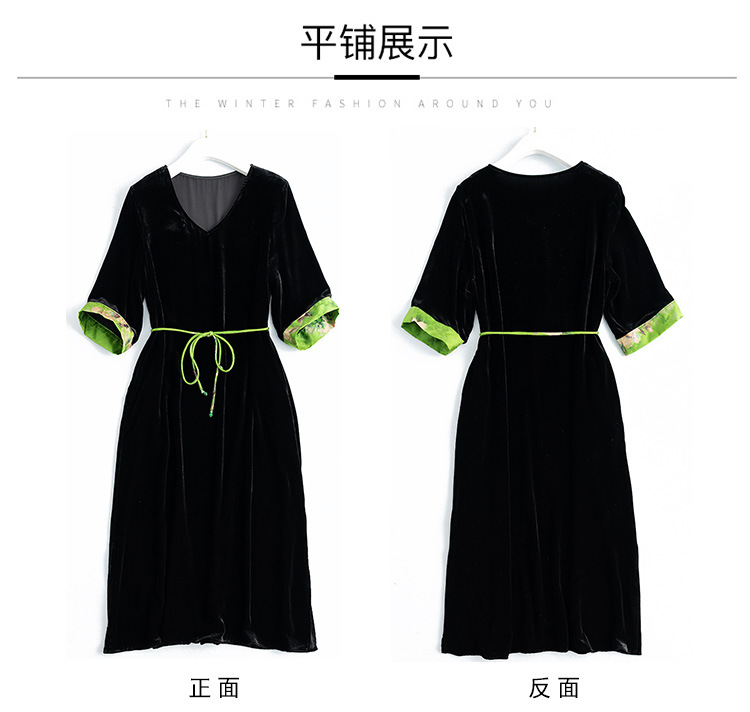 KDS-8916真丝绒连衣裙新款香云纱桑蚕丝高贵真丝绒宽松中长裙遮肚子