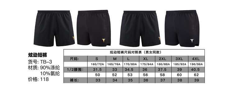 TIBHAR挺拔炫动TB3乒乓球短裤透气速干运动短裤