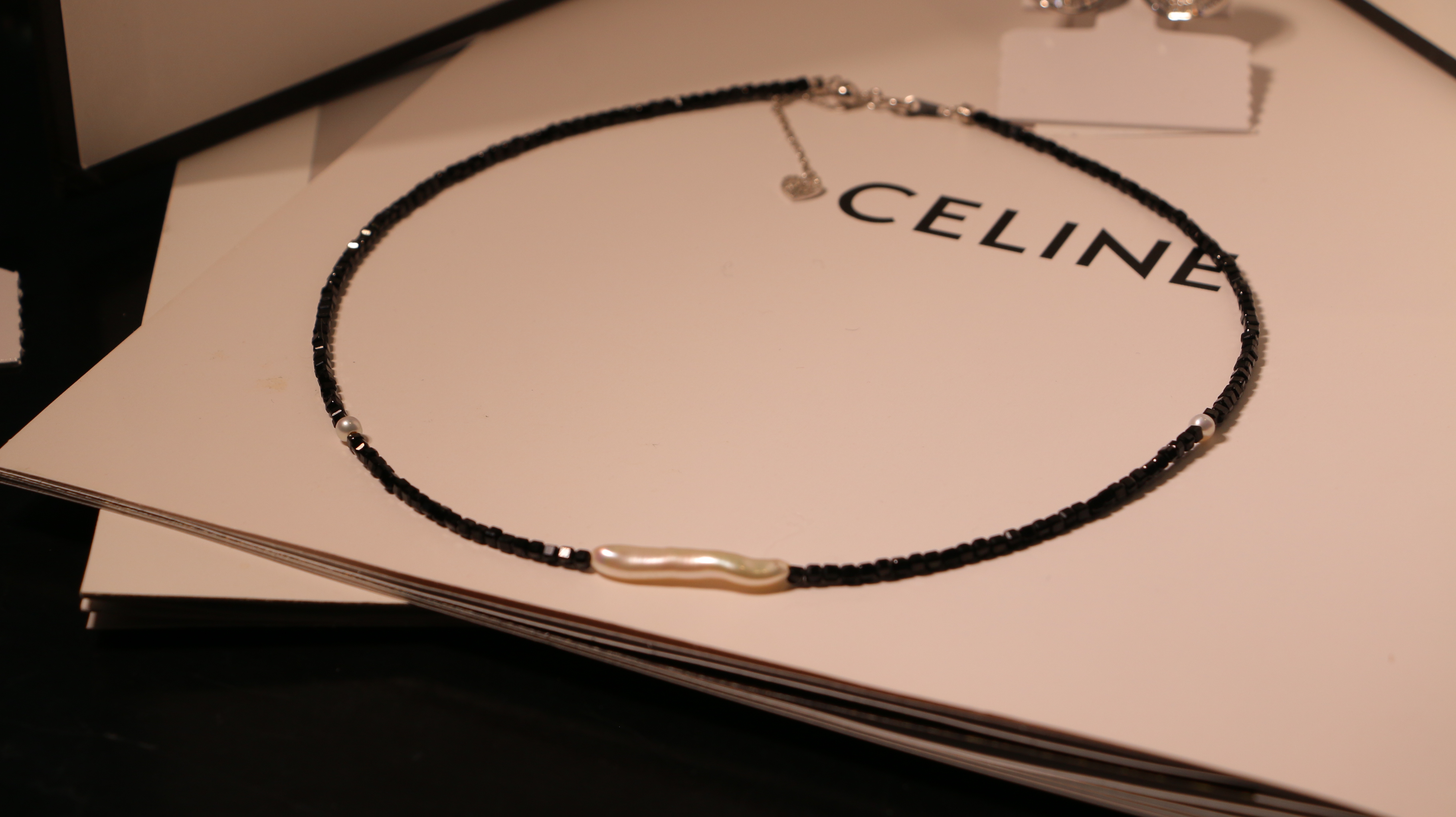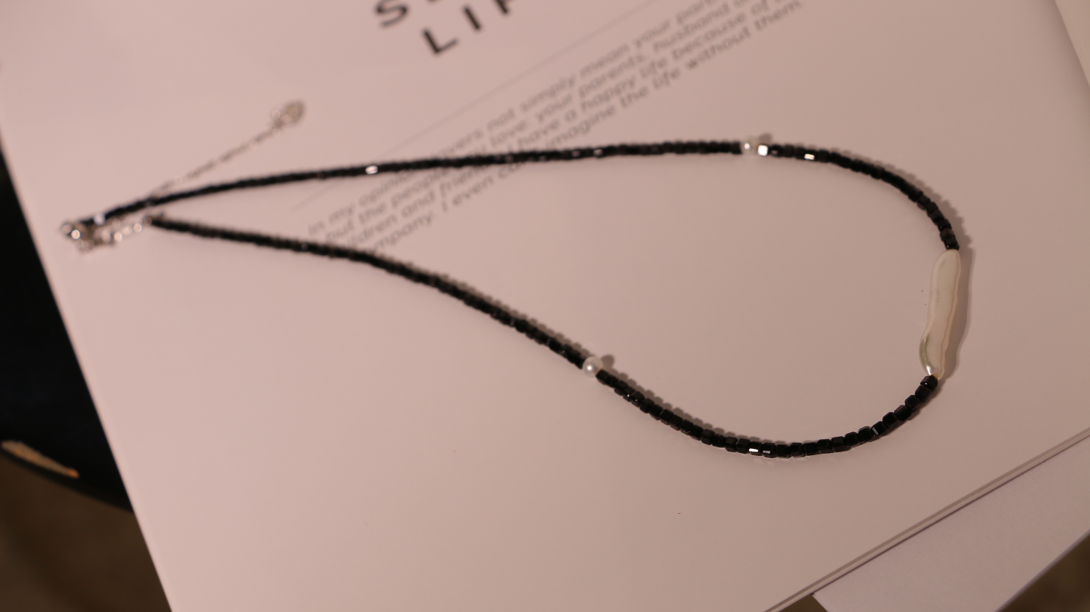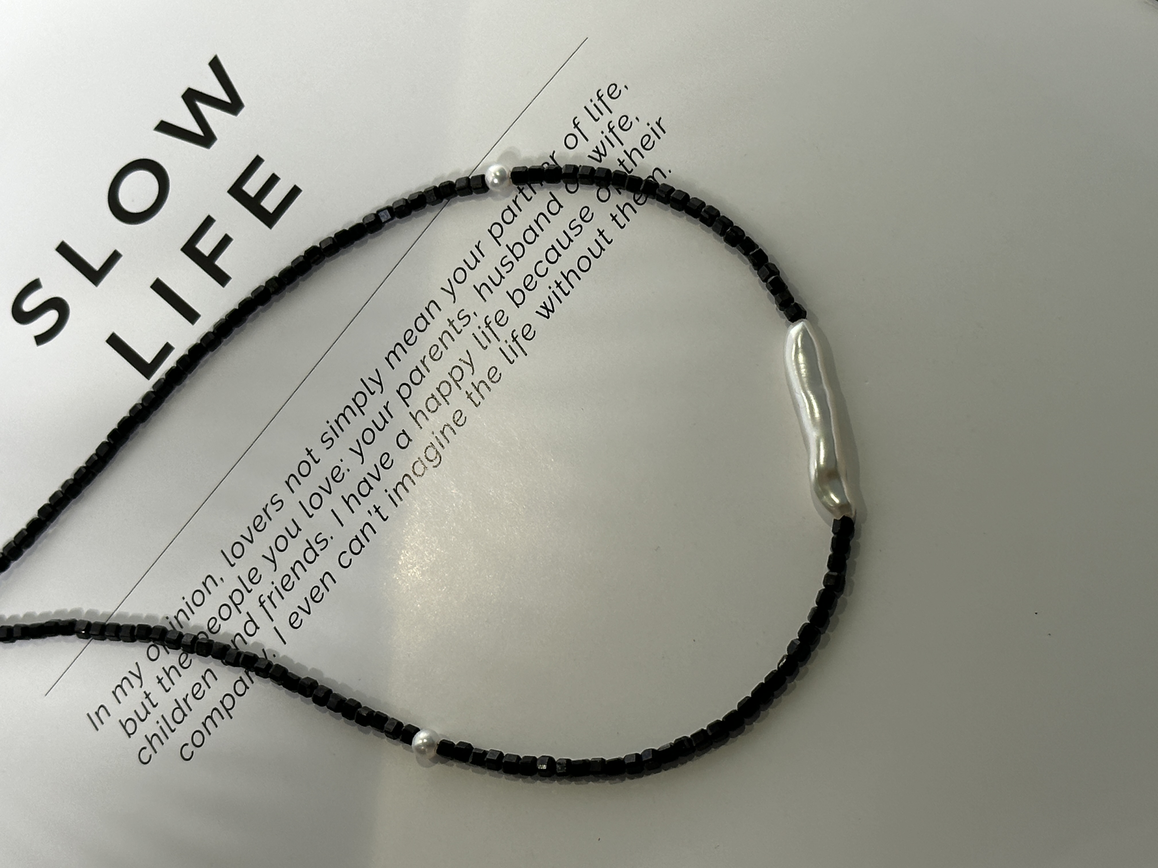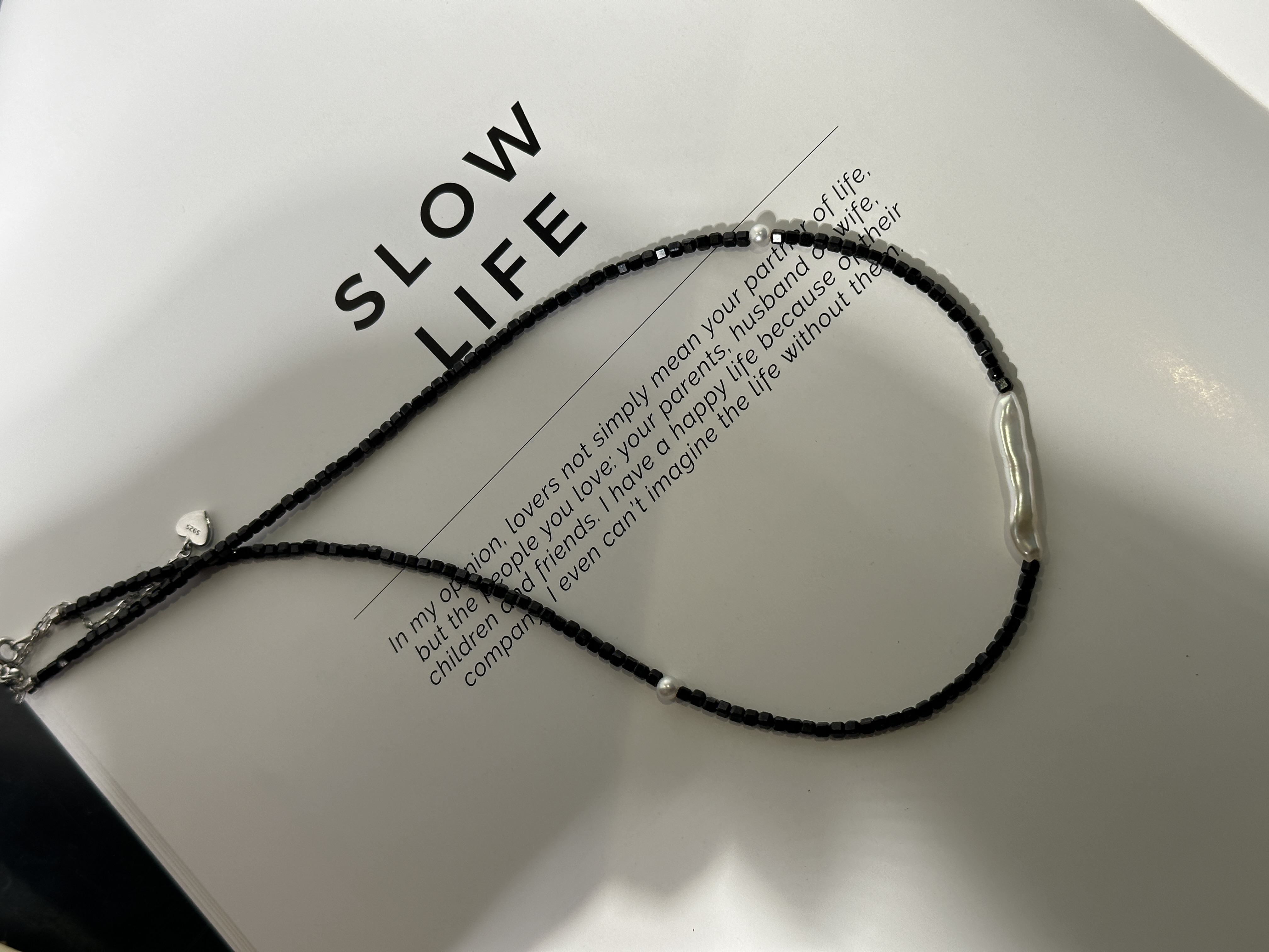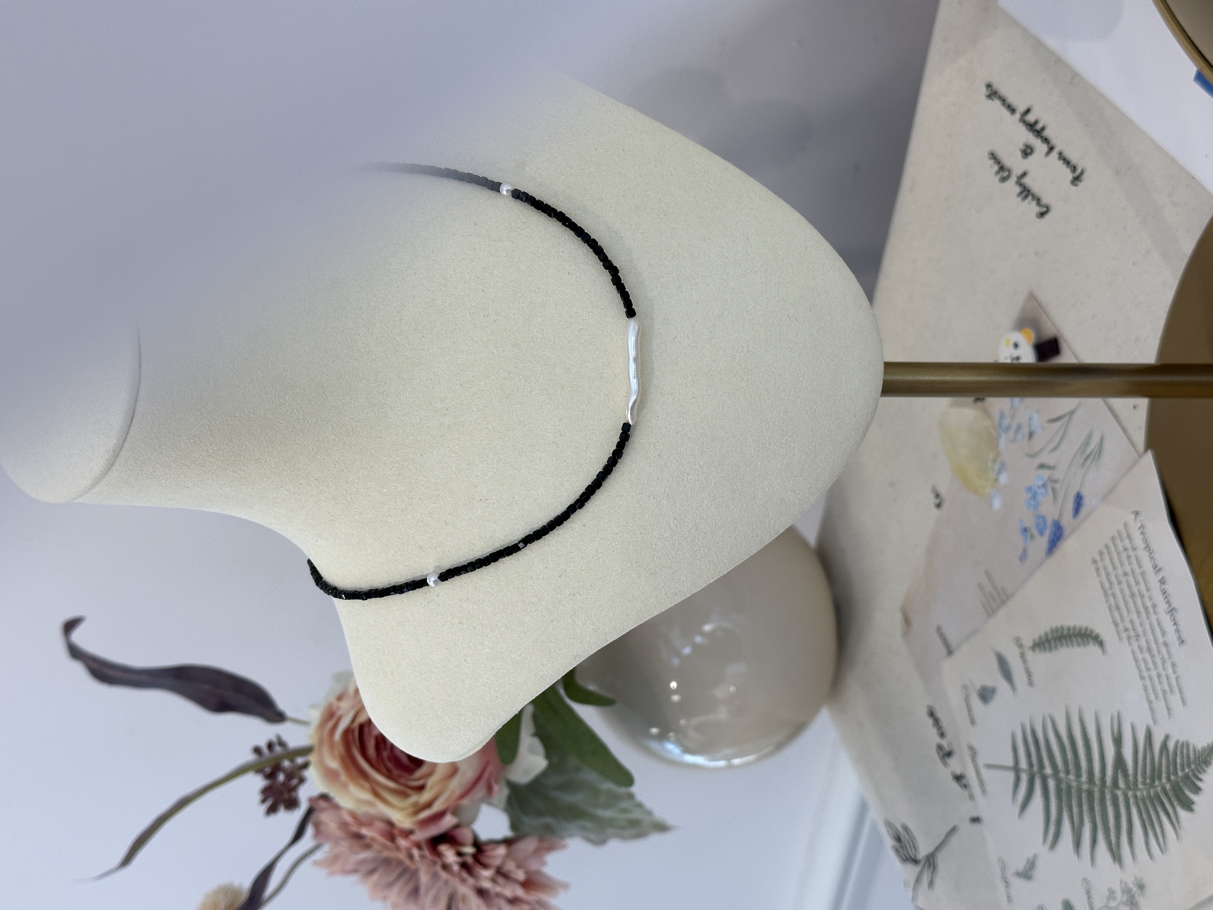 【甄珠贝】禅意zen 【玄境】时髦感十足的黑尖晶石2-3mm + baby珠 2.5-3mm 淡水珍珠项链 锁骨链 尾部可调节纯银链
