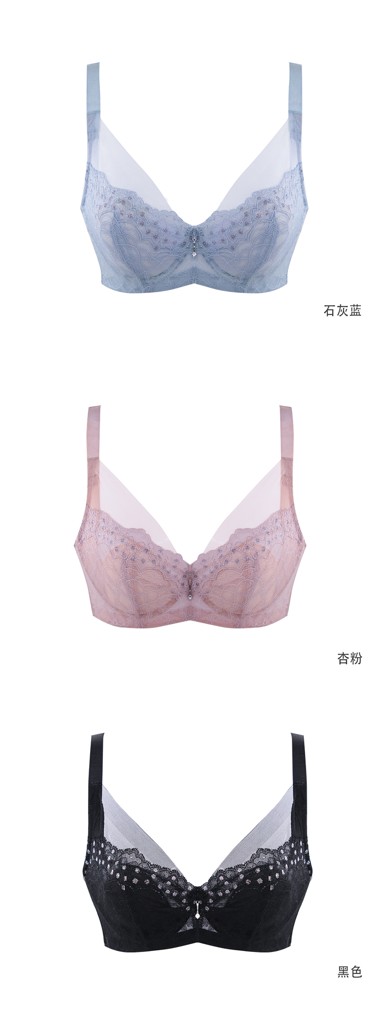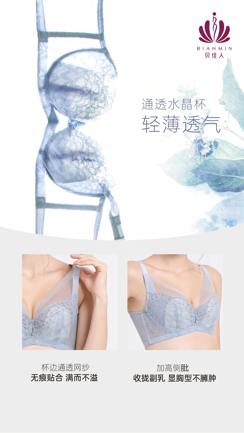 贝佳人新品深V全罩水晶杯超薄款大胸显小内衣舒适文胸BW932004