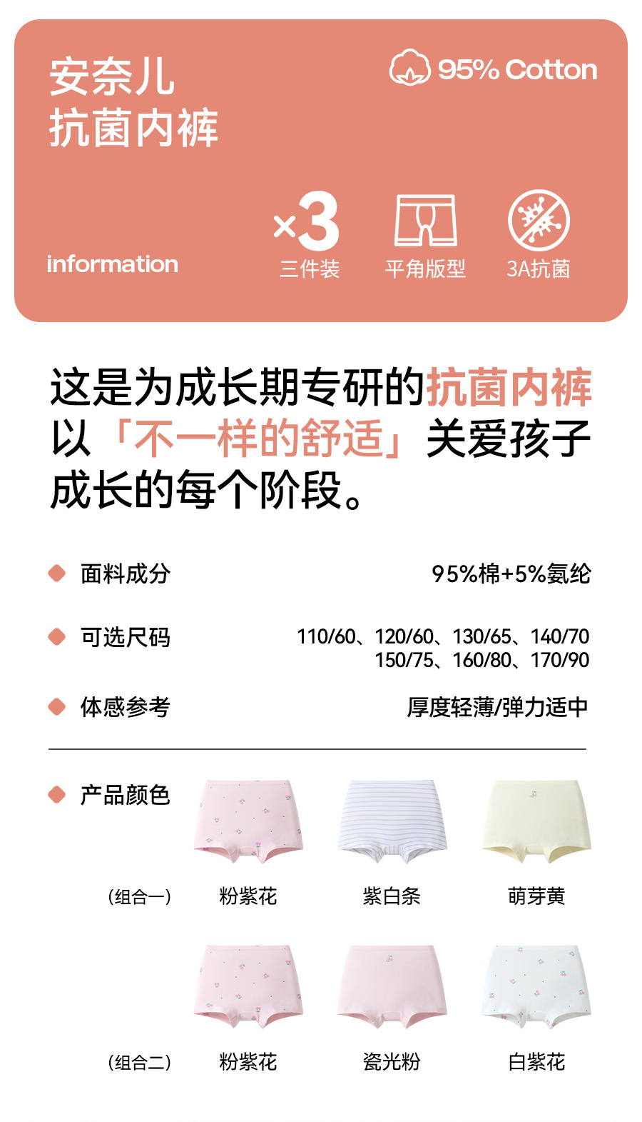 女童平角裤三件装春季新款安奈儿童装JG617514