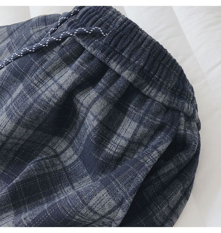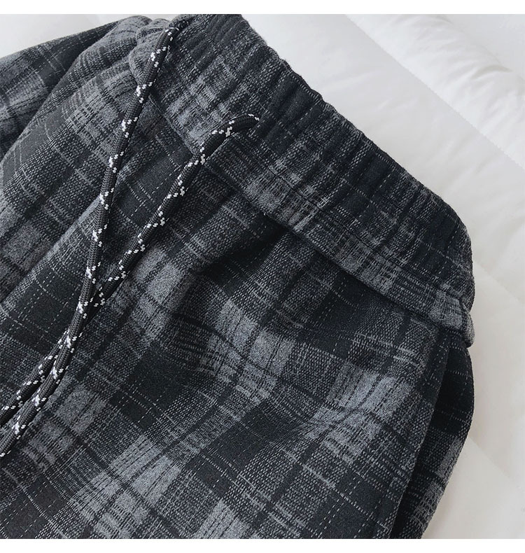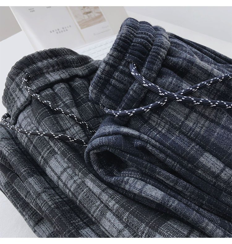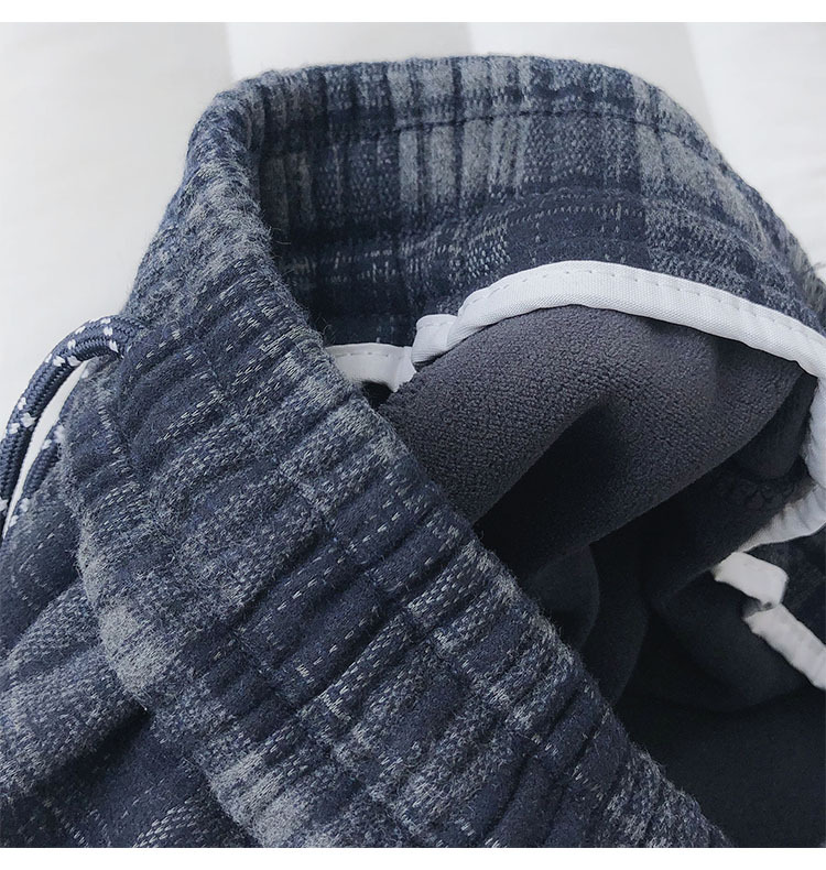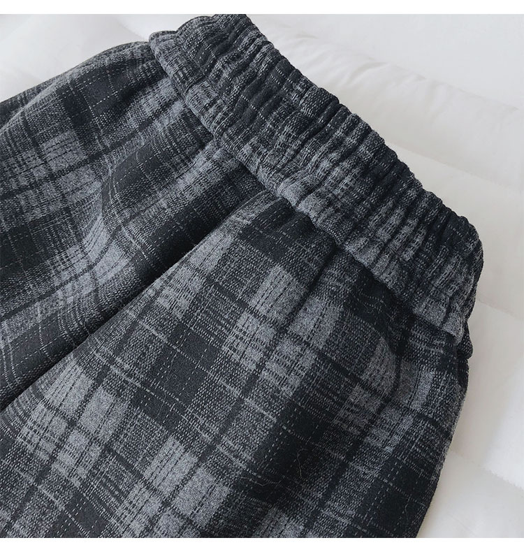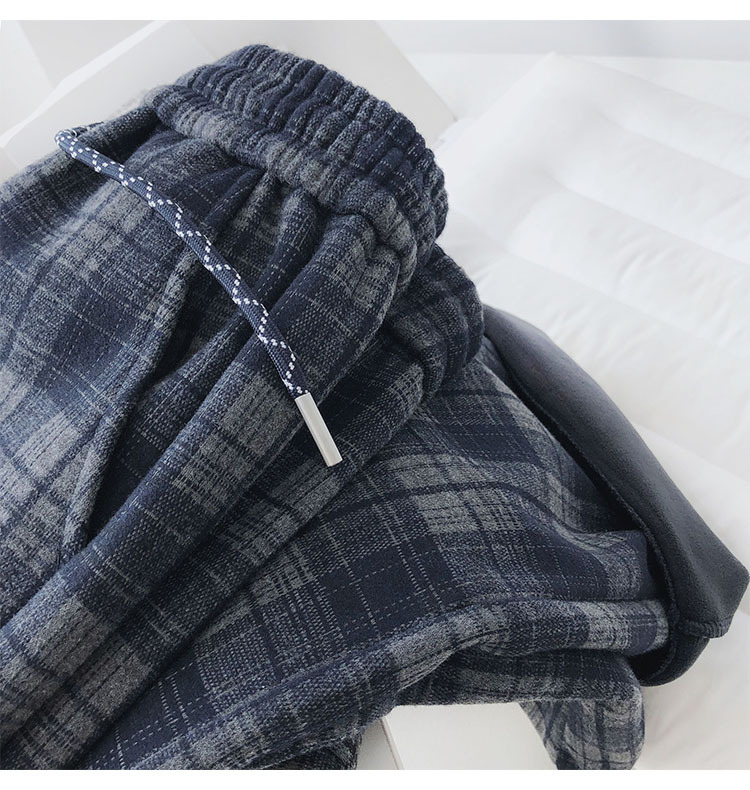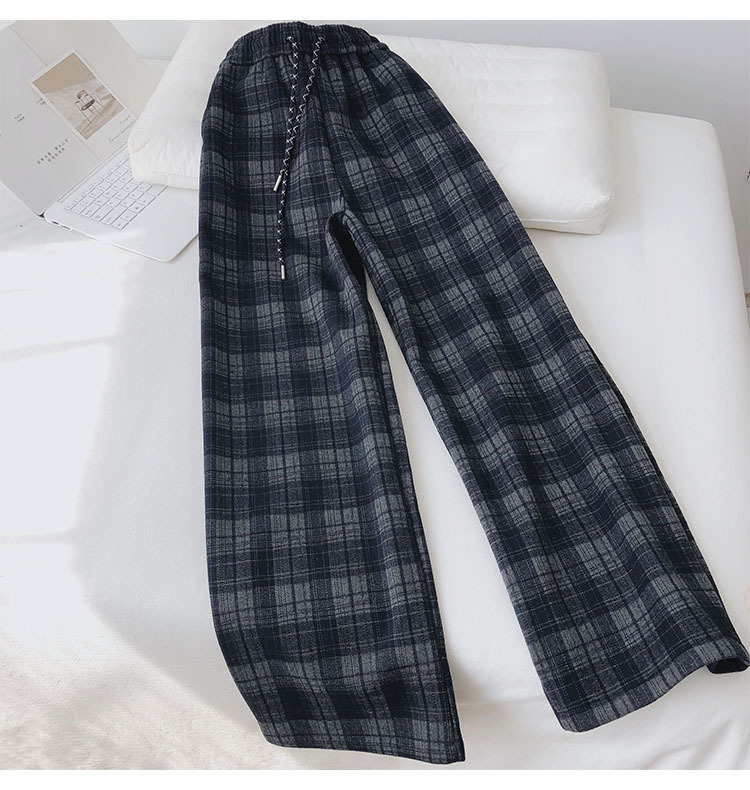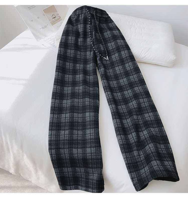 丁摩 敲保暖加绒加厚格子直筒阔腿裤女秋冬高腰宽松垂感拖地裤5ZF-1853