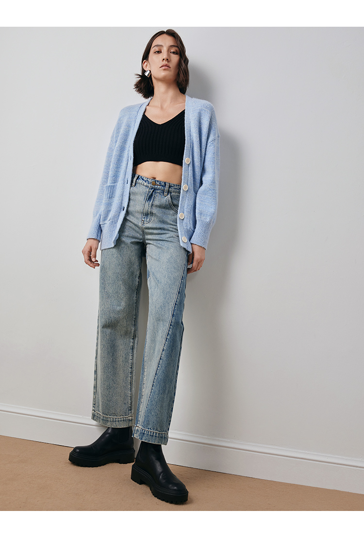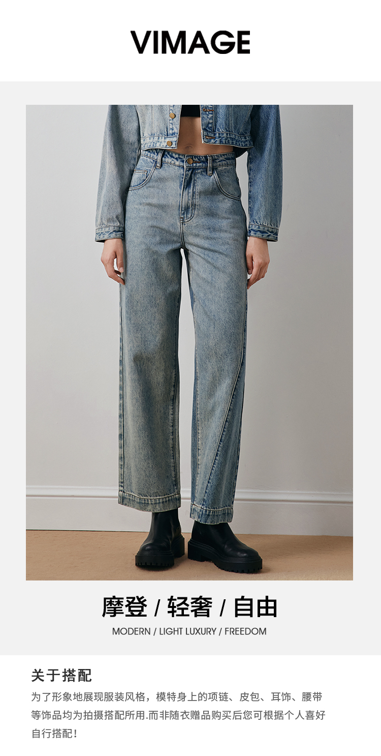 VIMAGE纬漫纪冬季新款时尚通勤休闲显瘦高腰百搭牛仔裤V2005618