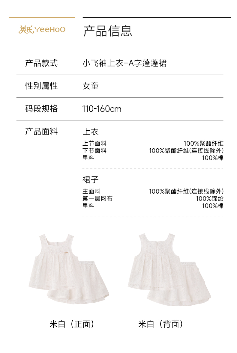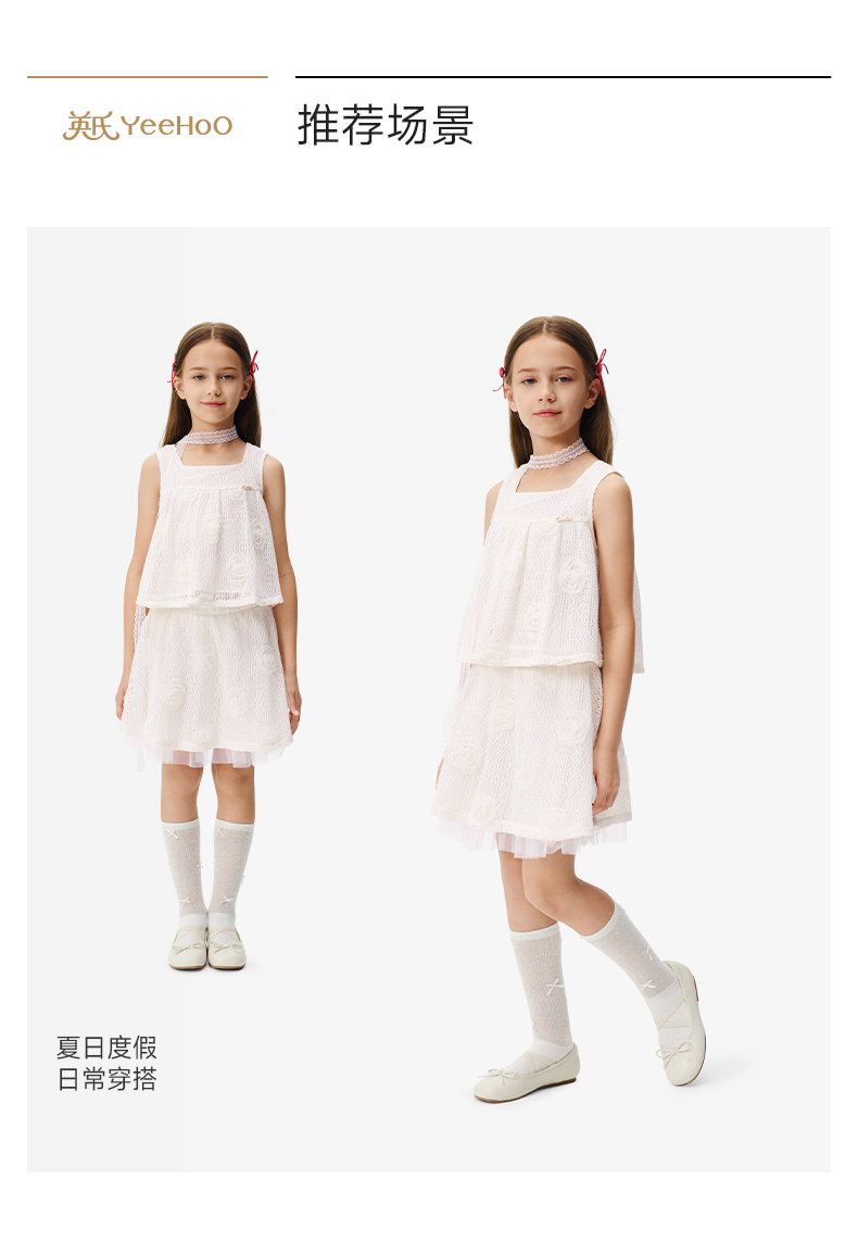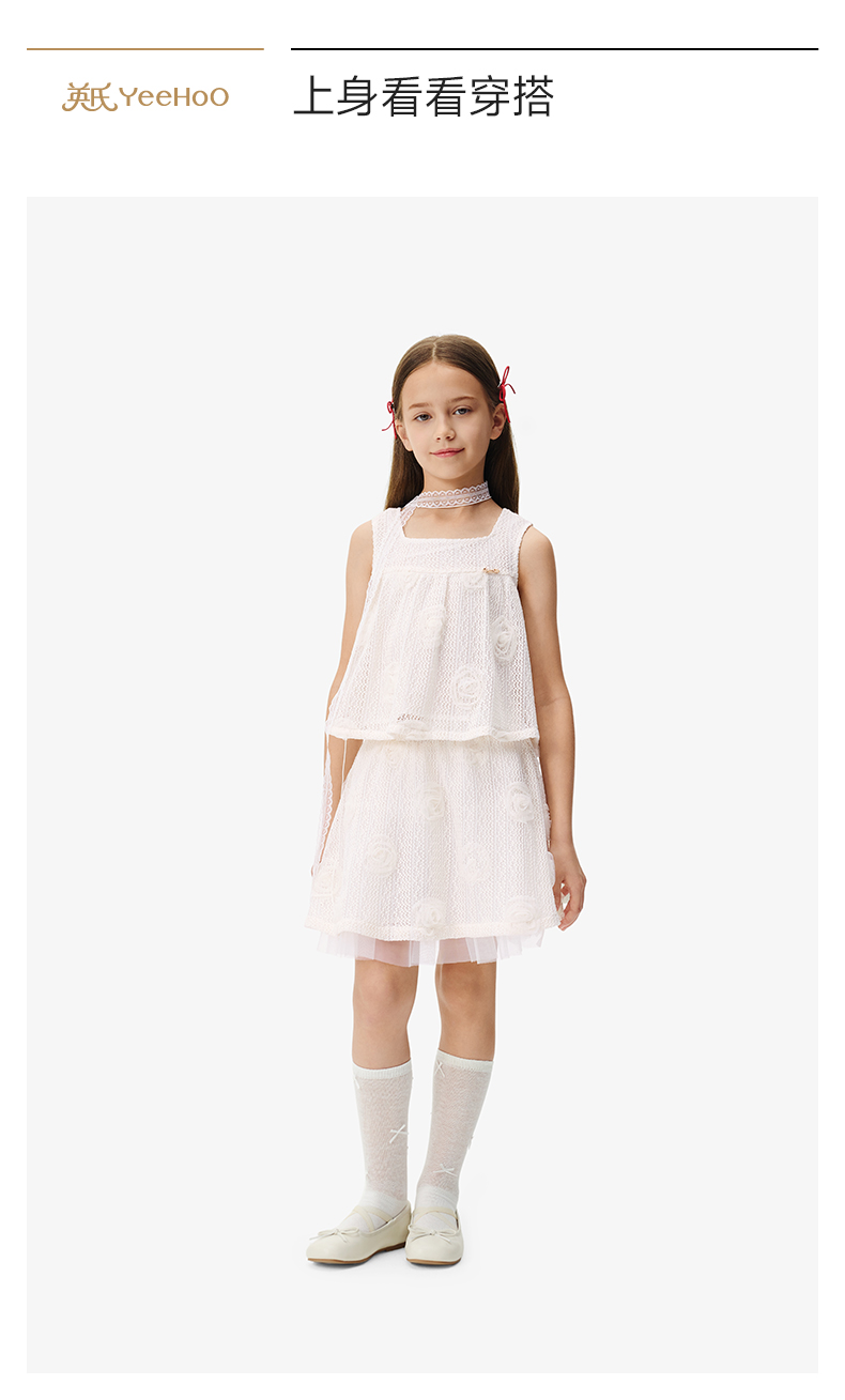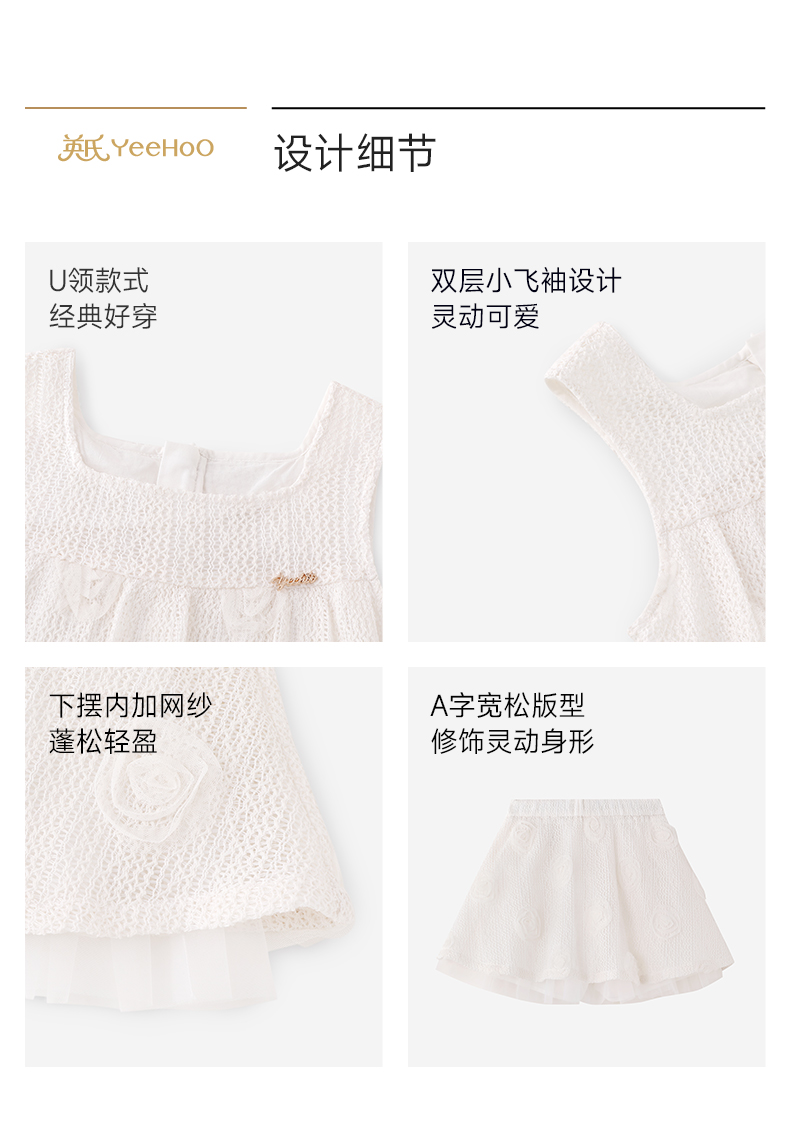 英氏儿童套装夏季女童时尚背心半裙组合套装百搭休闲镂空透气套装