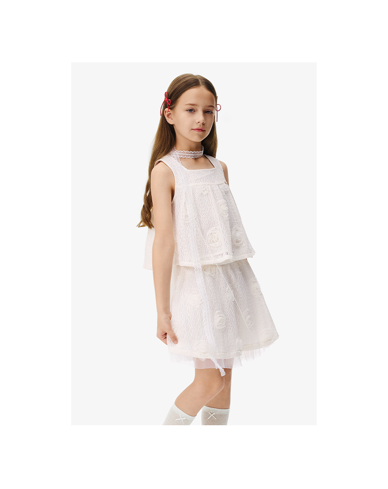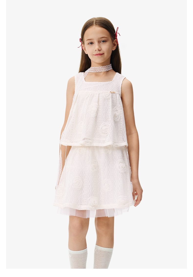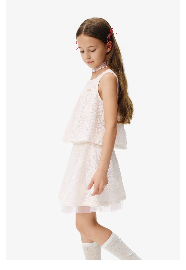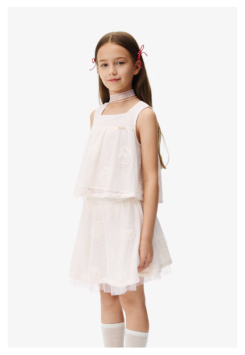 英氏儿童套装夏季女童时尚背心半裙组合套装百搭休闲镂空透气套装