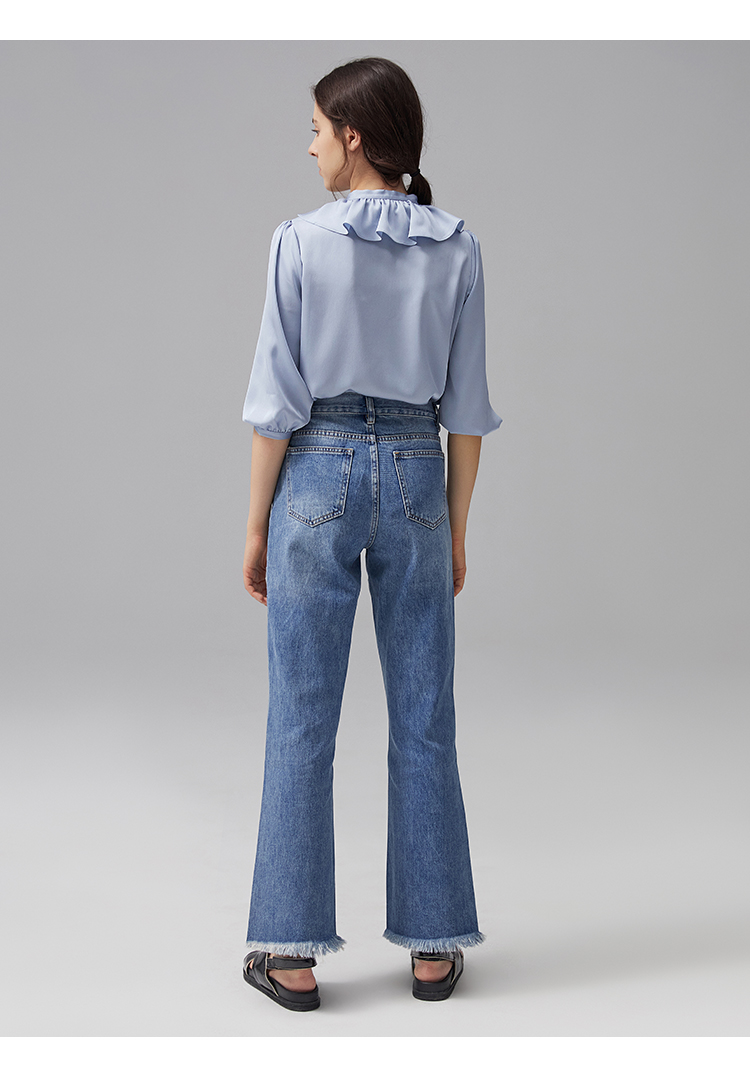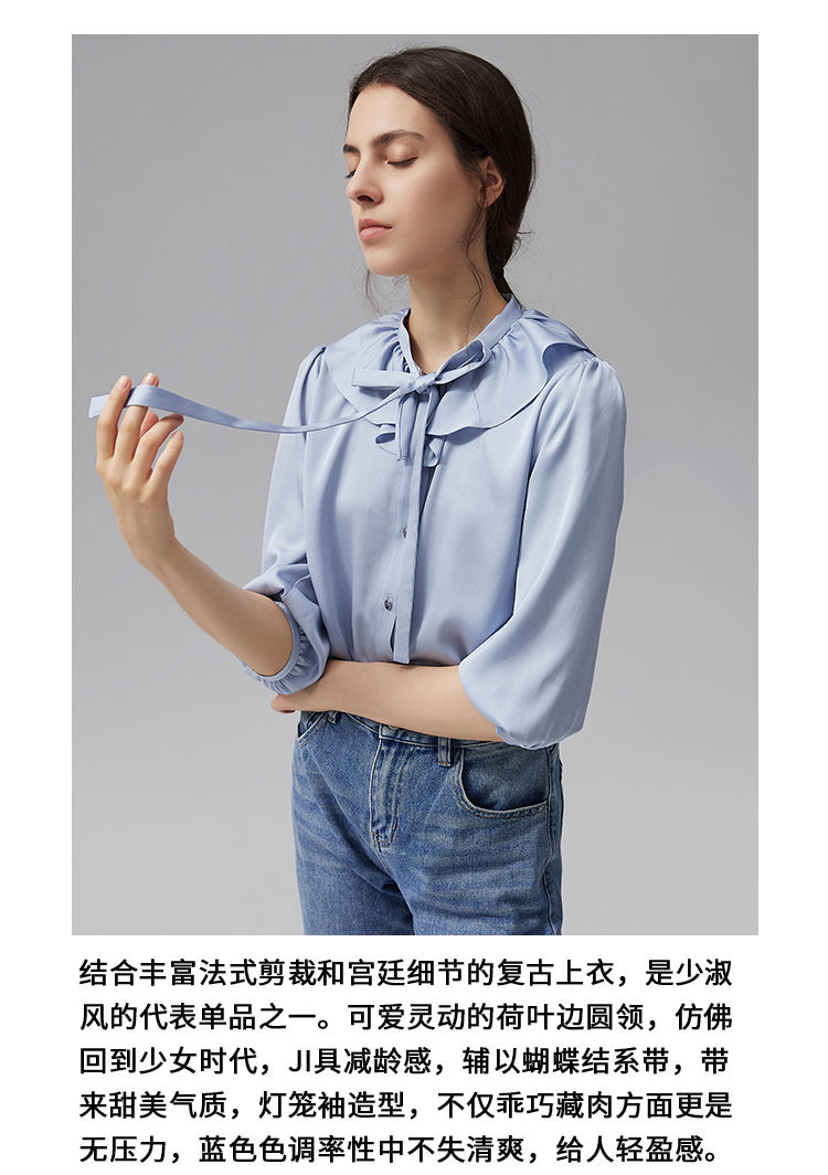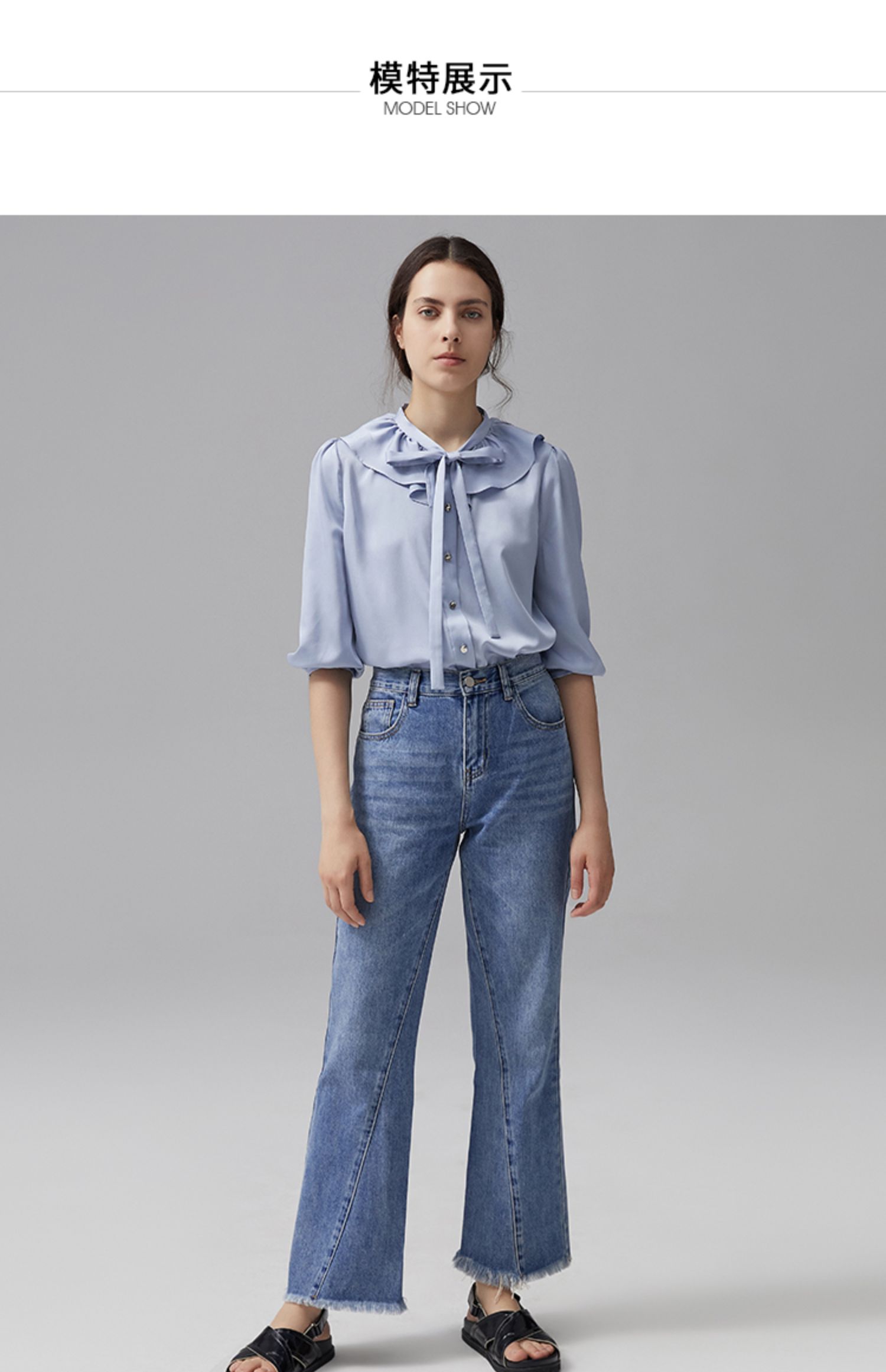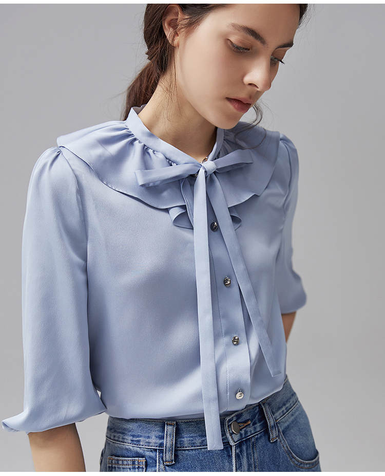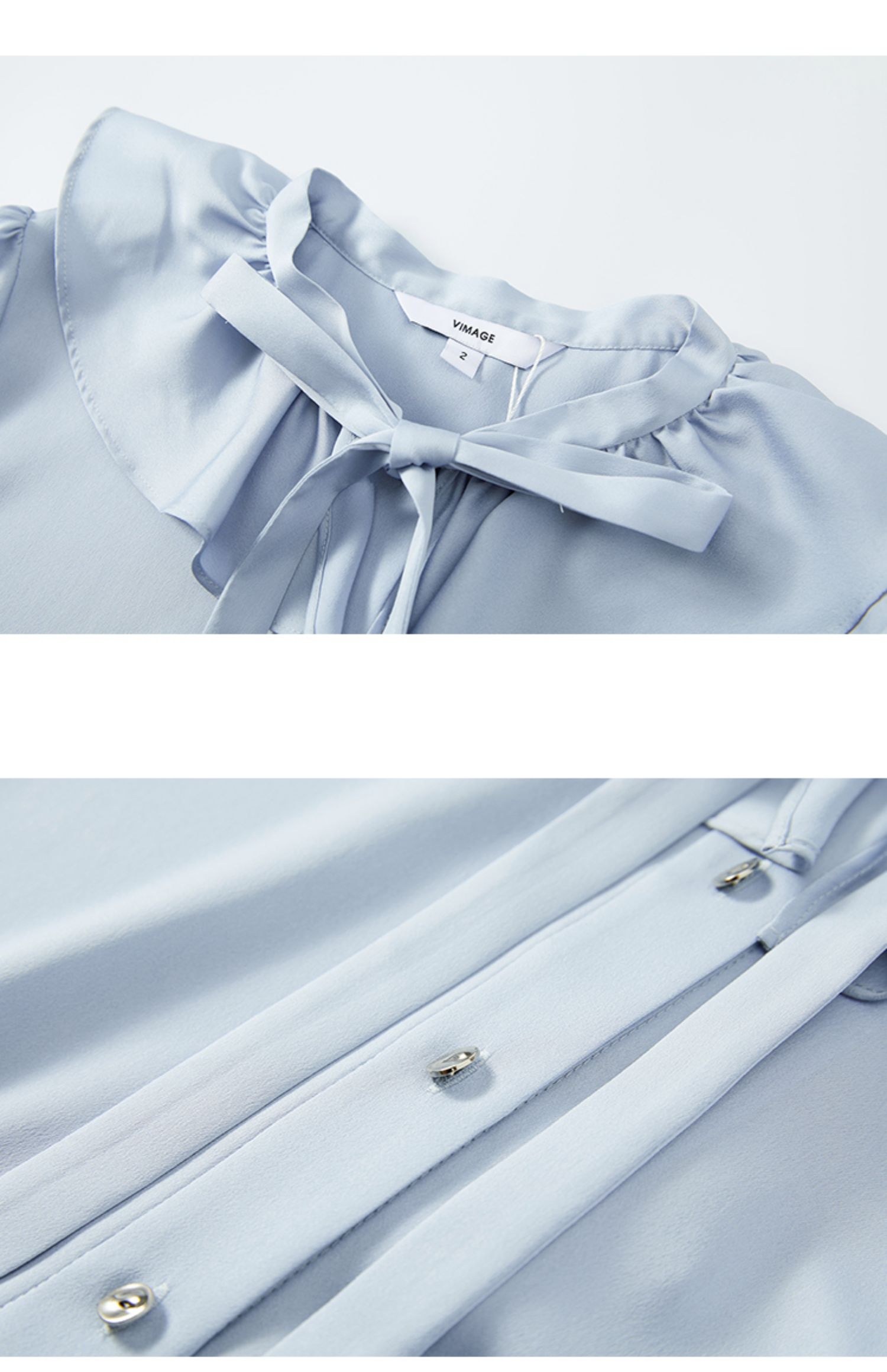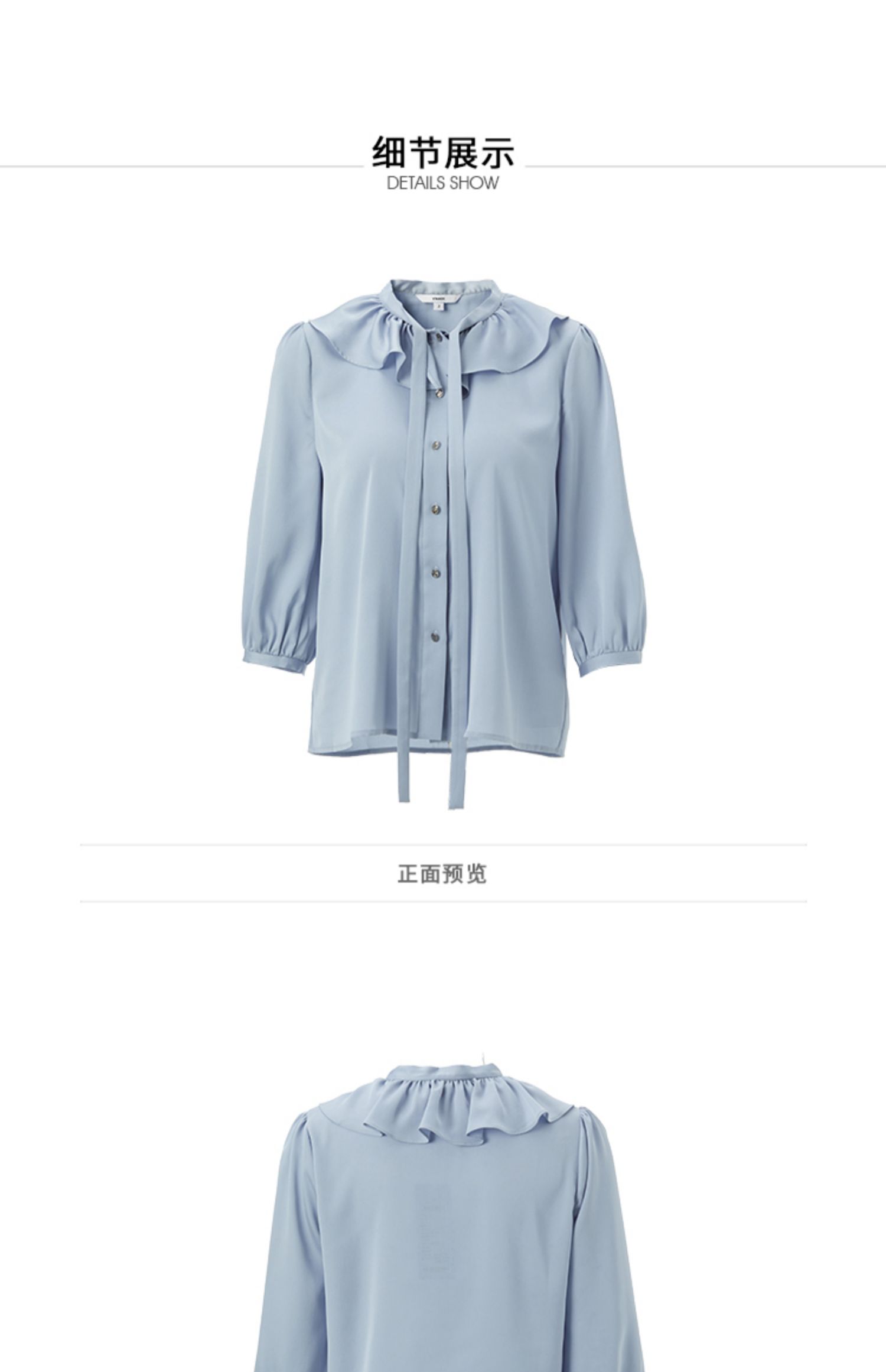 VIMAGE纬漫纪新款娃娃领纯色舒适五分袖衬衣VC2109216