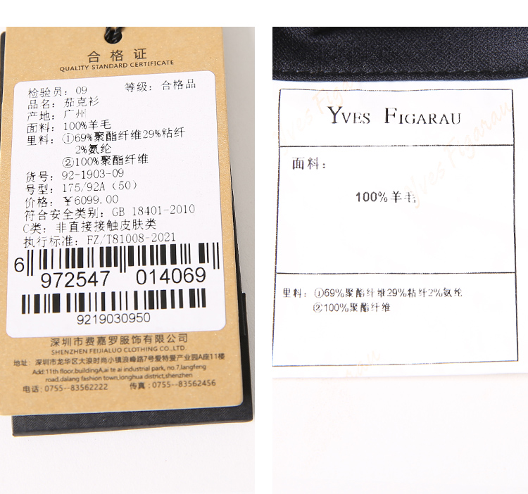 YvesFigarau伊夫·费嘉罗100%羊毛茄克921903