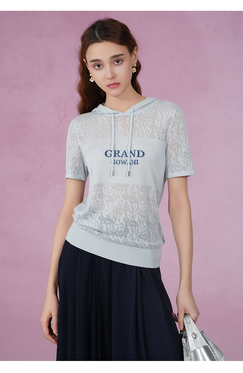 乔万尼针织衫女新款短袖连帽衫EM2M912
