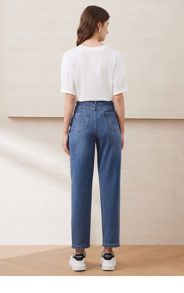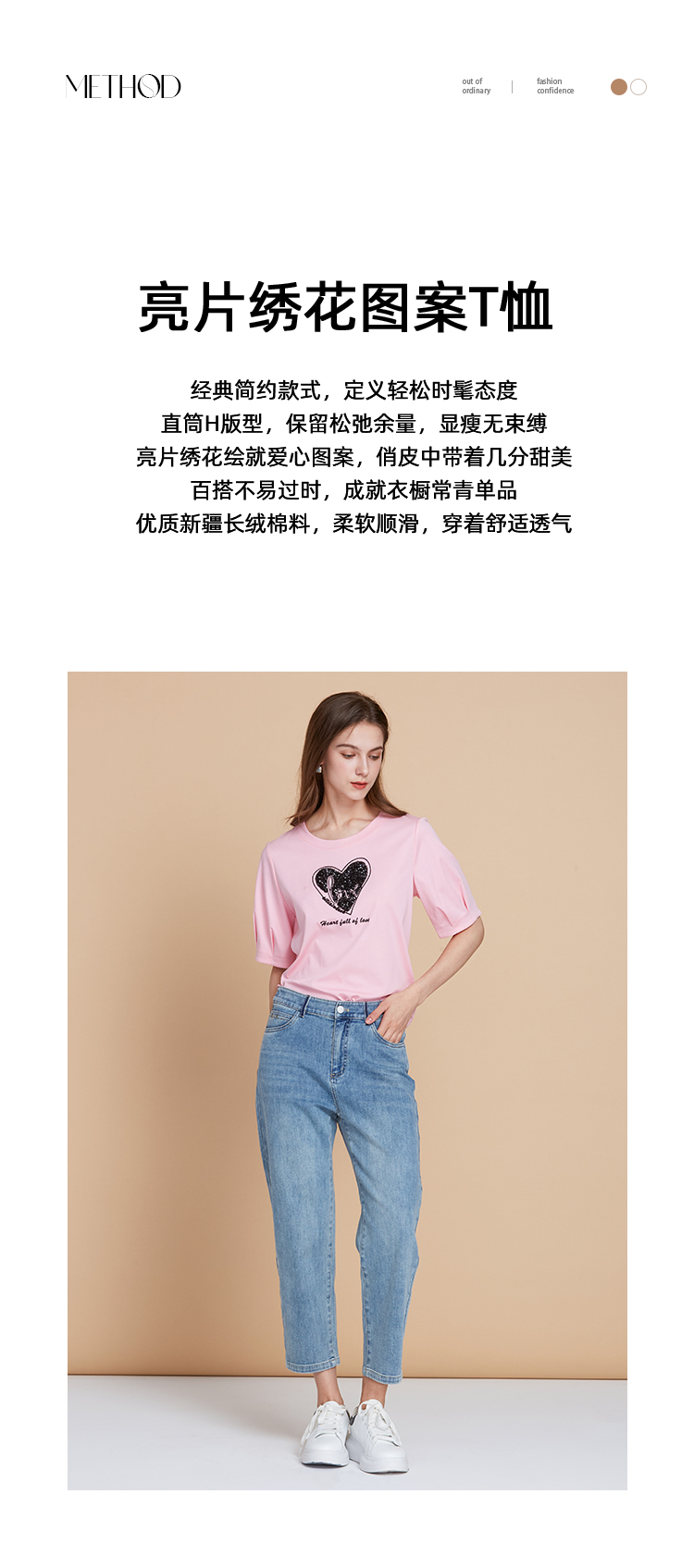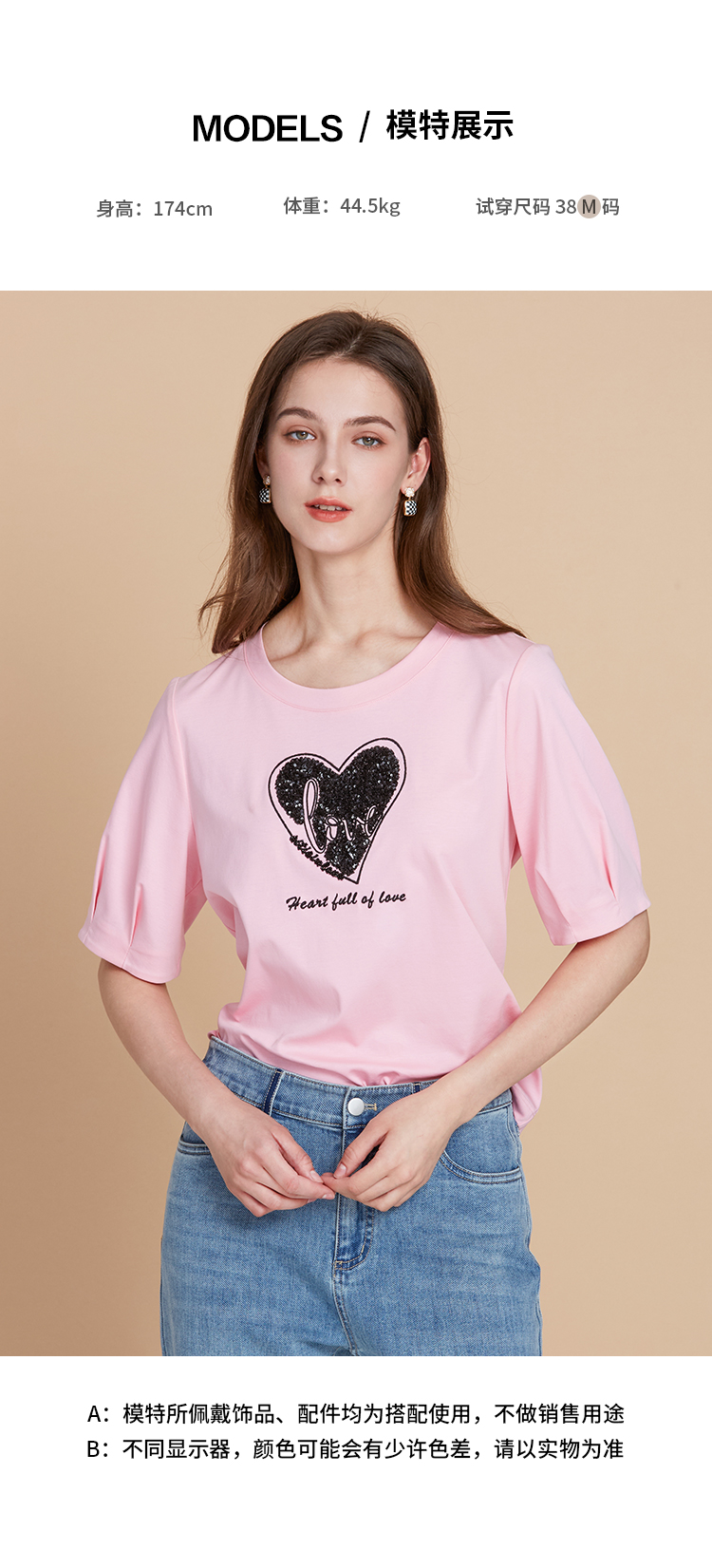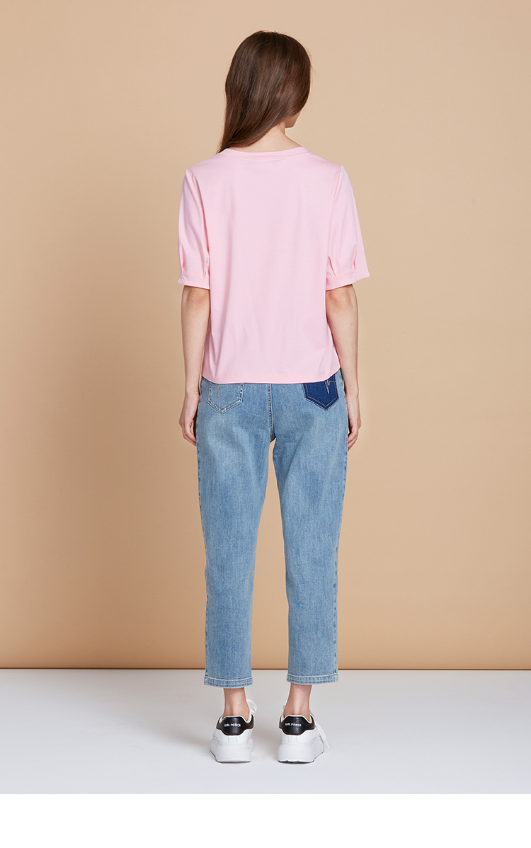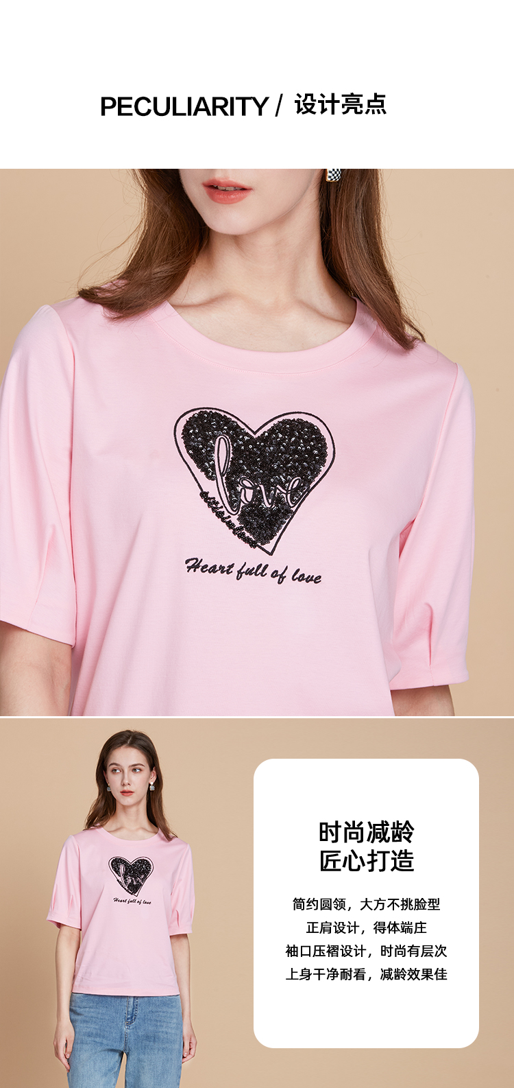 EITIE爱特爱夏季新款圆领亮片刺绣印花短袖纯棉T恤上衣女7702403