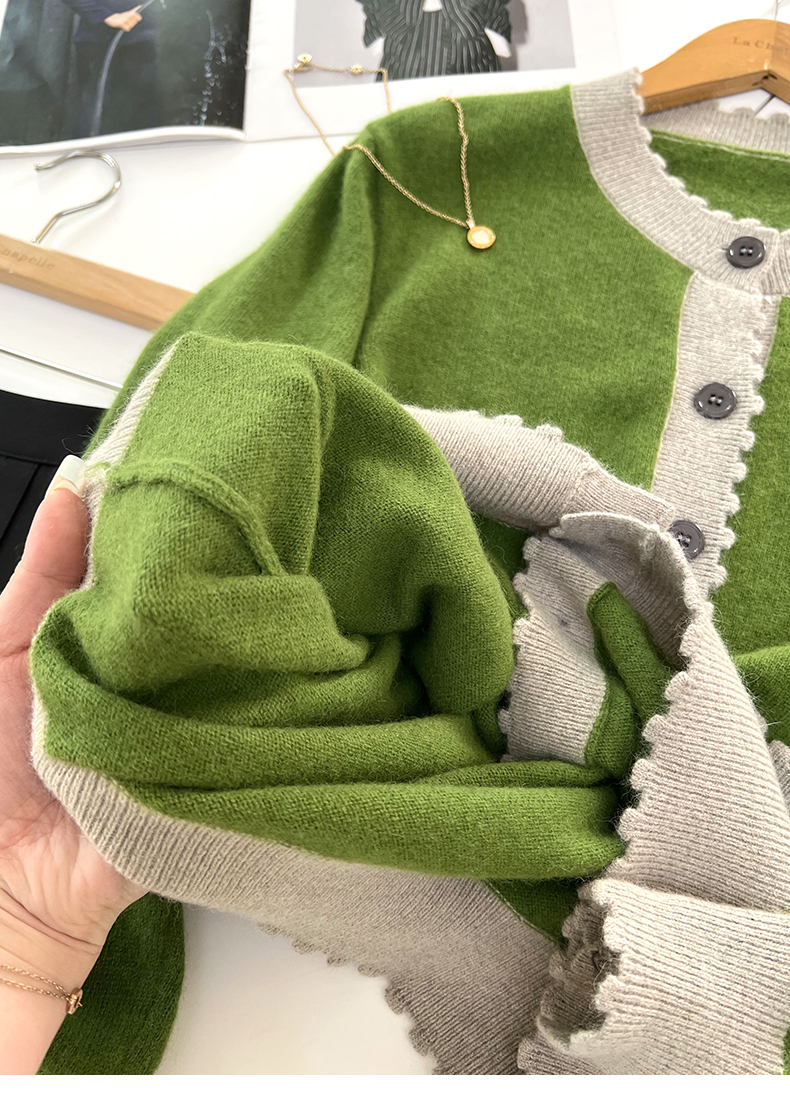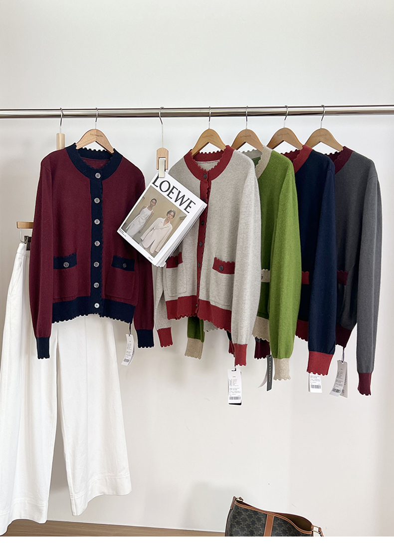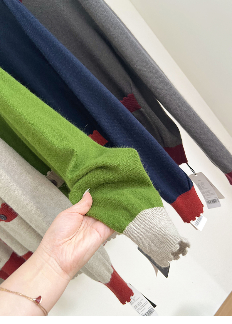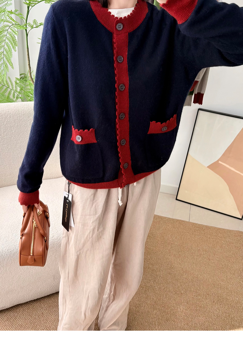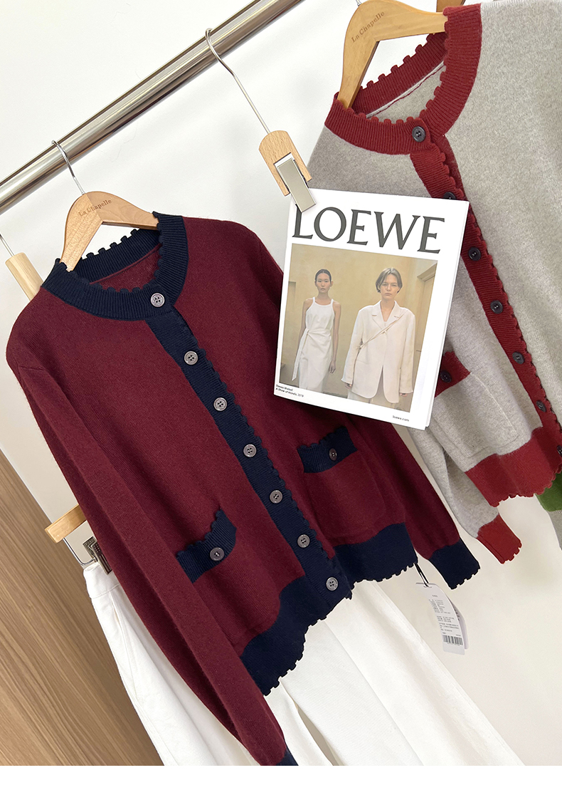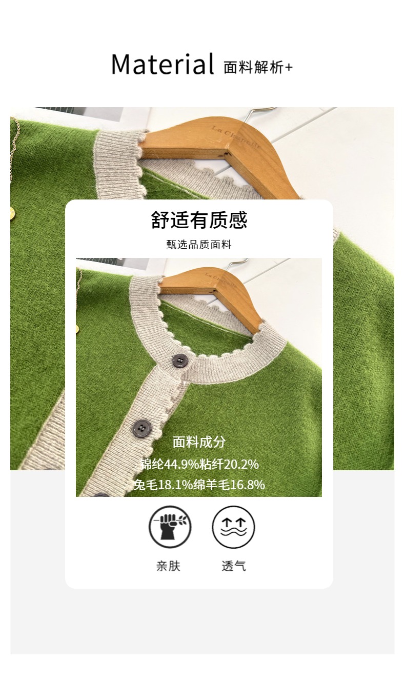会员福利【兔毛+绵羊毛】拉夏贝尔/La Chapelle高级撞色双口袋排扣针织开衫慵懒软糯气质感