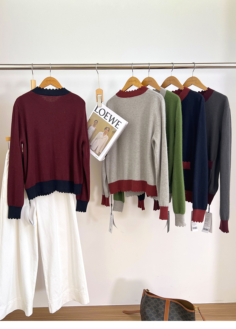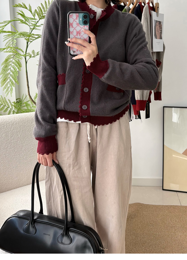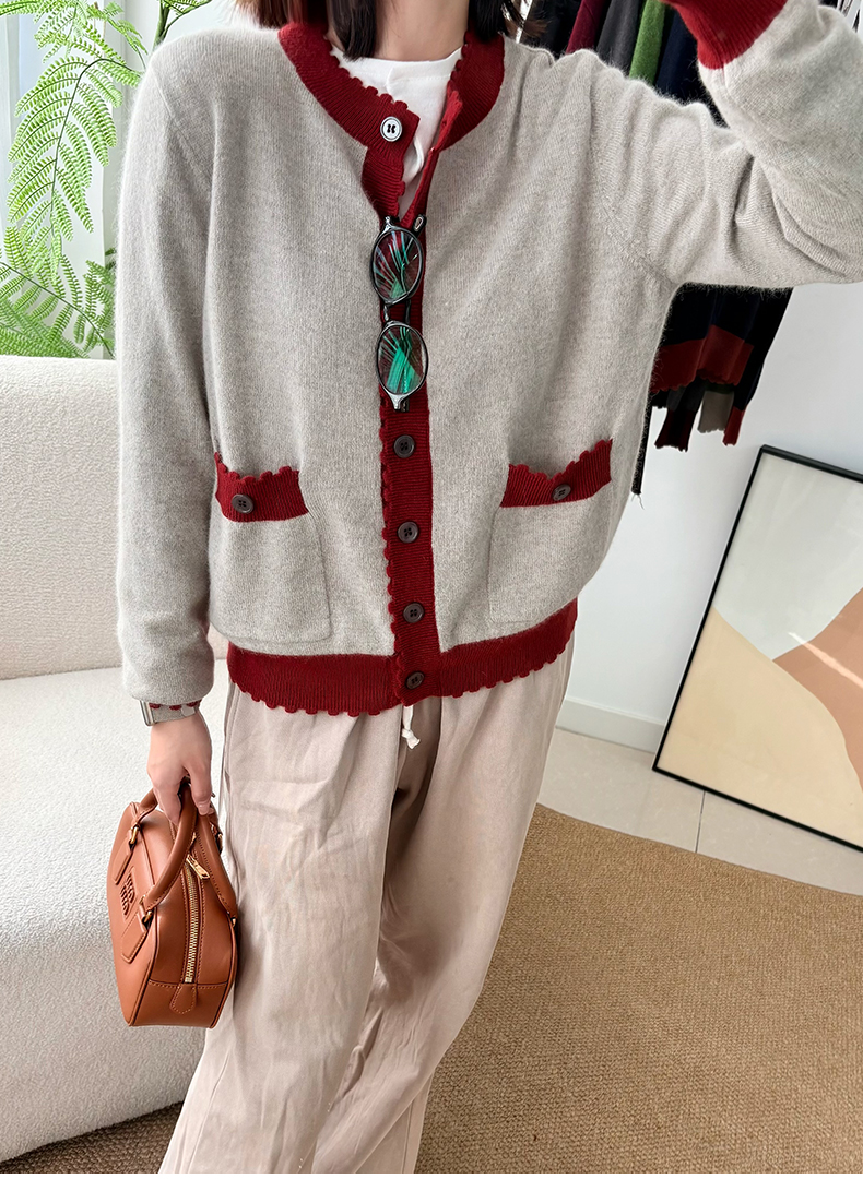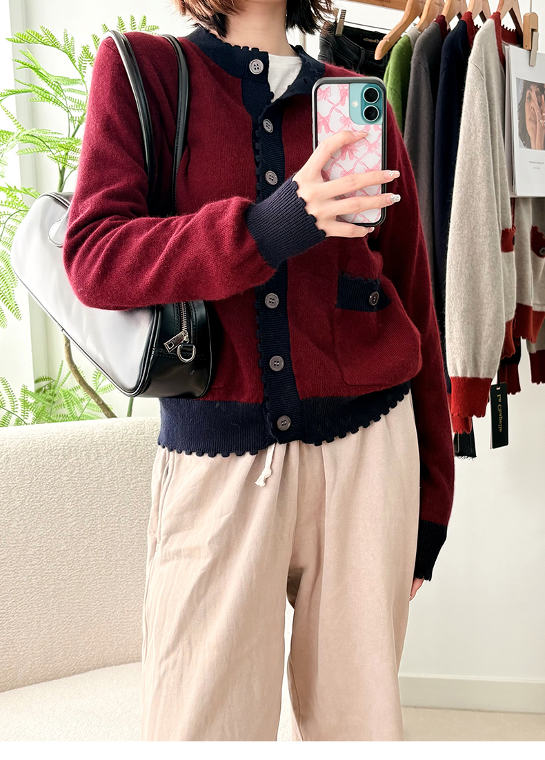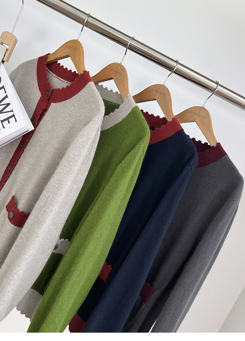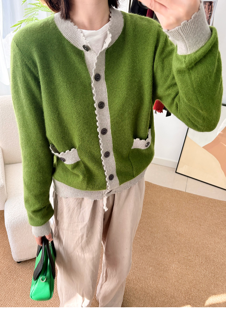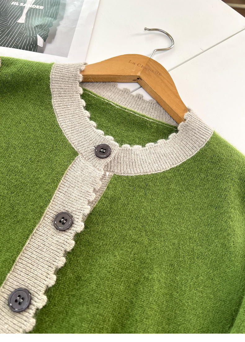 会员福利【兔毛+绵羊毛】拉夏贝尔/La Chapelle高级撞色双口袋排扣针织开衫慵懒软糯气质感