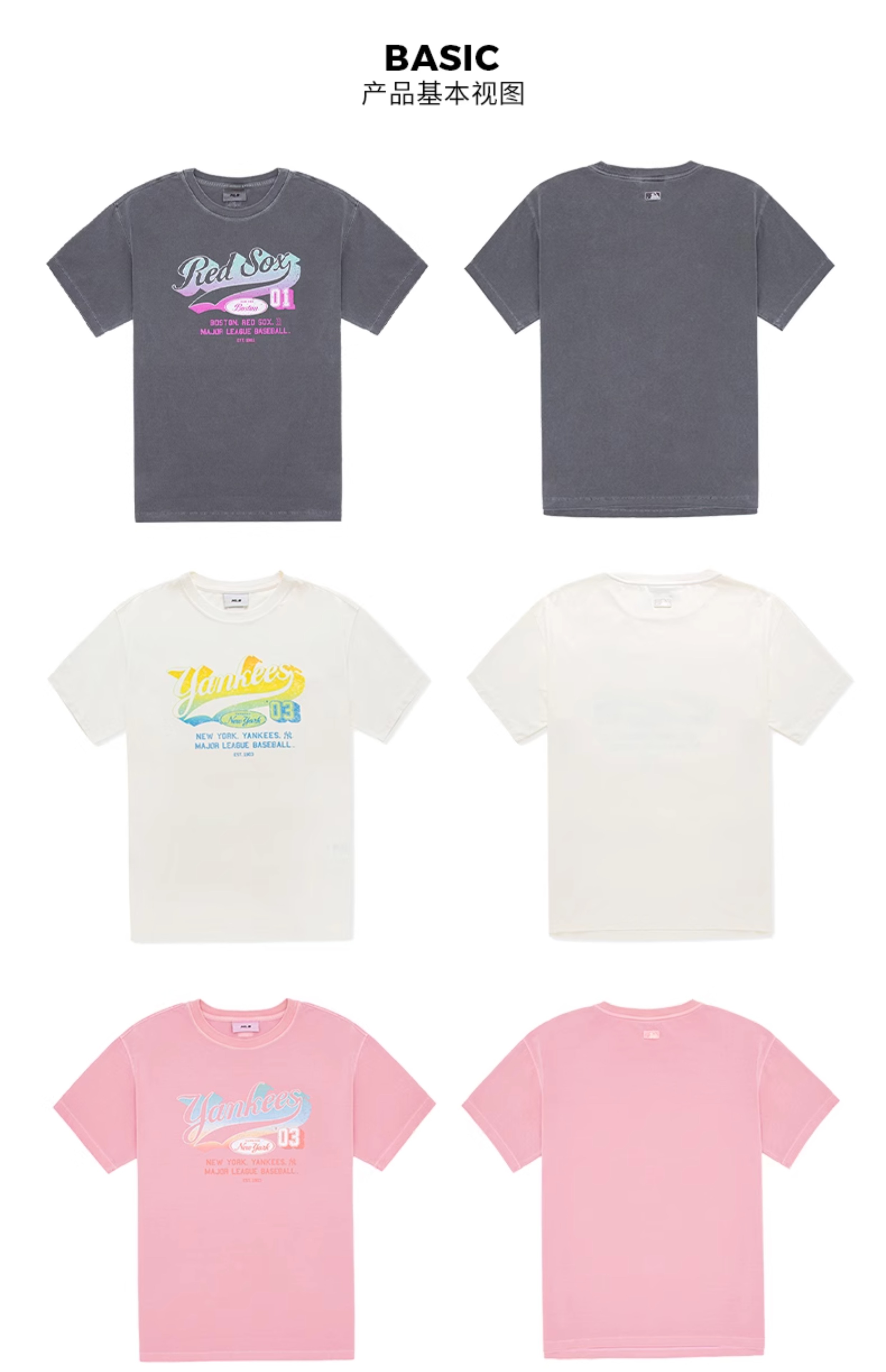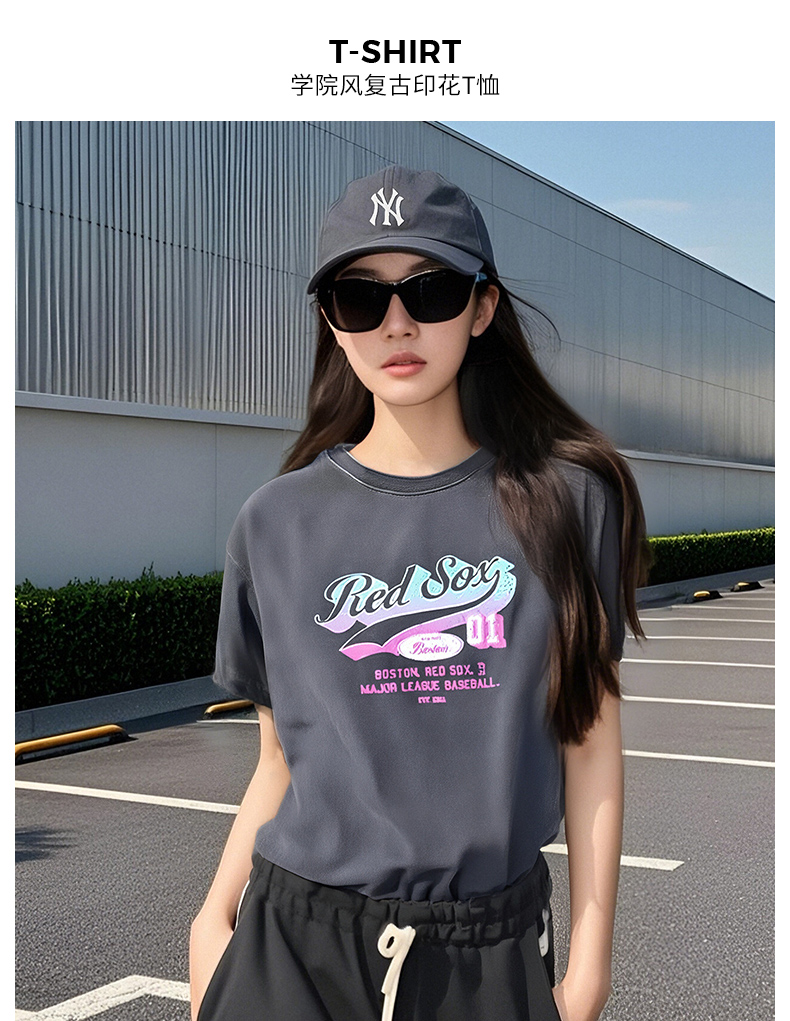 MLB女款时尚复古水洗印花运动休闲T恤短袖25春夏新款T 3FTSV1053