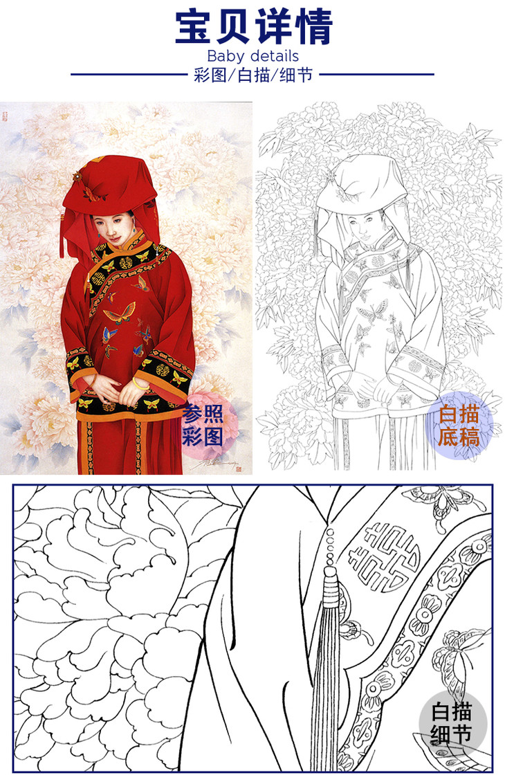 崔景哲竖幅工笔现代仕女人物白描底稿-B070
