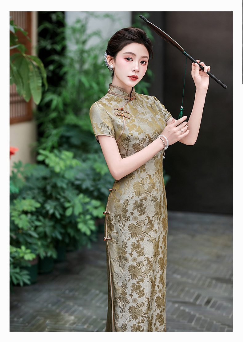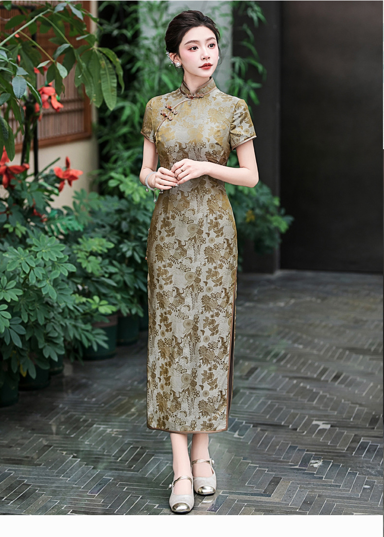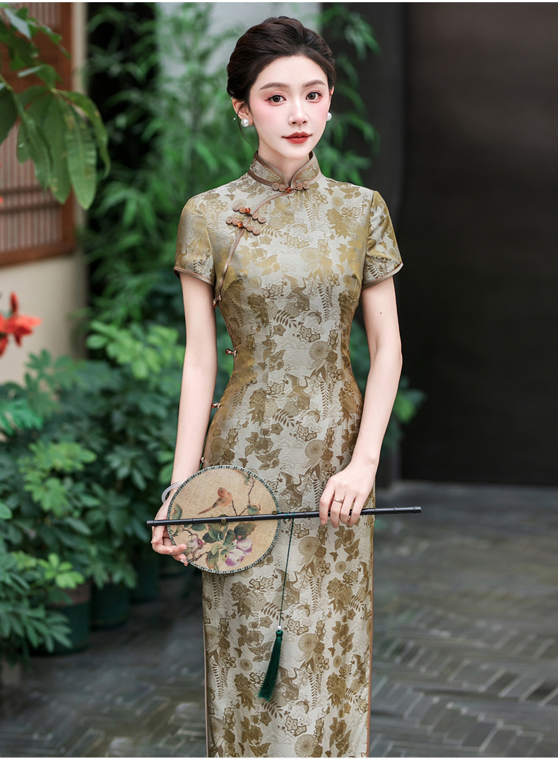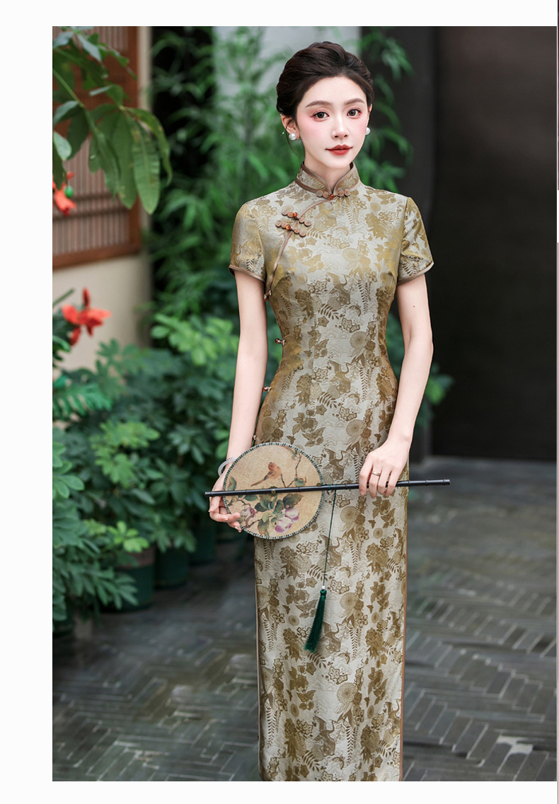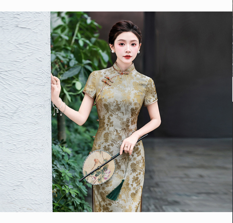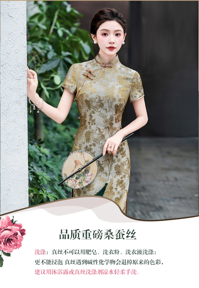 WX-2025春季新款真丝旗袍中式桑蚕丝连衣裙手工缝制送考宴席日常可穿