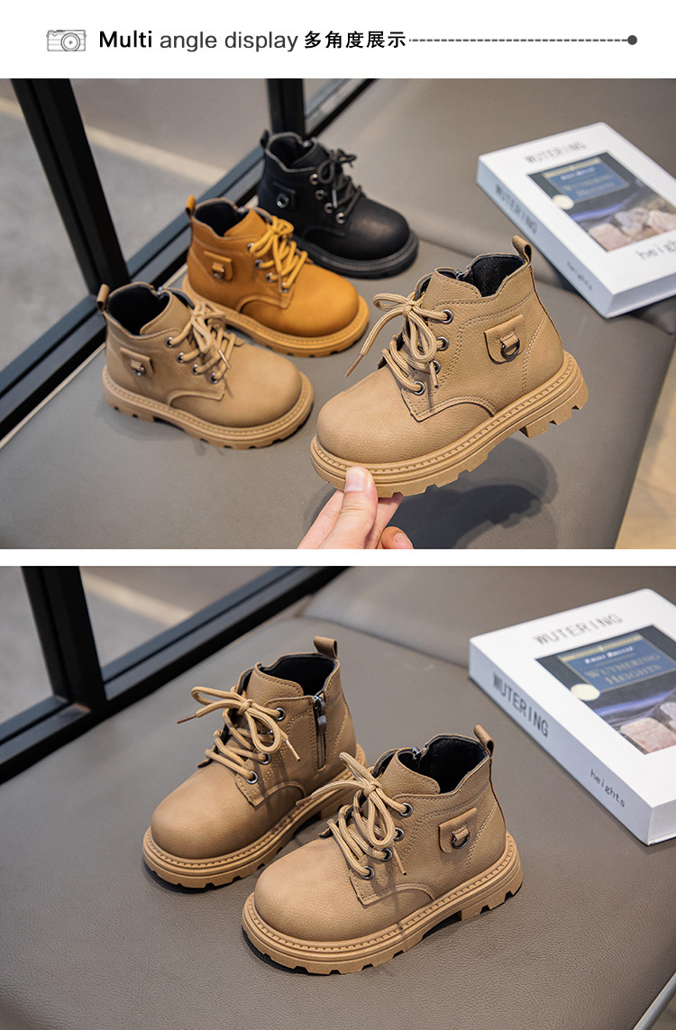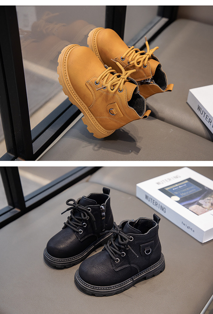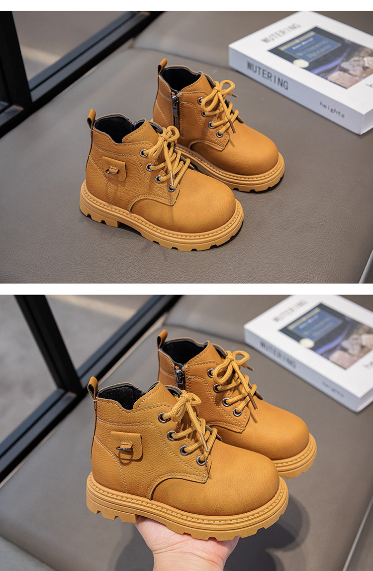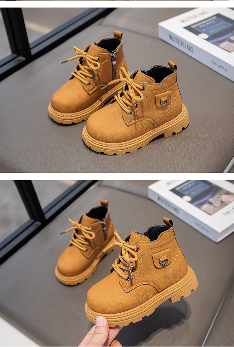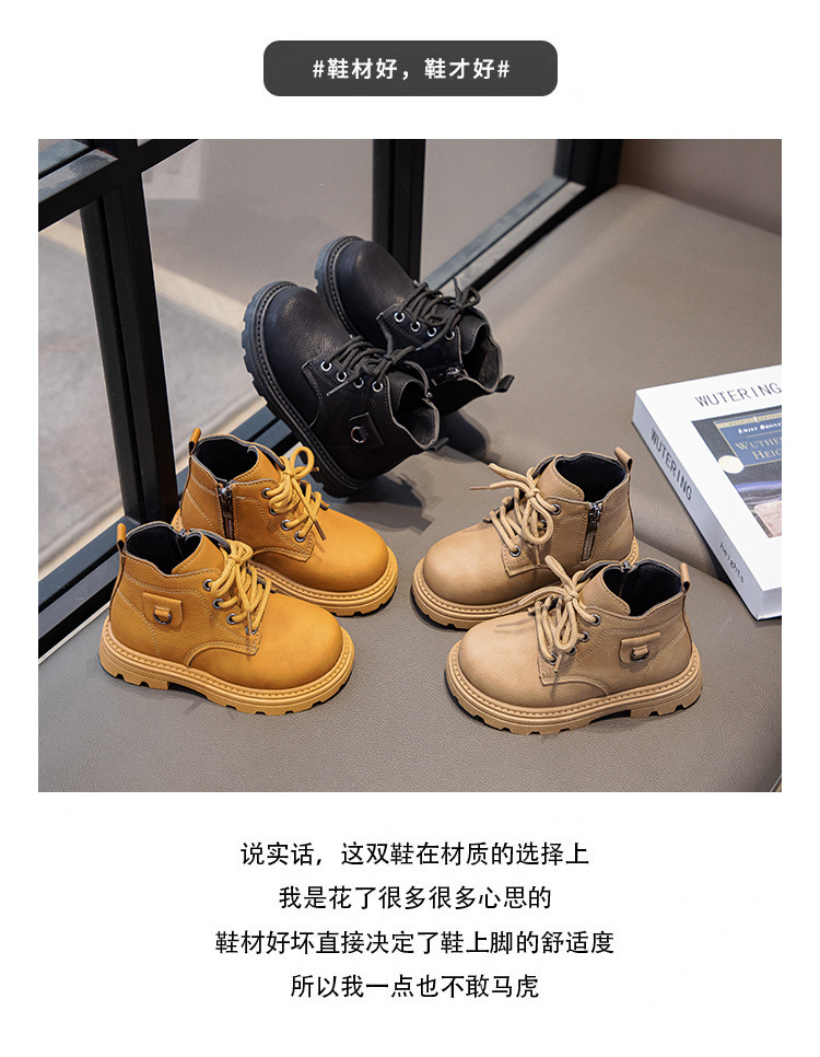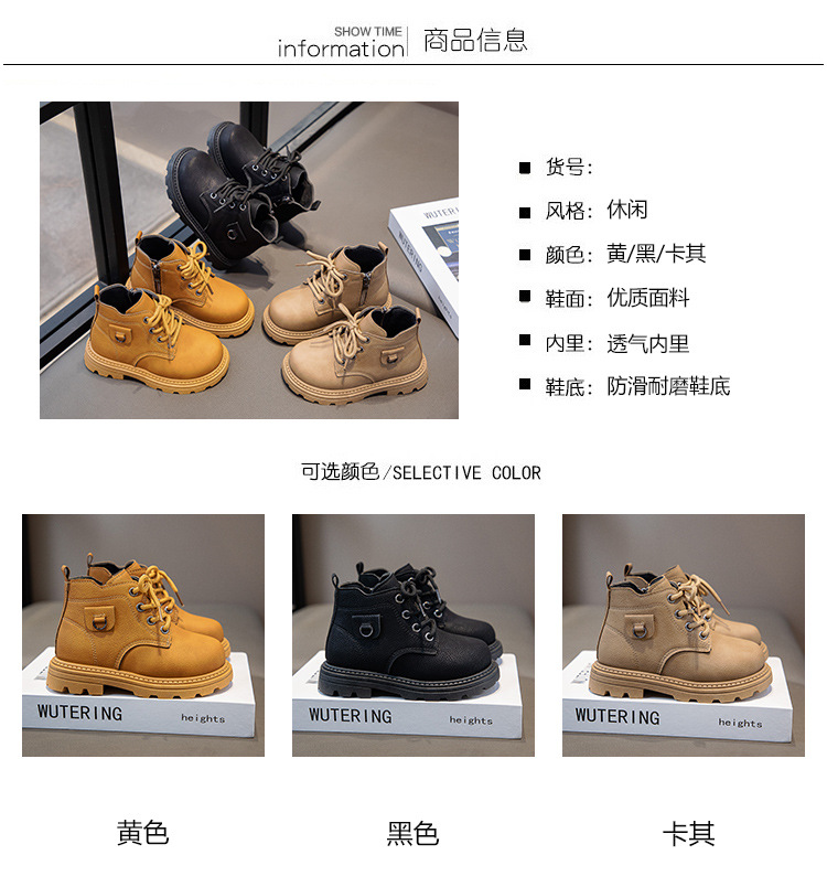 【酷炫百搭,时尚英伦风,骑士靴小黄靴~】儿童马丁靴秋冬新款 短靴英伦风时尚 女童百搭骑士靴 男童小黄靴-QQ