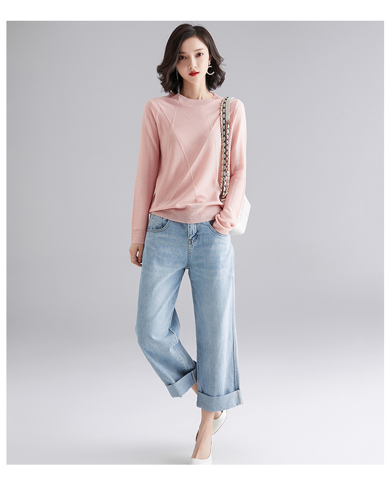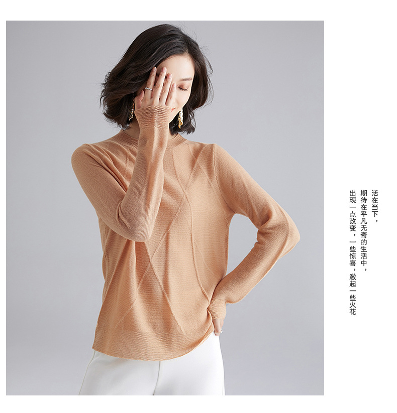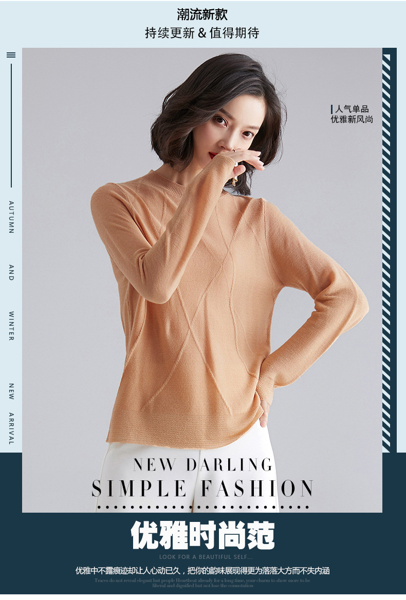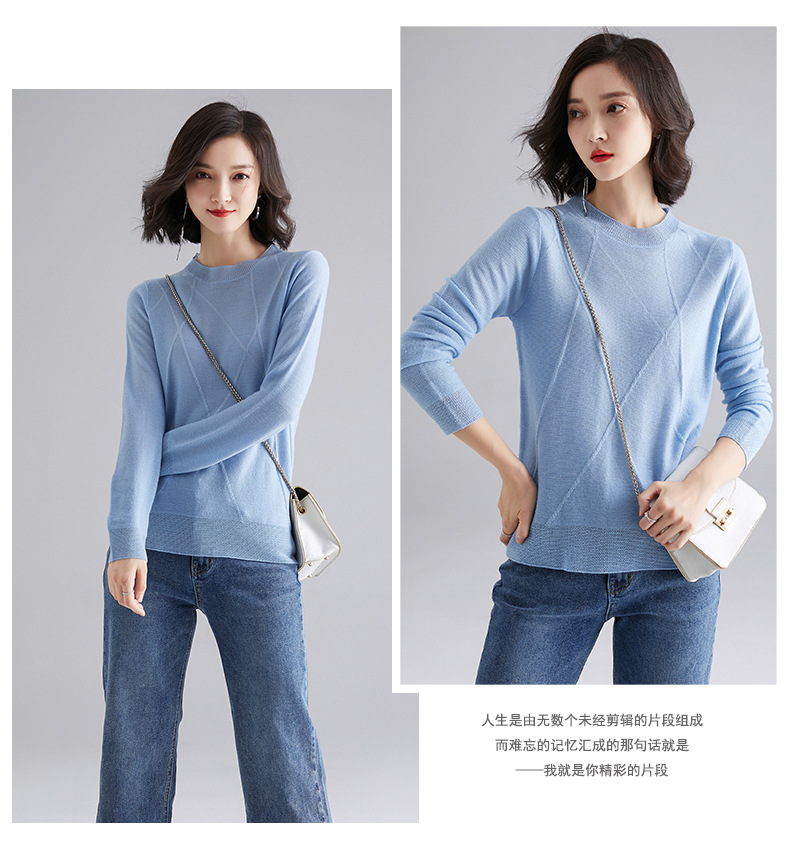 XDE-5525半高领秋冬新款条纹短款韩版宽松超细羊毛衫女毛衣