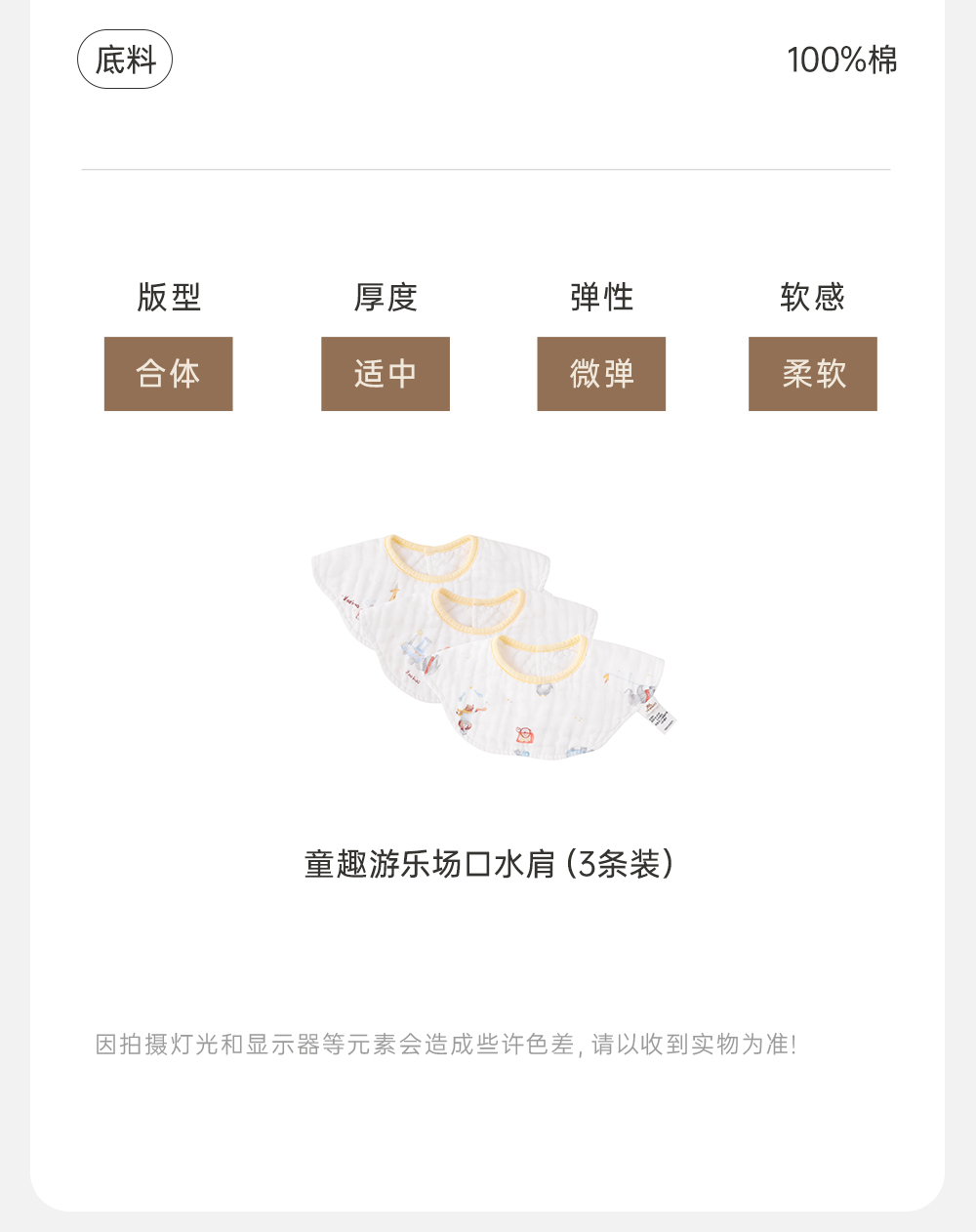 【商场同款】英氏婴儿口水巾纯棉抗菌新生儿围脖新款3条装