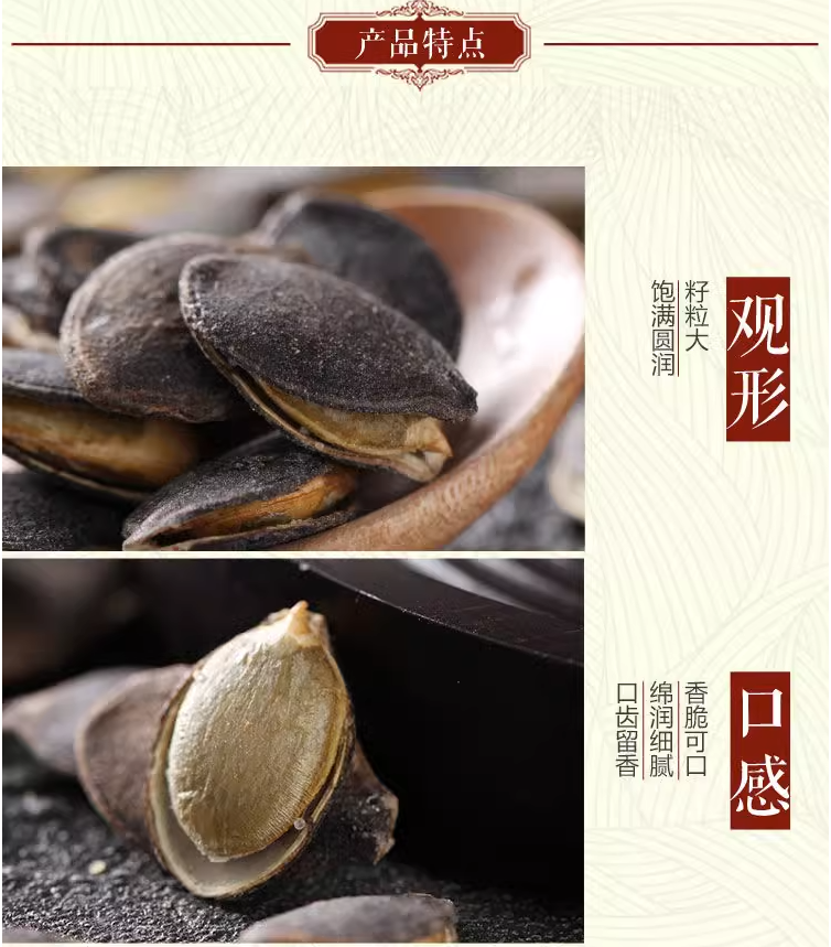 【蜜饯精选】黑金刚南瓜子 颗颗粒大饱满 稀少品种 酥香可口有营养 越嗑越有味