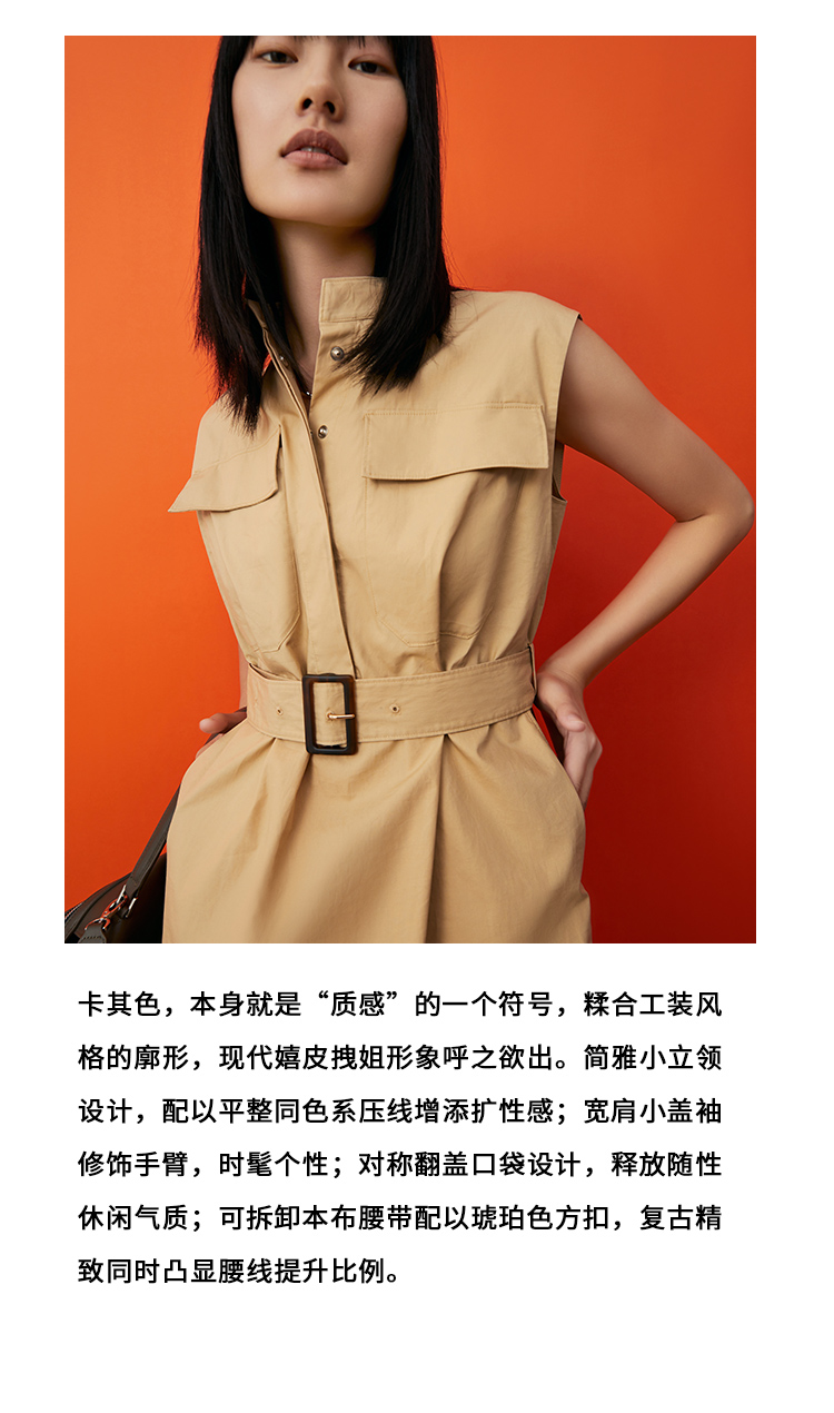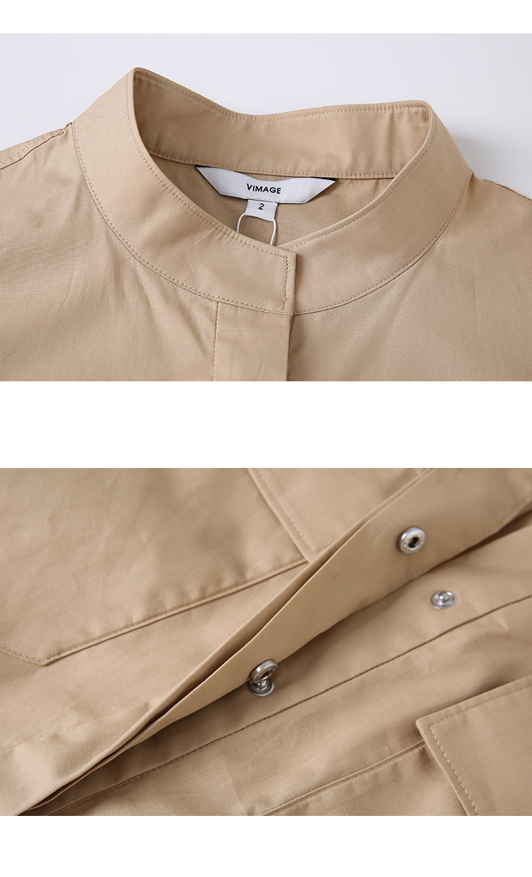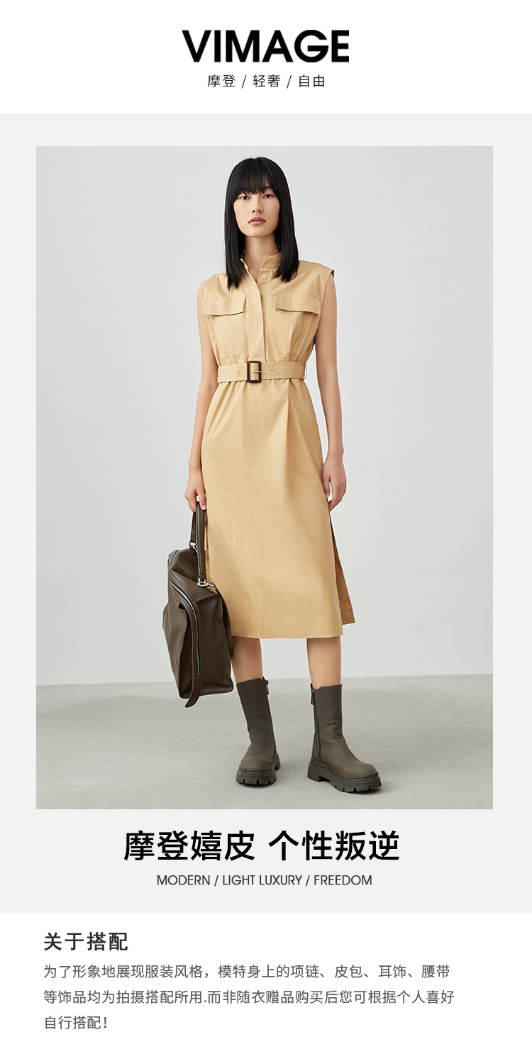 VIMAGE/纬漫纪夏季新款干练中性束腰V领显瘦飞袖连衣裙V1707337