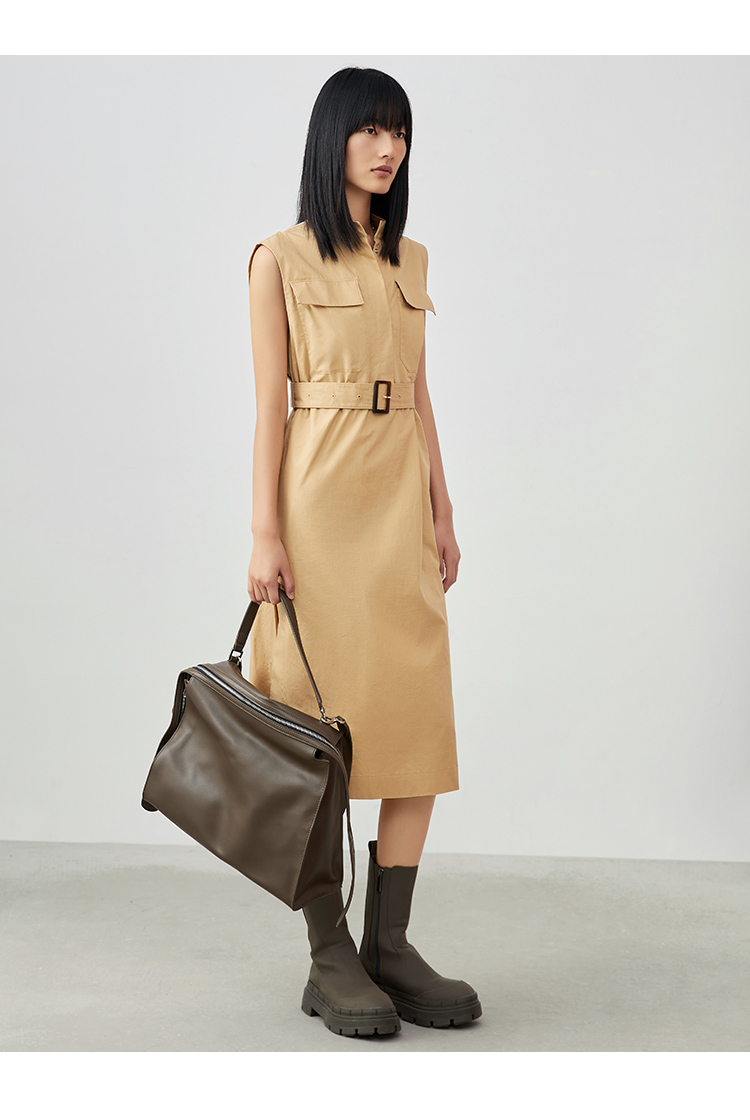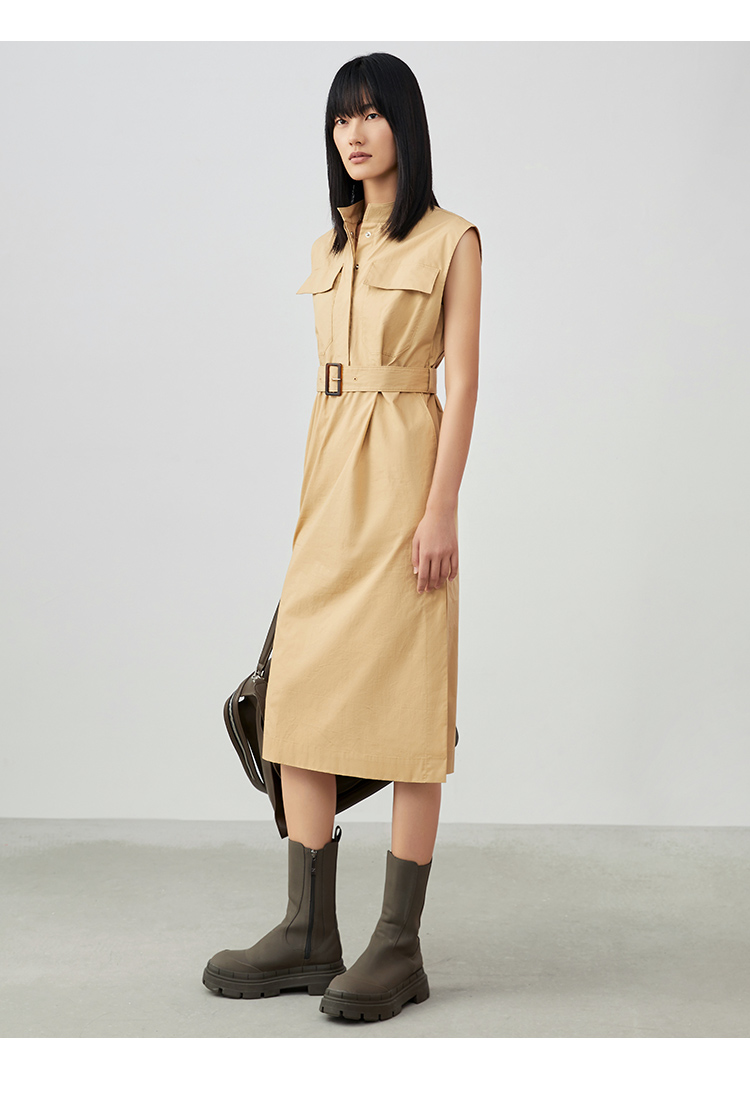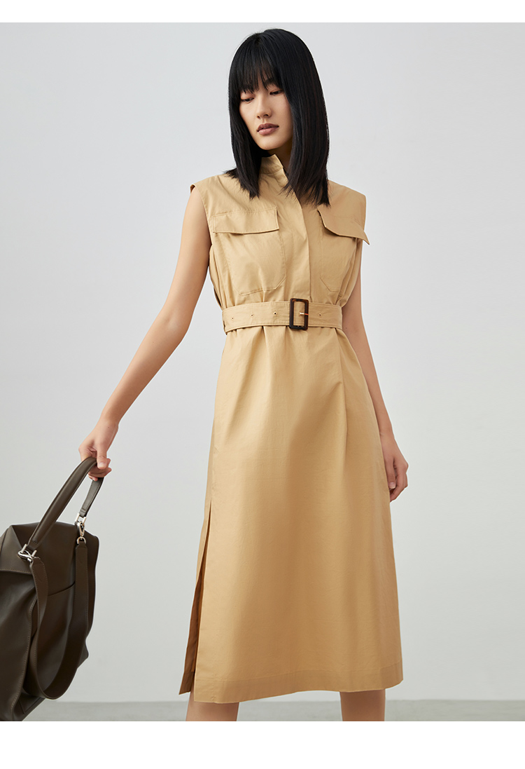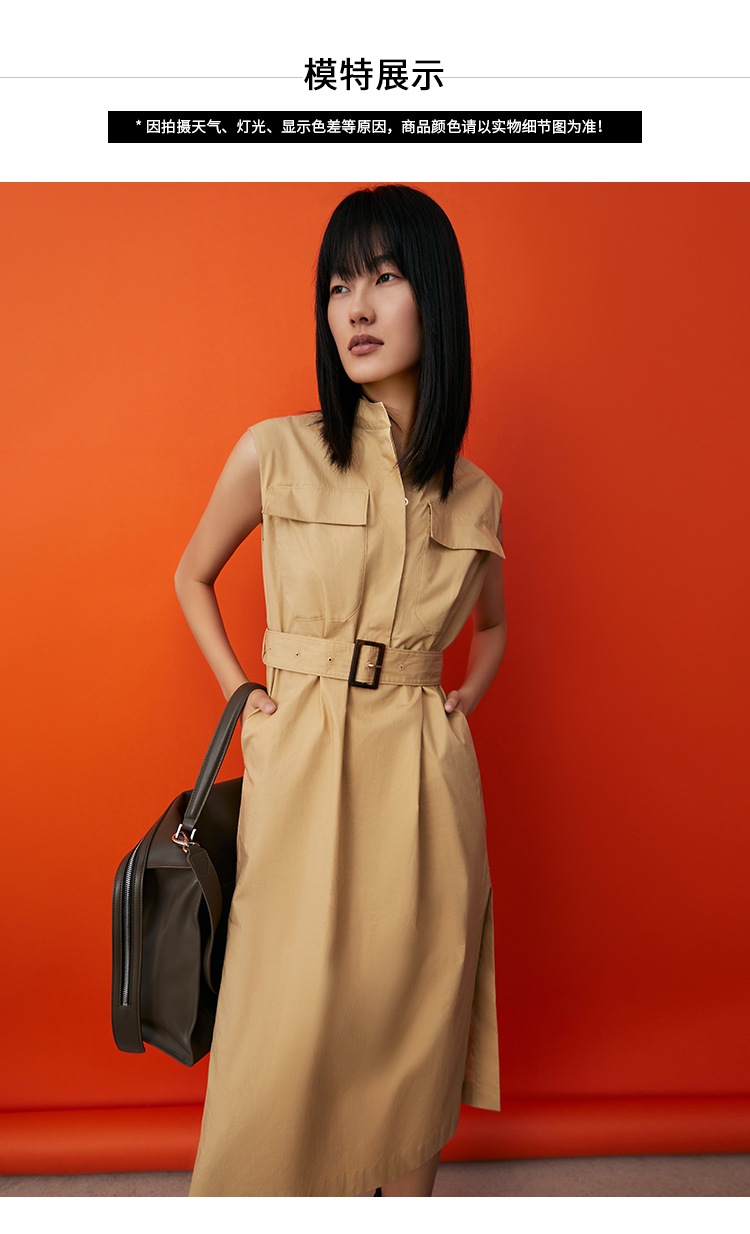 VIMAGE/纬漫纪夏季新款干练中性束腰V领显瘦飞袖连衣裙V1707337