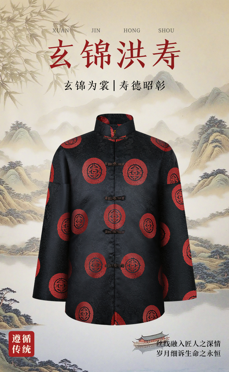 天禄-玄锦洪寿-男唐装-中号腰围3.8尺