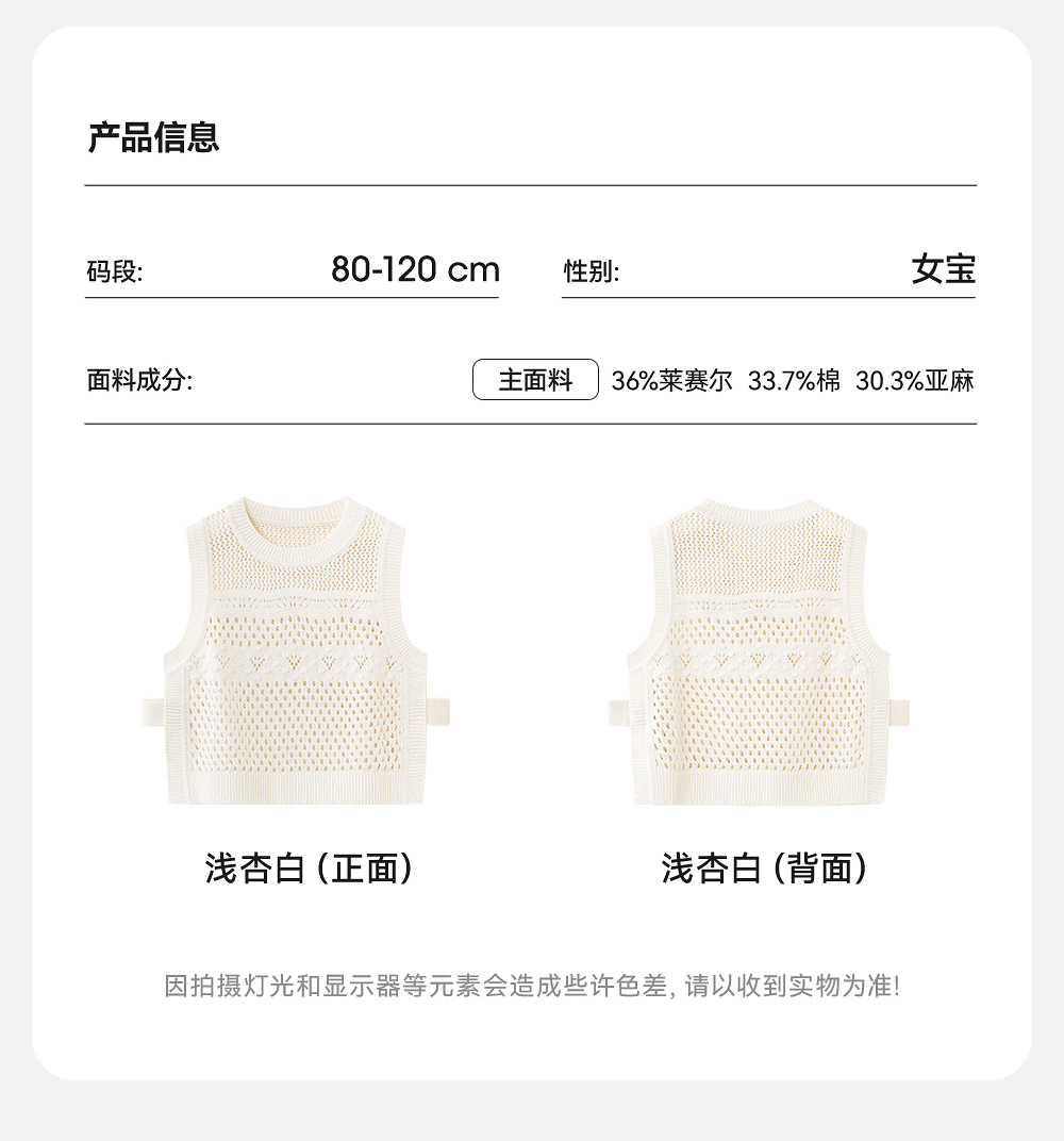【高定系列】英氏儿童背心夏季无袖透气休闲女童网孔背心2025新款