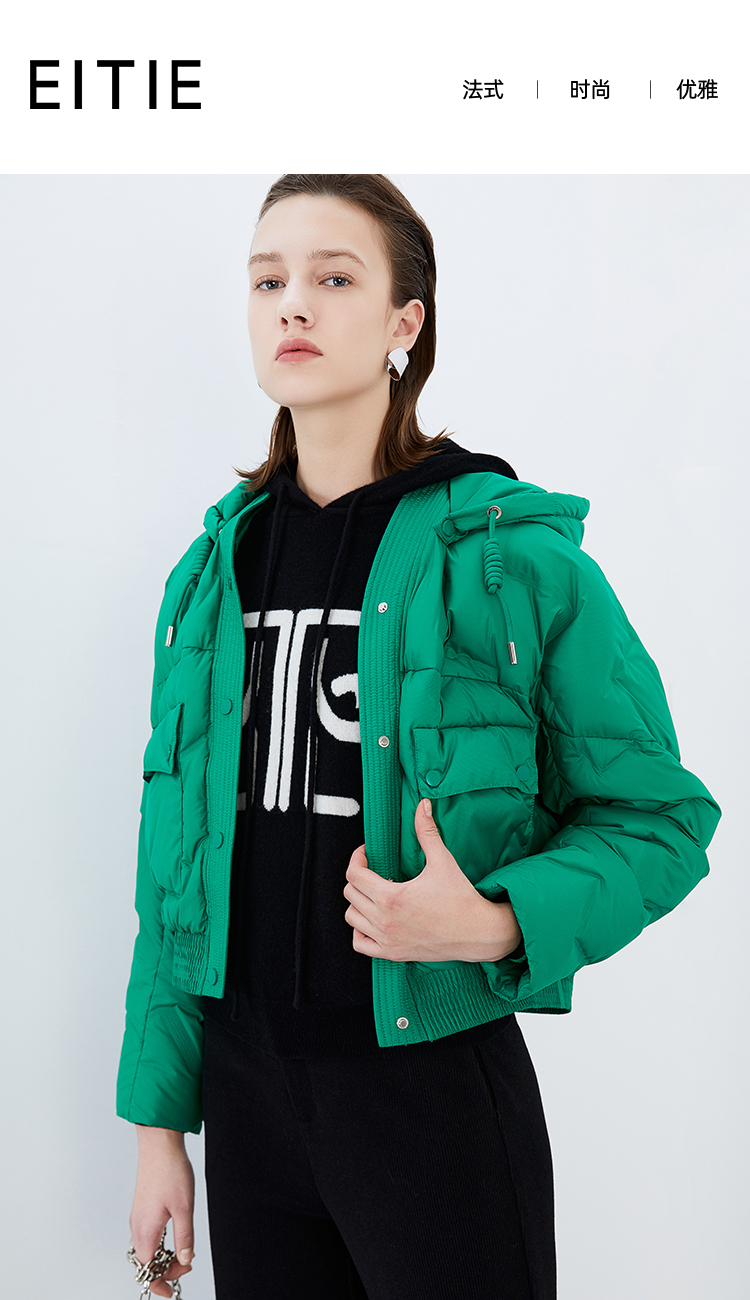 EITIE爱特爱冬季新款时尚连帽短款羽绒服外套7611314