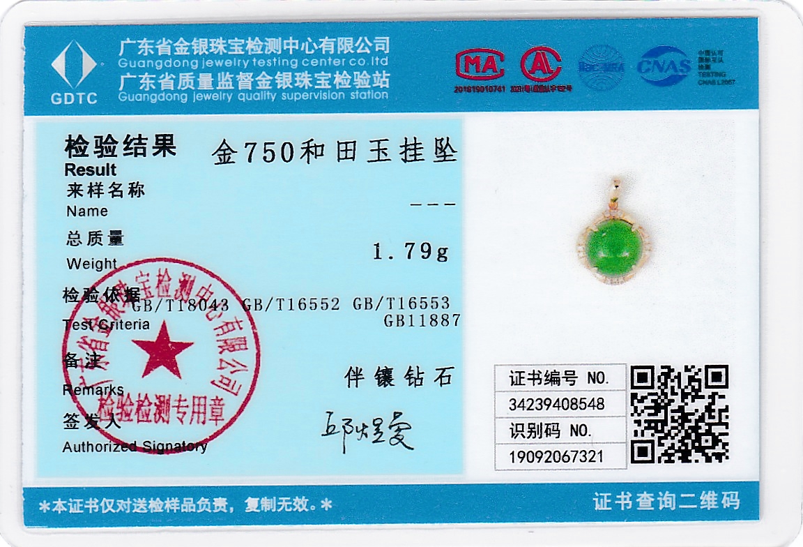 18K玫瑰金和田玉(碧玉)吊坠